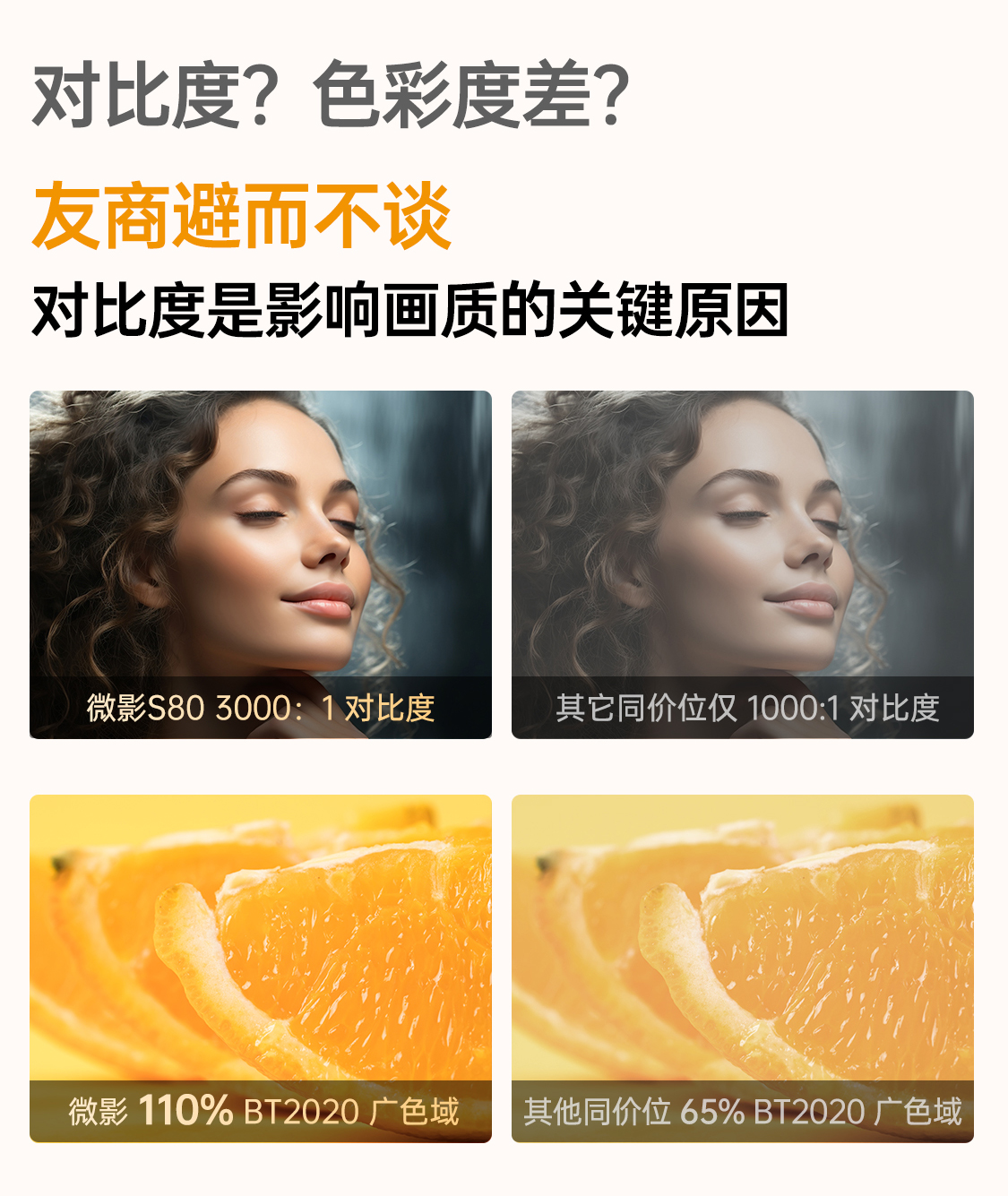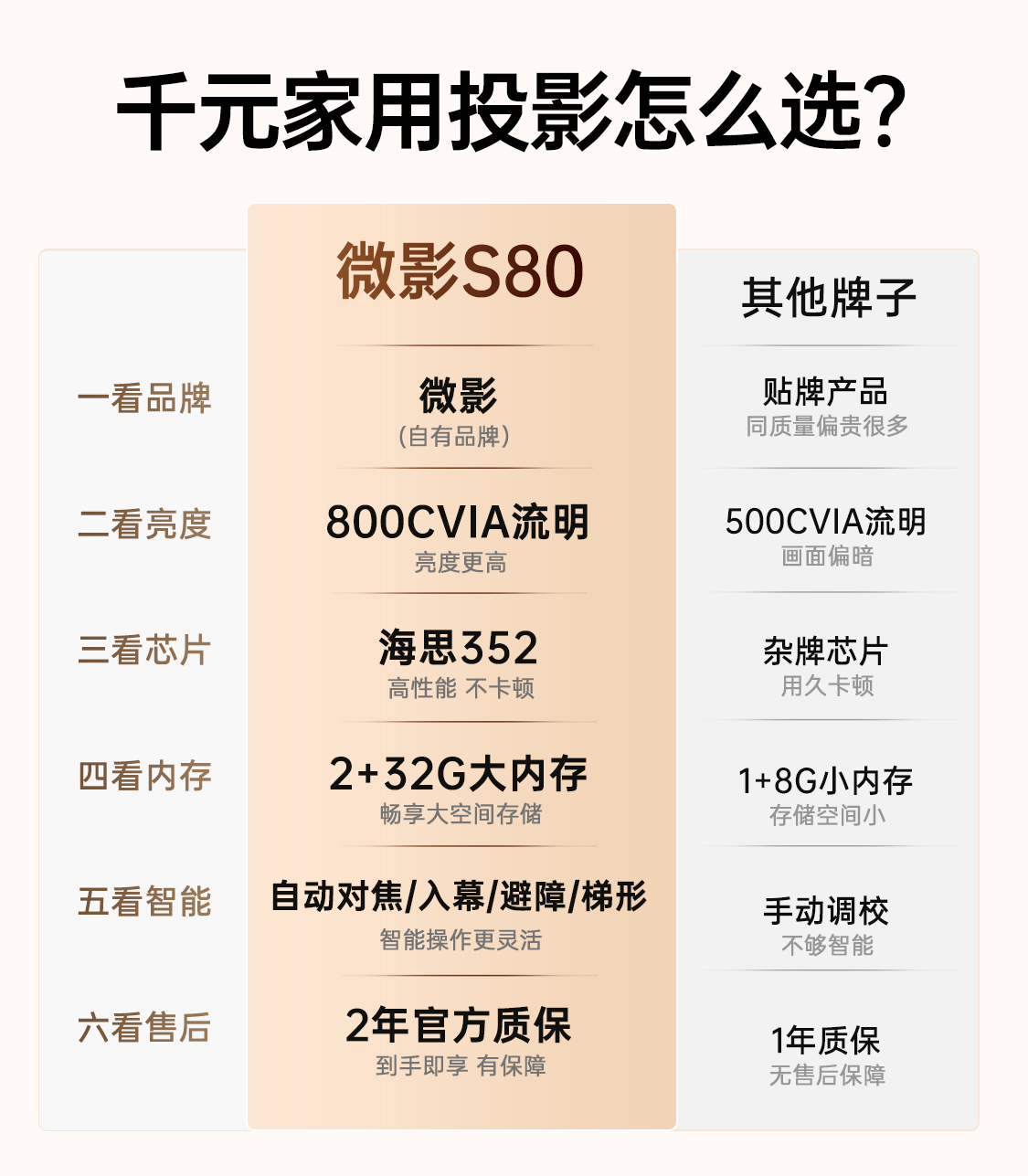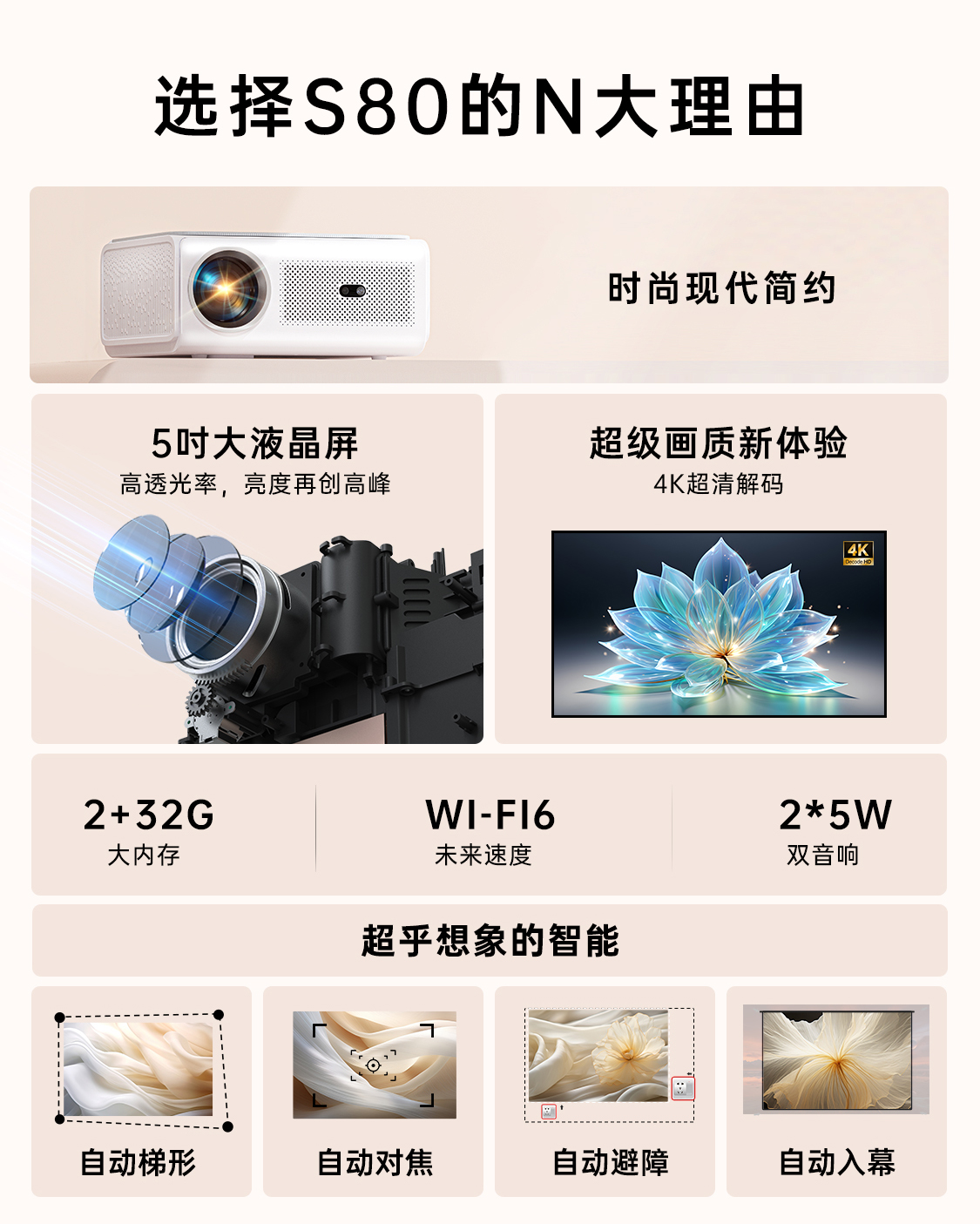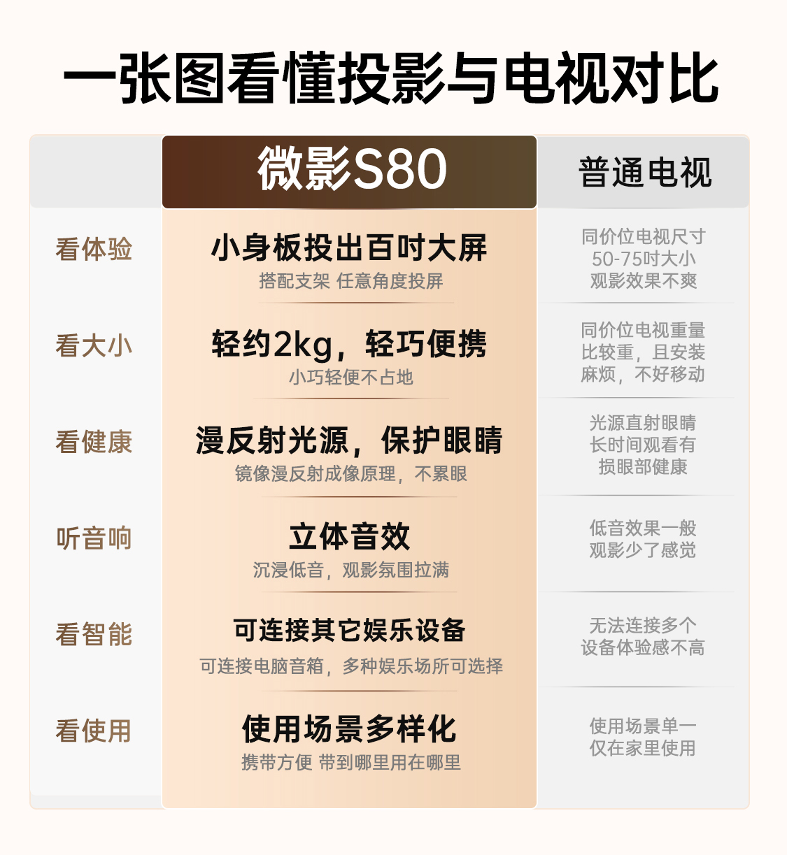 微影S80投影仪家用全高清 白天办公会议手机投屏一体机 (高效办公 配高清线 自动入幕)单位:台 白色