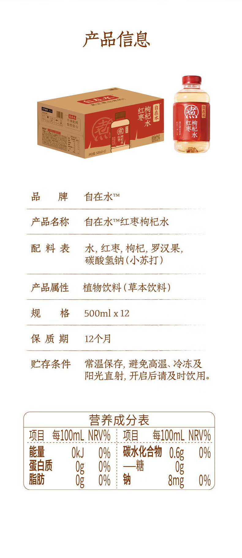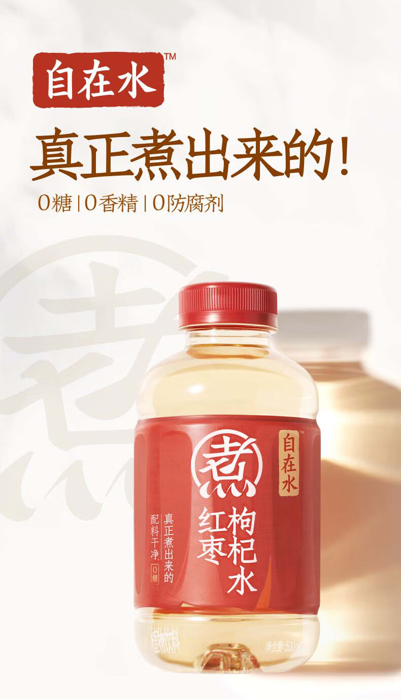 元气森林自在水红枣枸杞水无糖茶饮料 500mL*12瓶装整 红色 500mL*12瓶