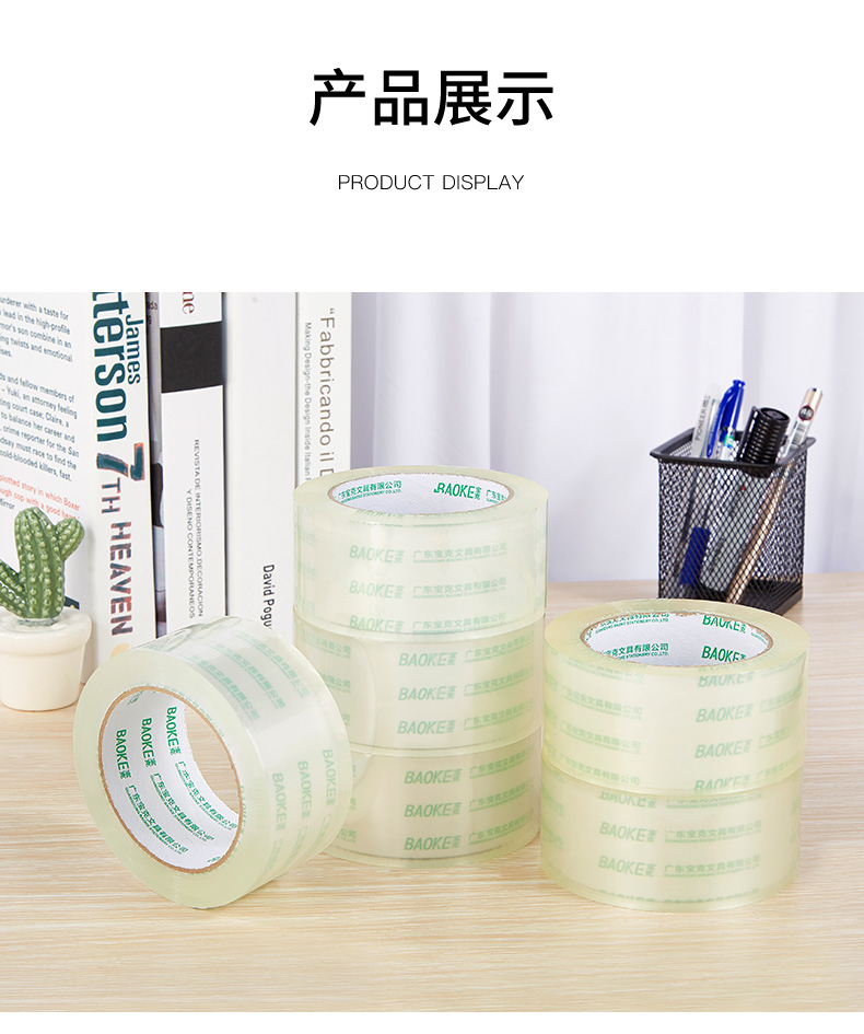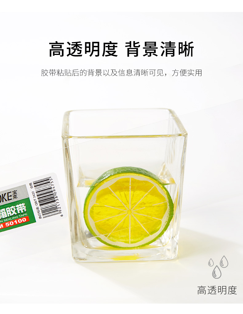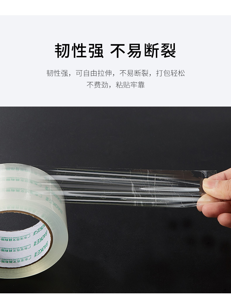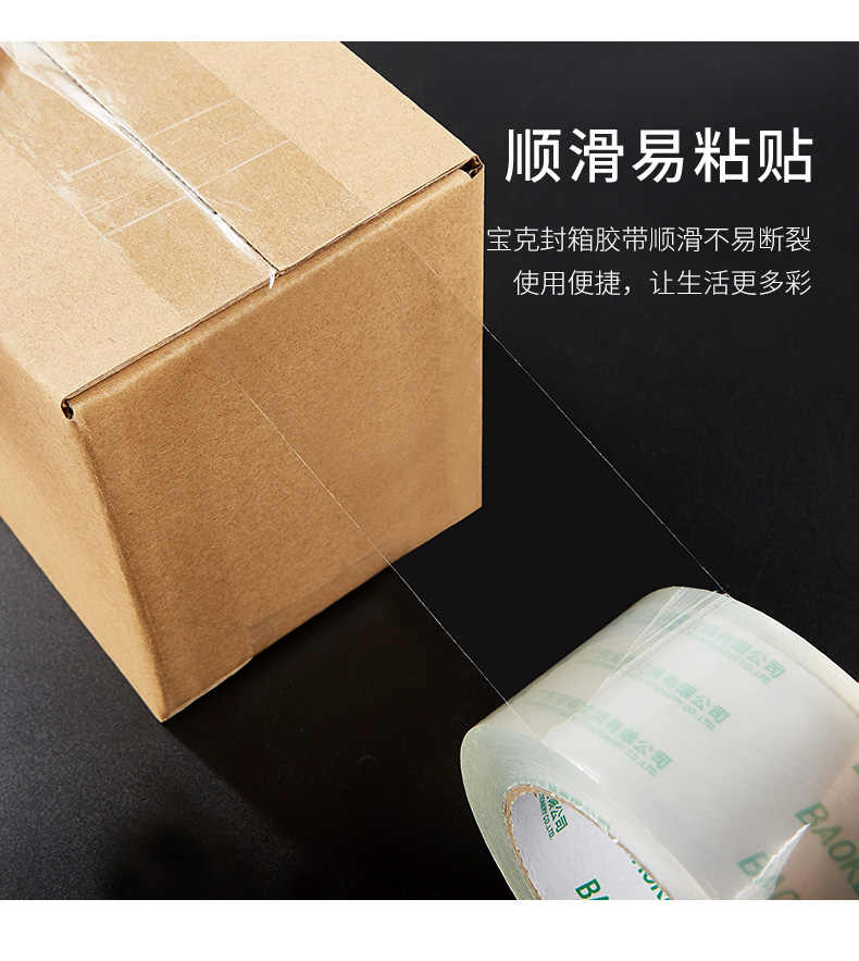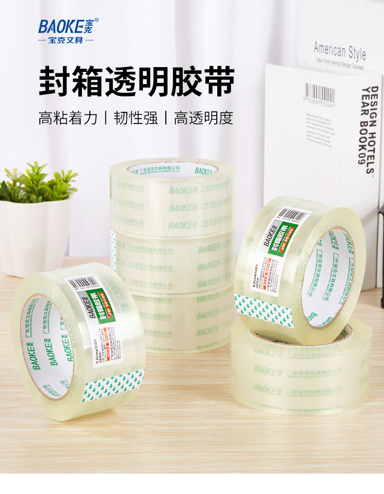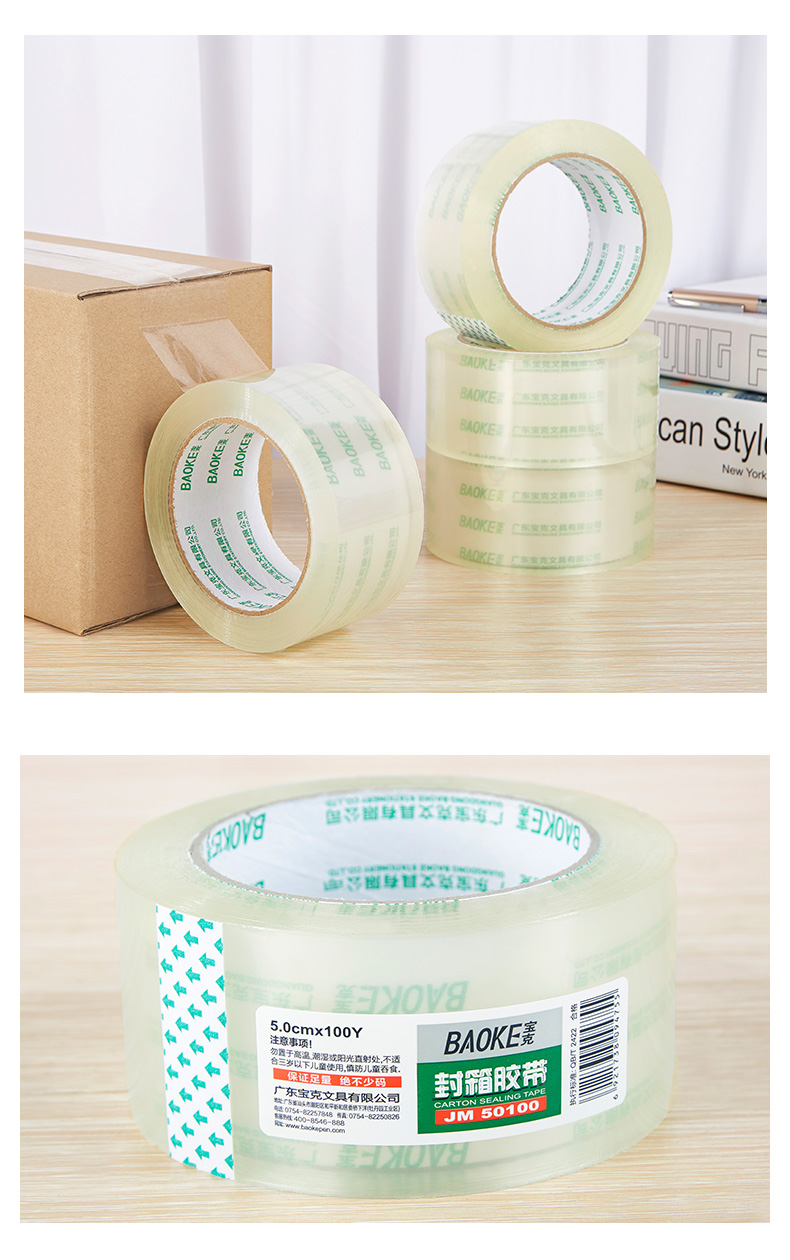 宝克(BAOKE)JM50100 封箱透明胶带 高粘易撕快递打包胶带 5.0cm*100Y 6卷/筒 透明
