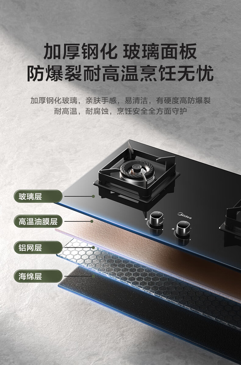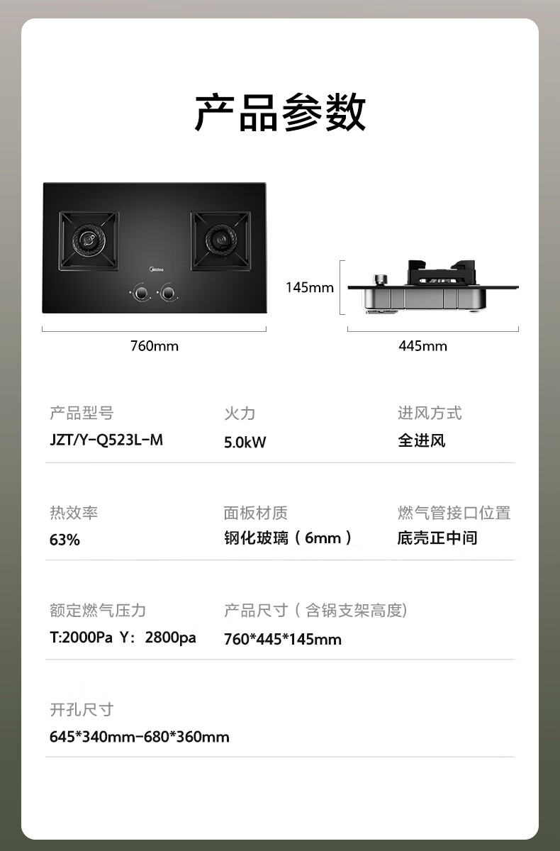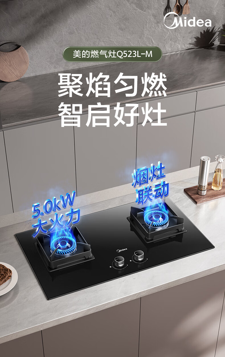 美的(Midea)燃气灶天然气家用灶具5.0kW猛火大火灶台嵌两用 JZT-Q523L-M 台 黑色