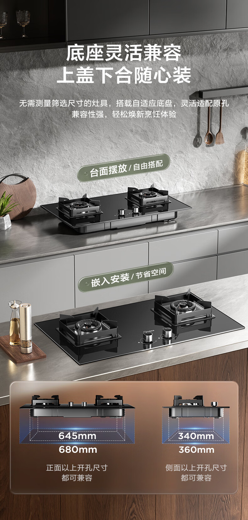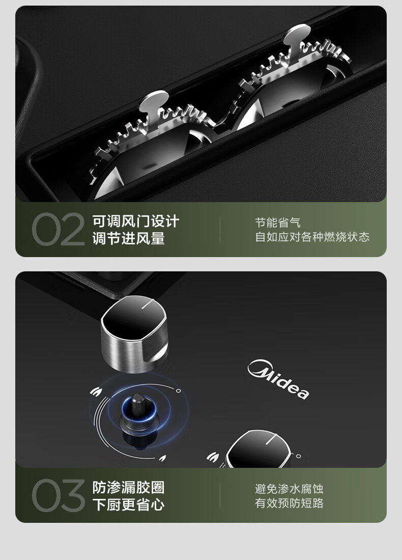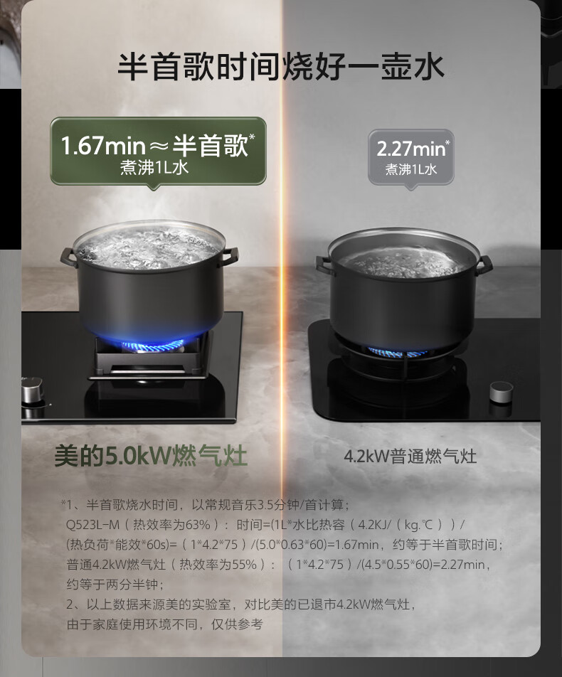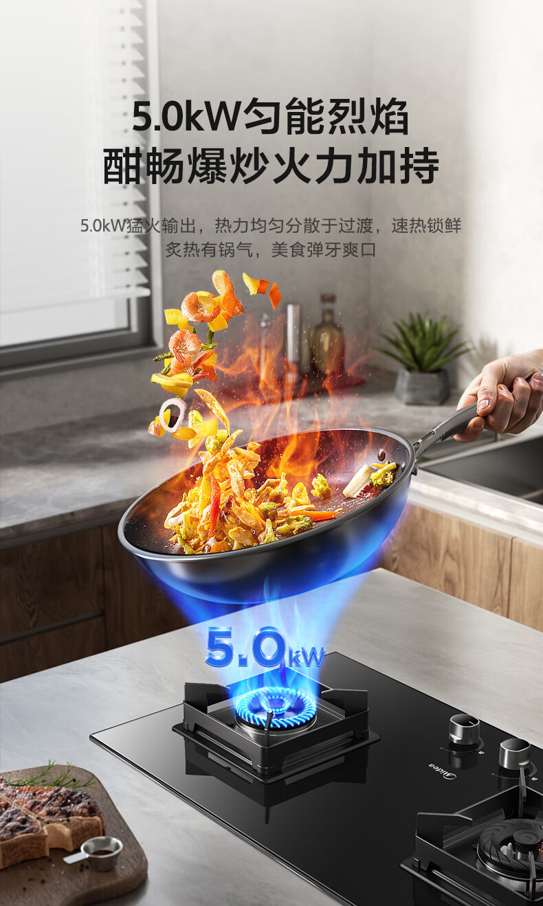 美的(Midea)燃气灶天然气家用灶具5.0kW猛火大火灶台嵌两用 JZT-Q523L-M 台 黑色