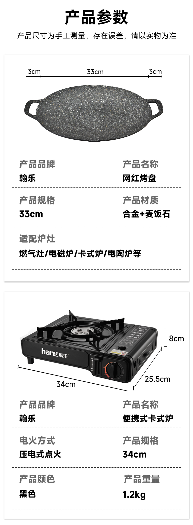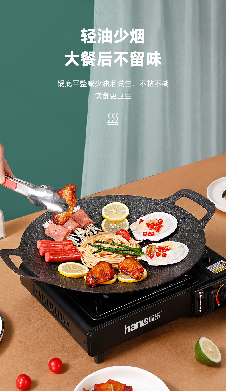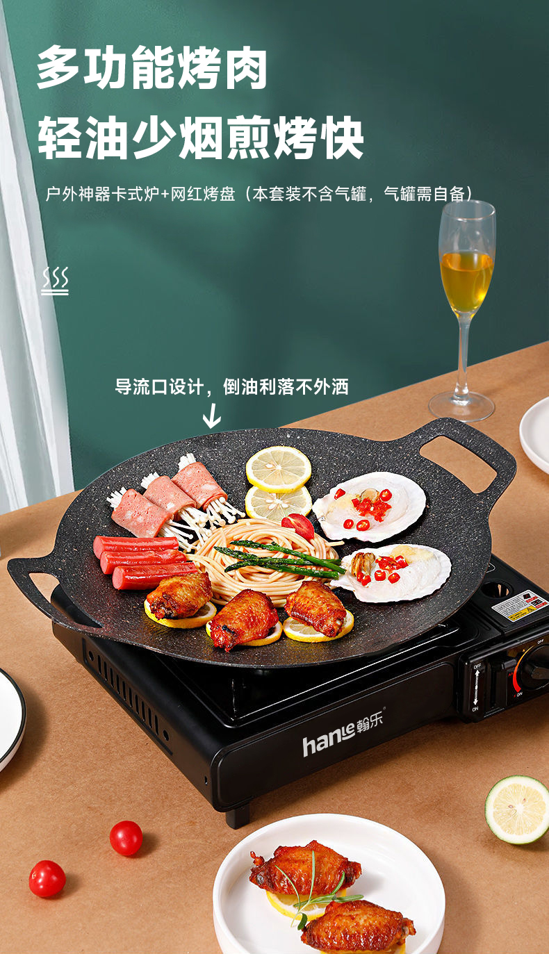 翰乐HL-BBQ88多功能露营神器卡式炉+网红烤盘34CM(套) 黑色
