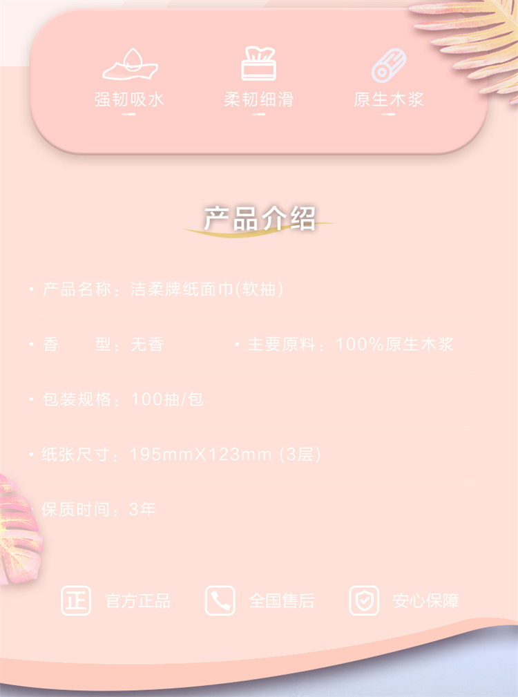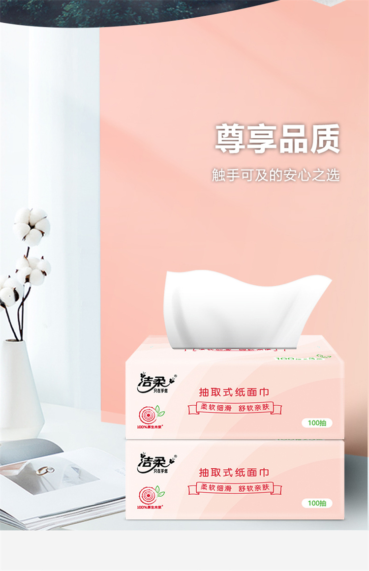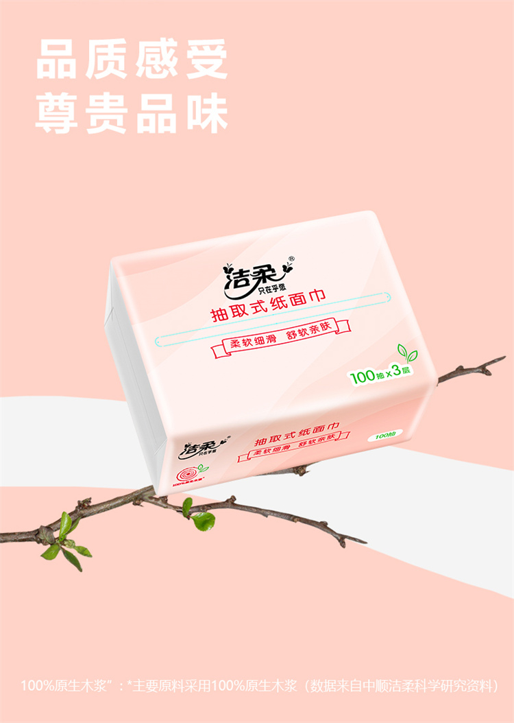 洁柔TR075501A纸面巾(洁净软抽)195mm*123mm*100抽*3层 24包/箱 无香型 白色