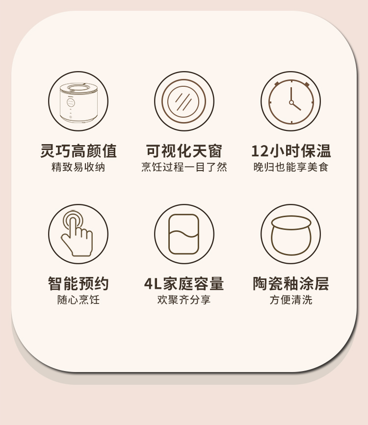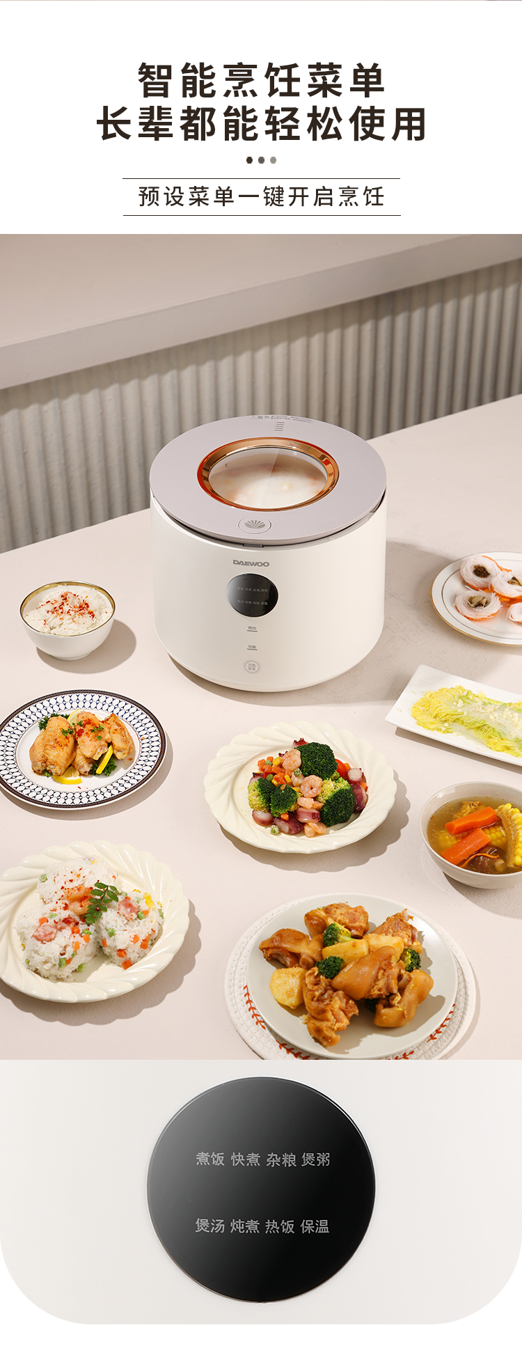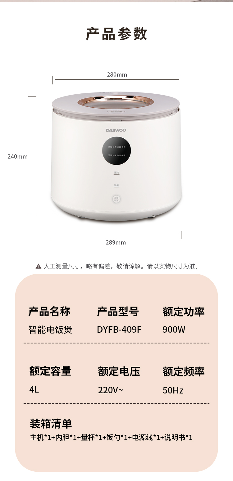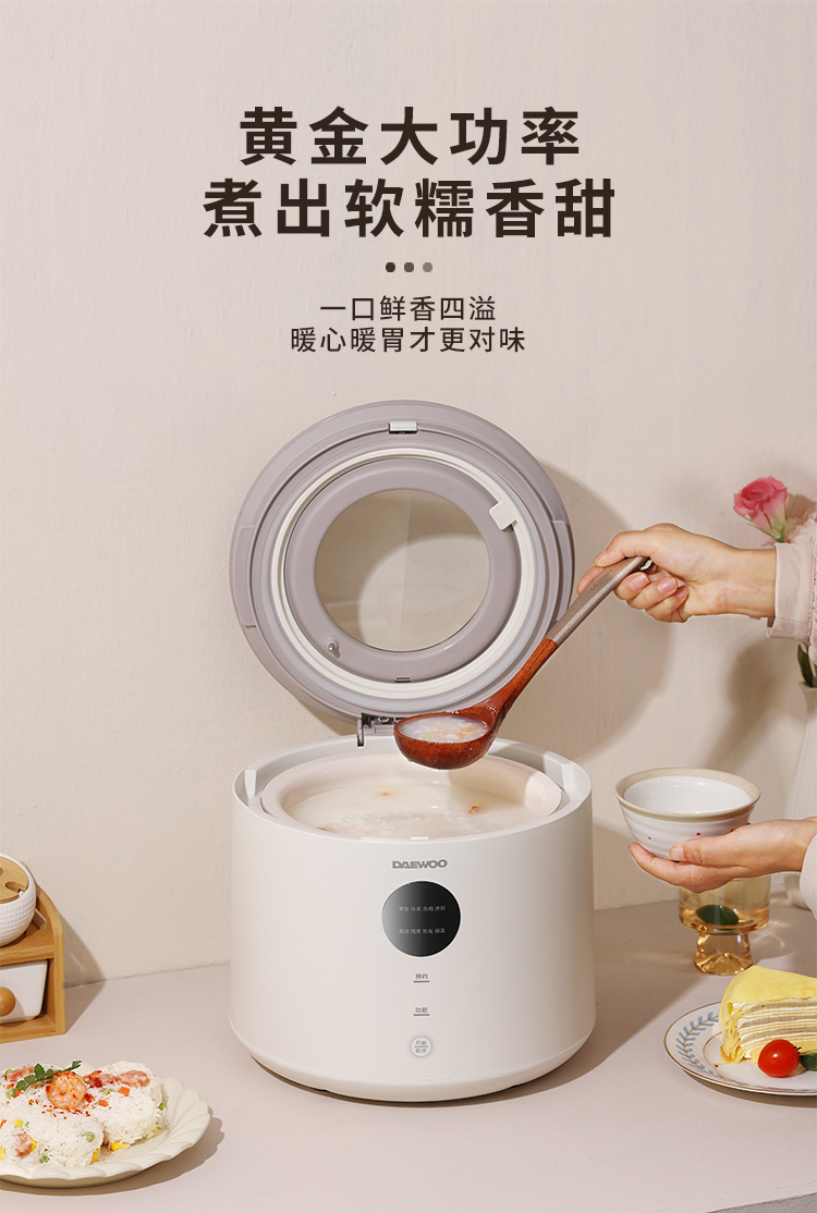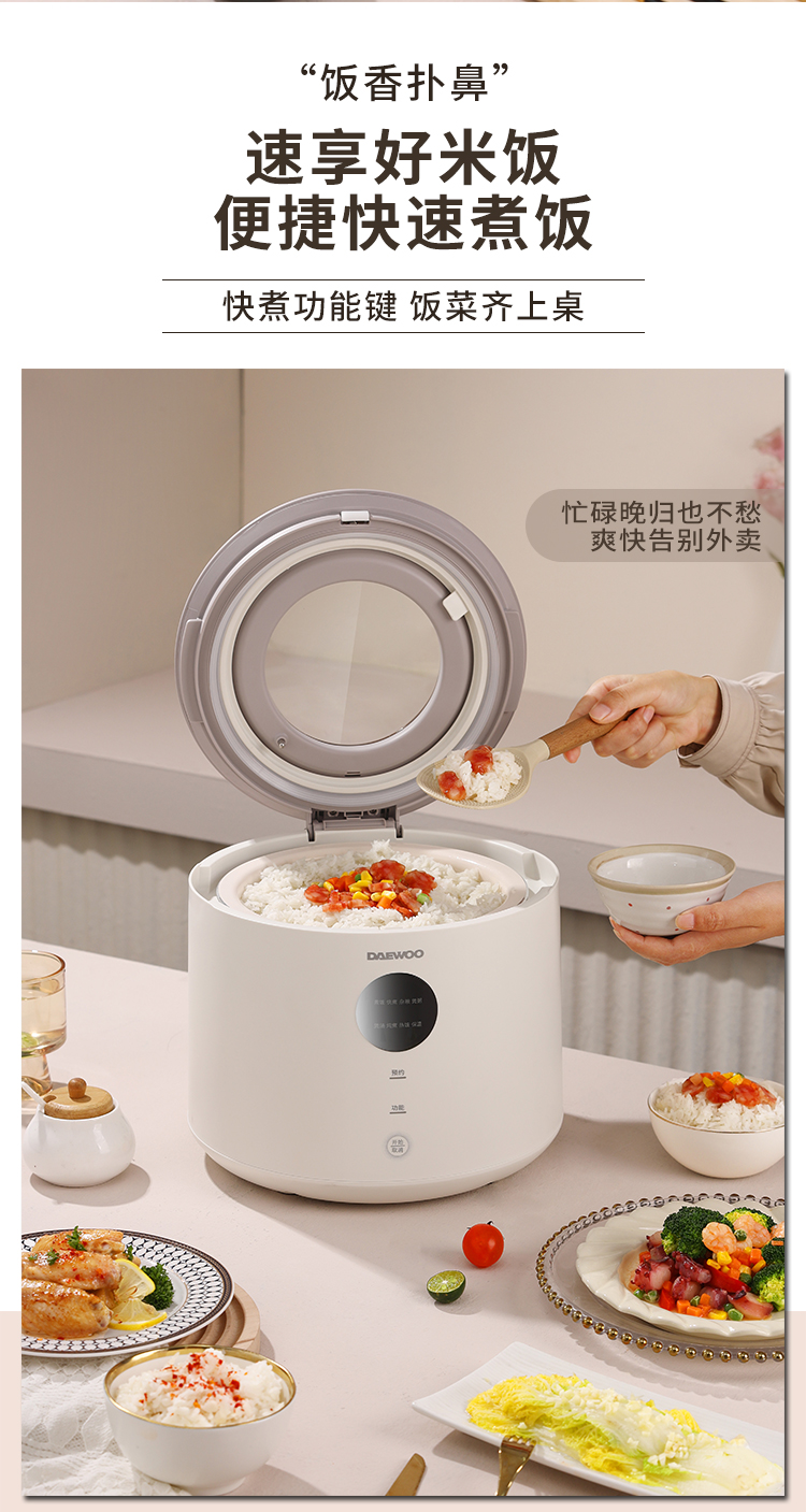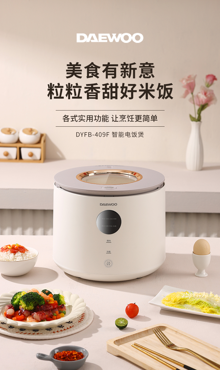 大宇(DAEWOO)家用4L智能预约多功能可视天窗电饭锅DYFB-409F(单位:台) 流苏白