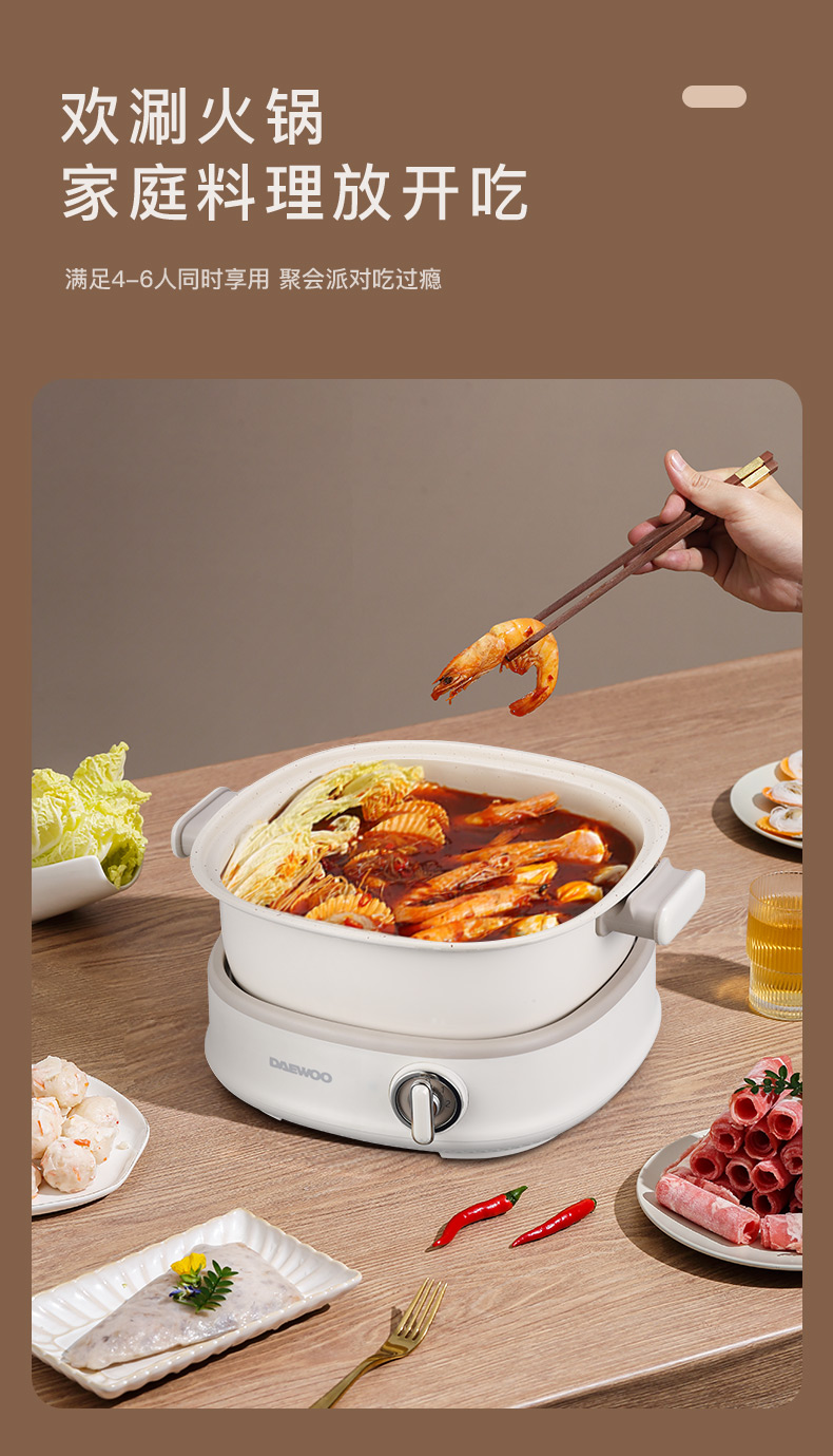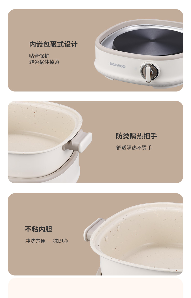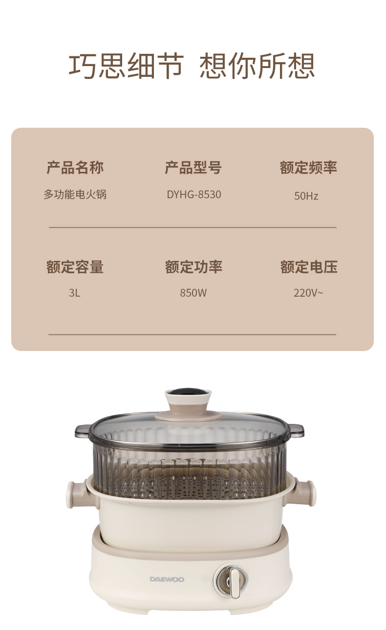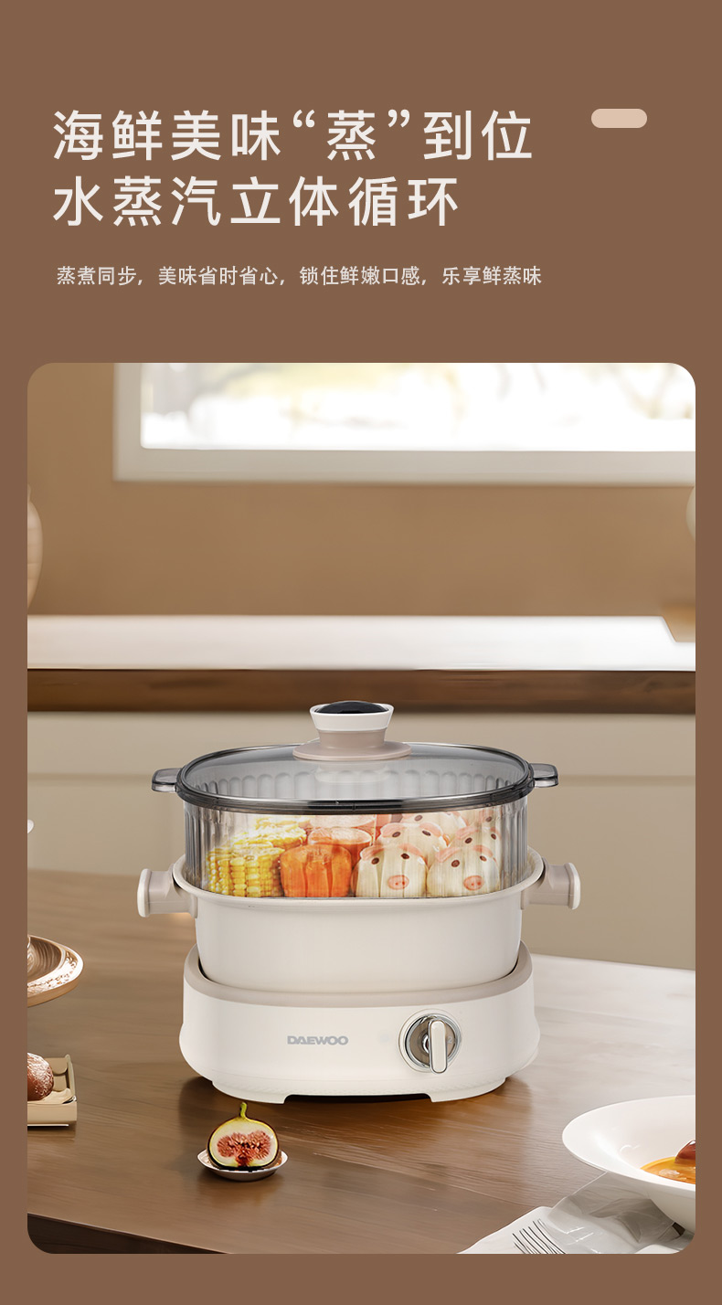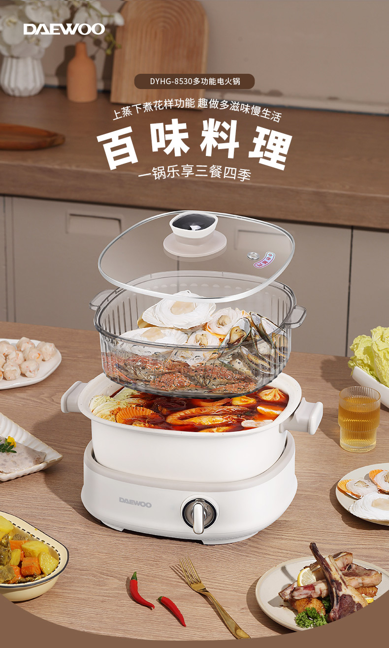 大宇(DAEWOO) 多功能电火锅分体式上蒸下煮电煮锅DYHG-8530(单位:台) 伯爵白