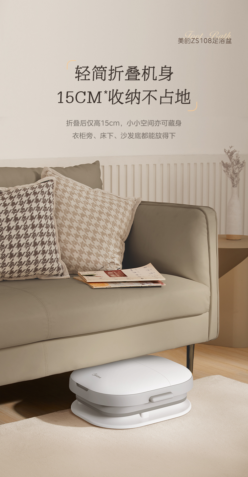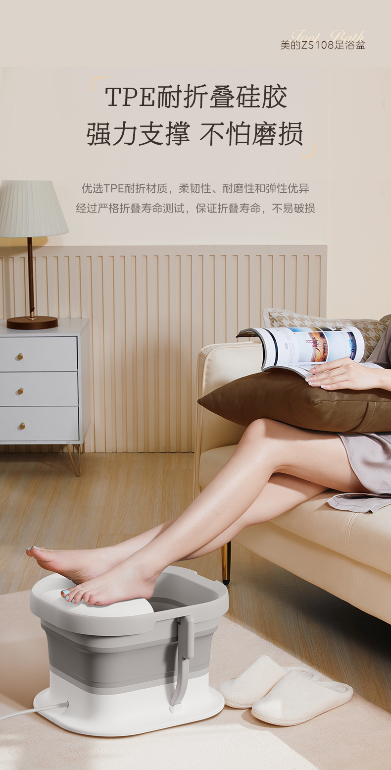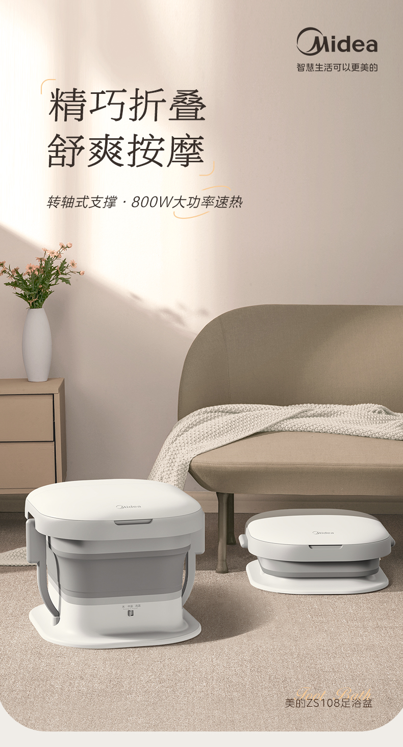 美的(Midea)泡脚桶足浴盆 800W全自动按摩洗脚盆 ZS108(单位:台) 白色