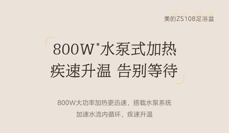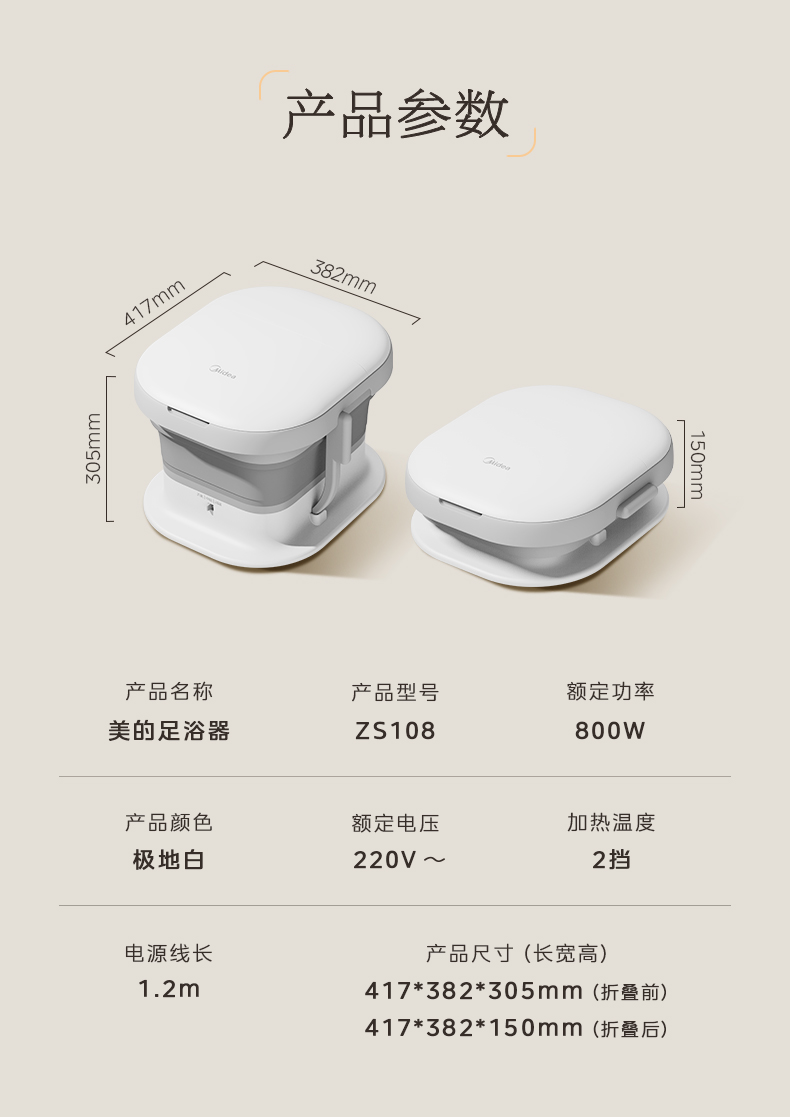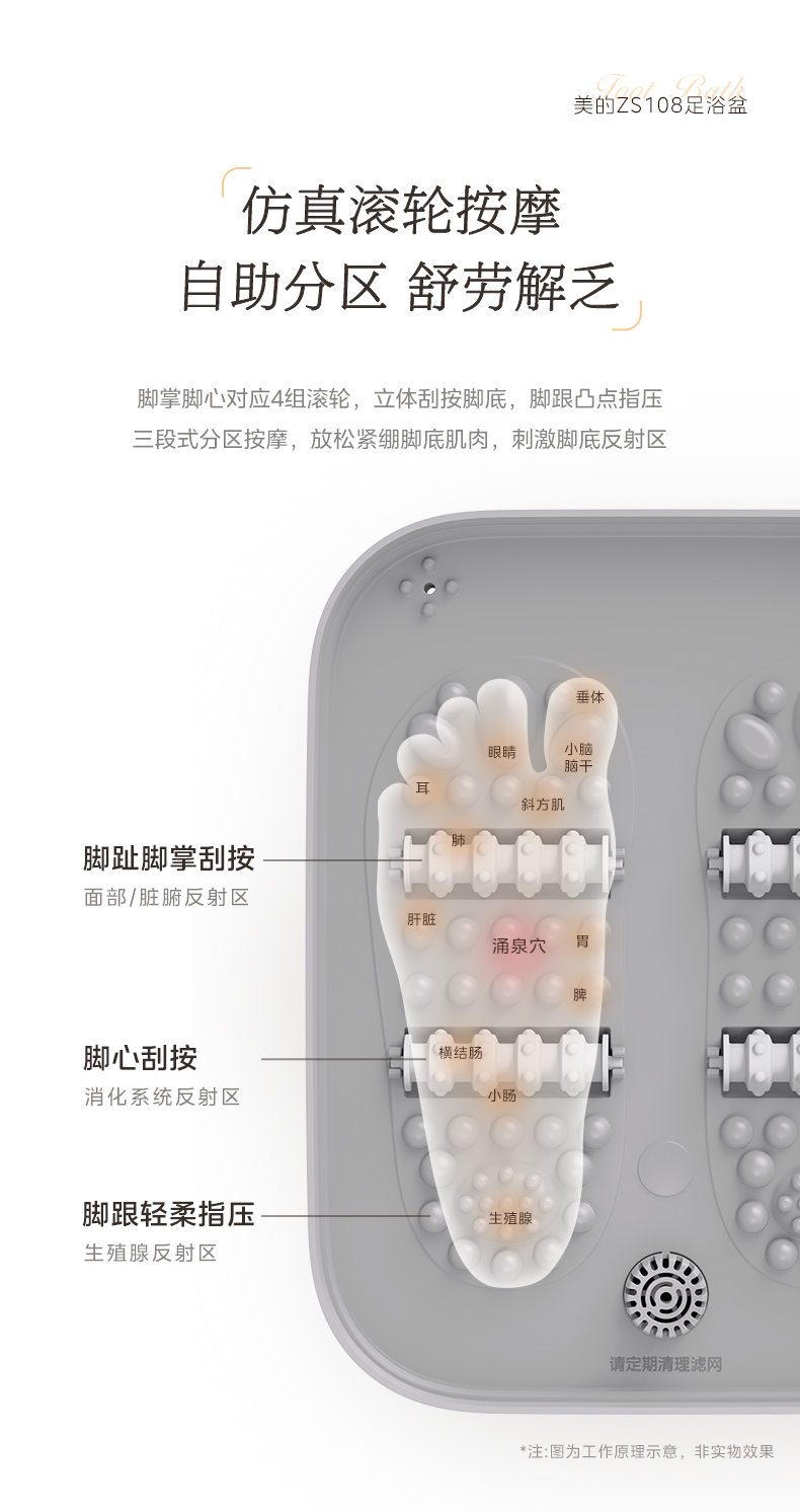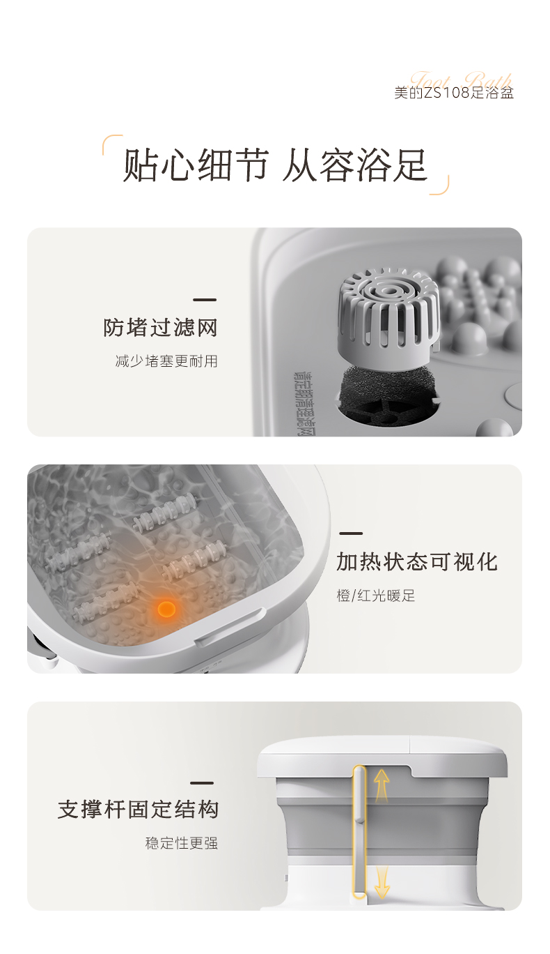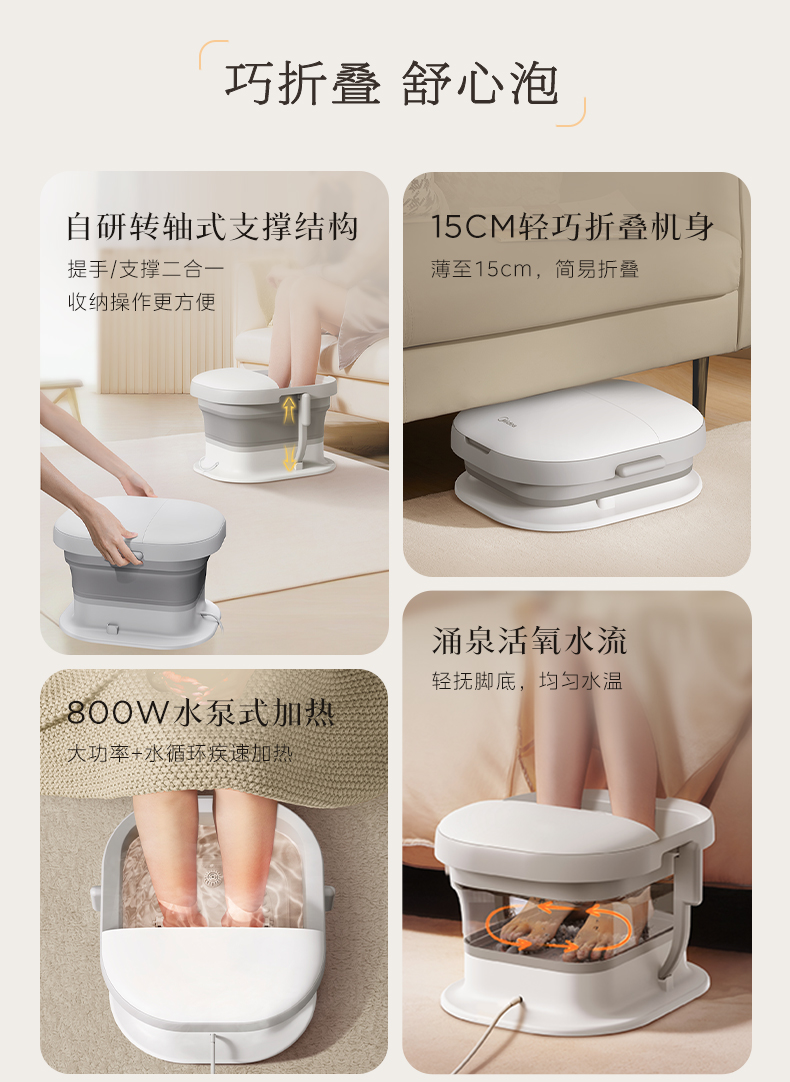 美的(Midea)泡脚桶足浴盆 800W全自动按摩洗脚盆 ZS108(单位:台) 白色