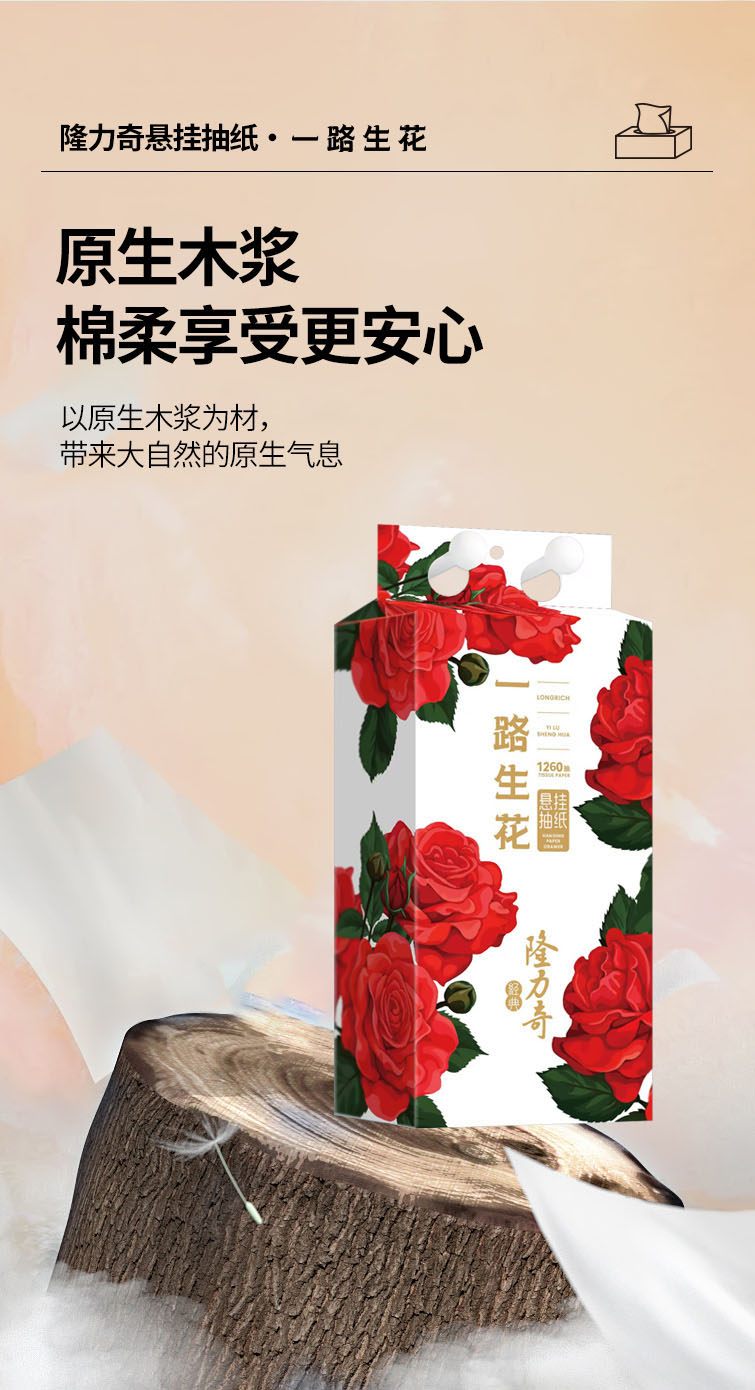 隆力奇 挂抽纸巾 LLQ-001 4层 315抽 2提装(单位:提) 玫瑰红色