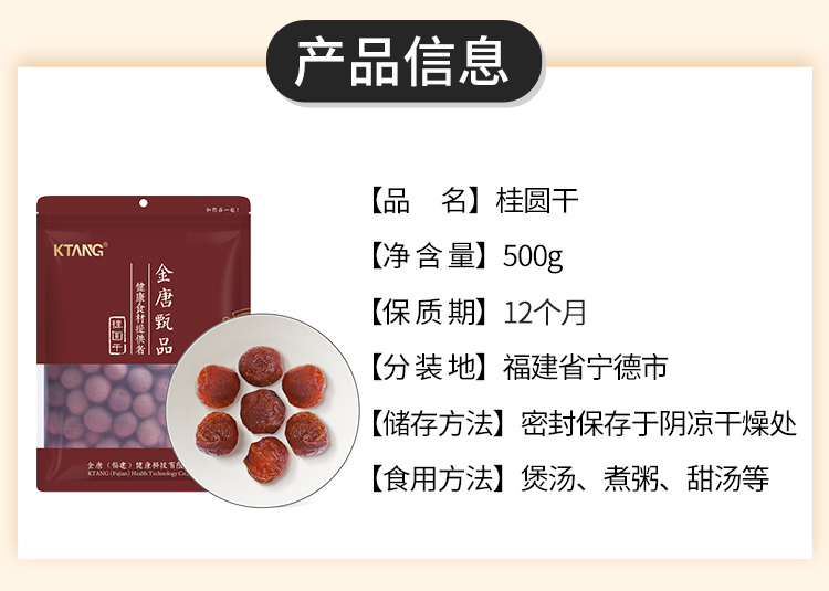 金唐(JinTang) 甄品6A桂圆干500g*2袋(单位:袋) 红棕色