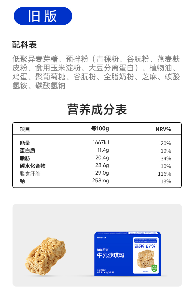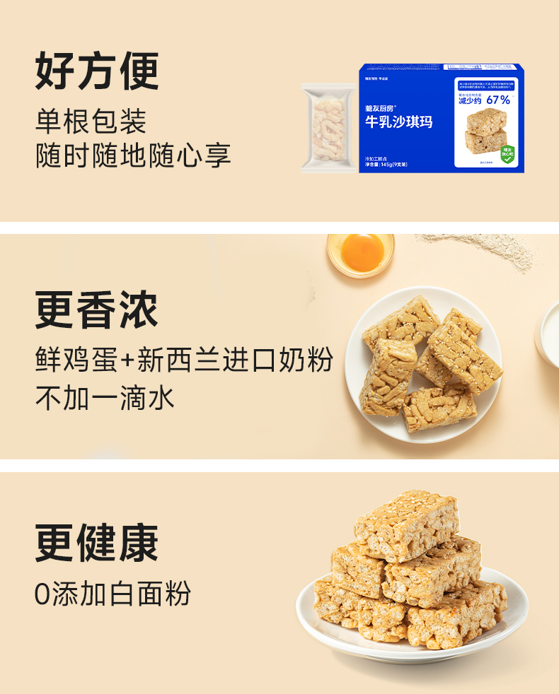 糖友厨房牛乳沙琪玛(单位:盒) 宝石蓝 145g*3盒