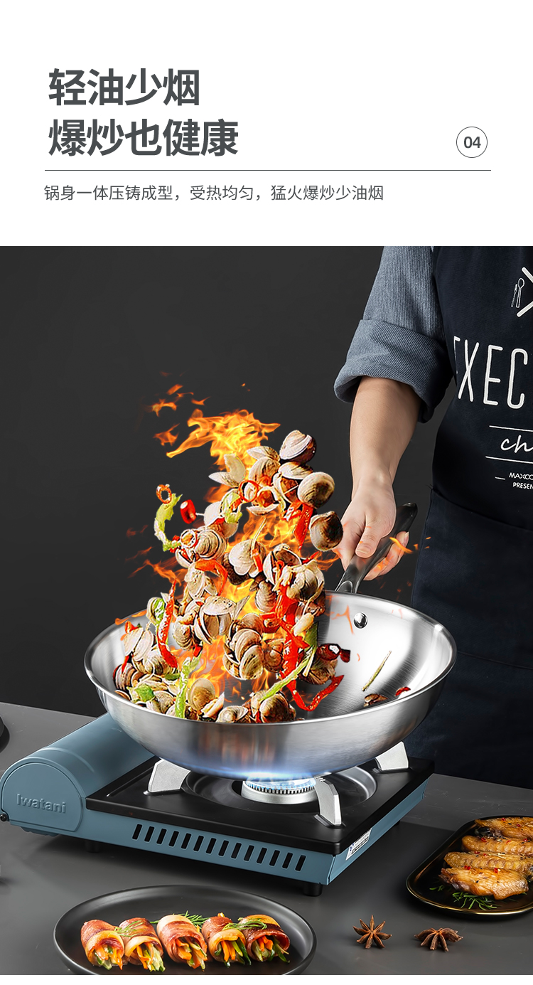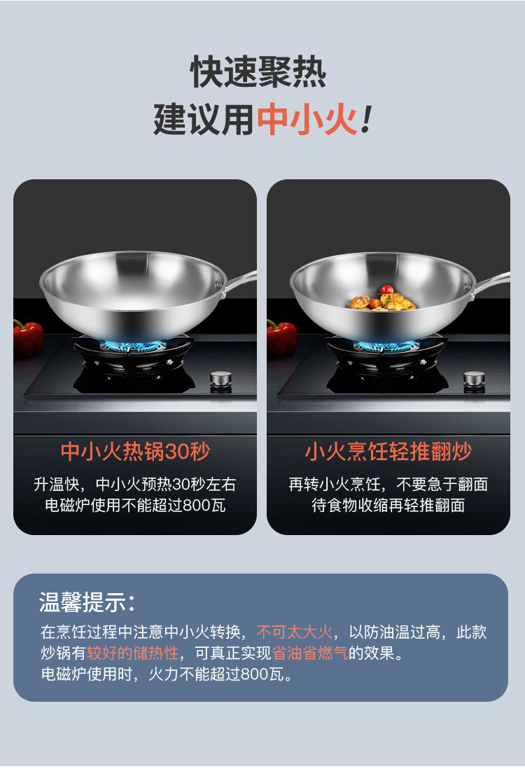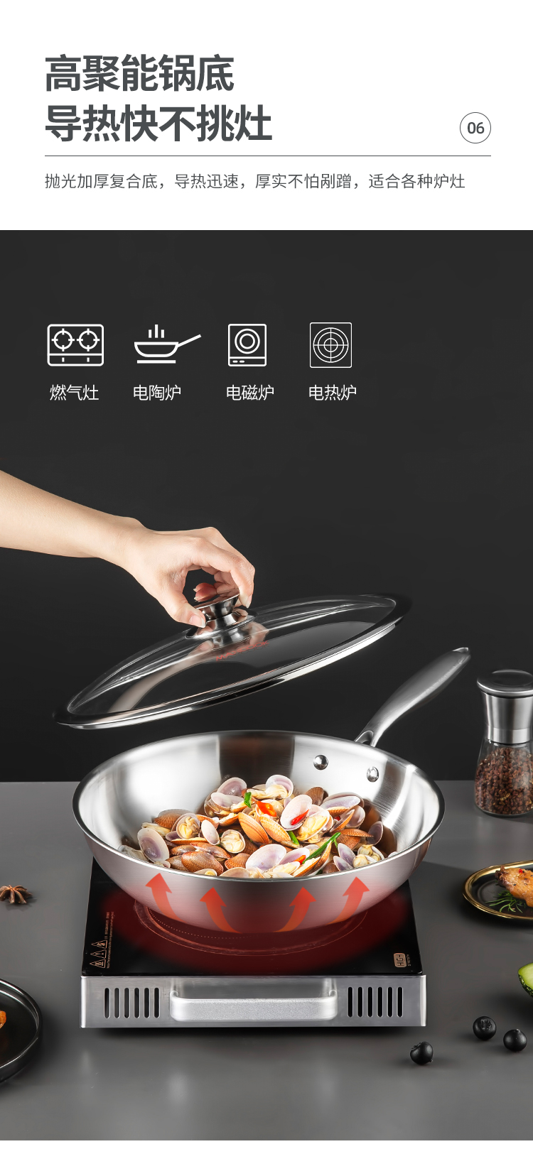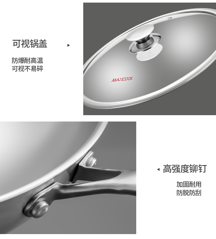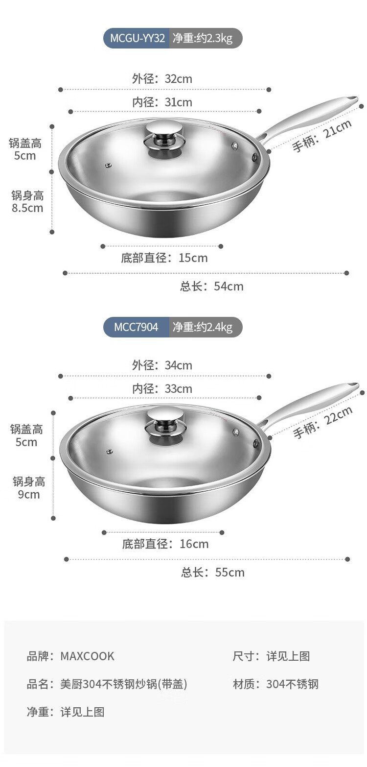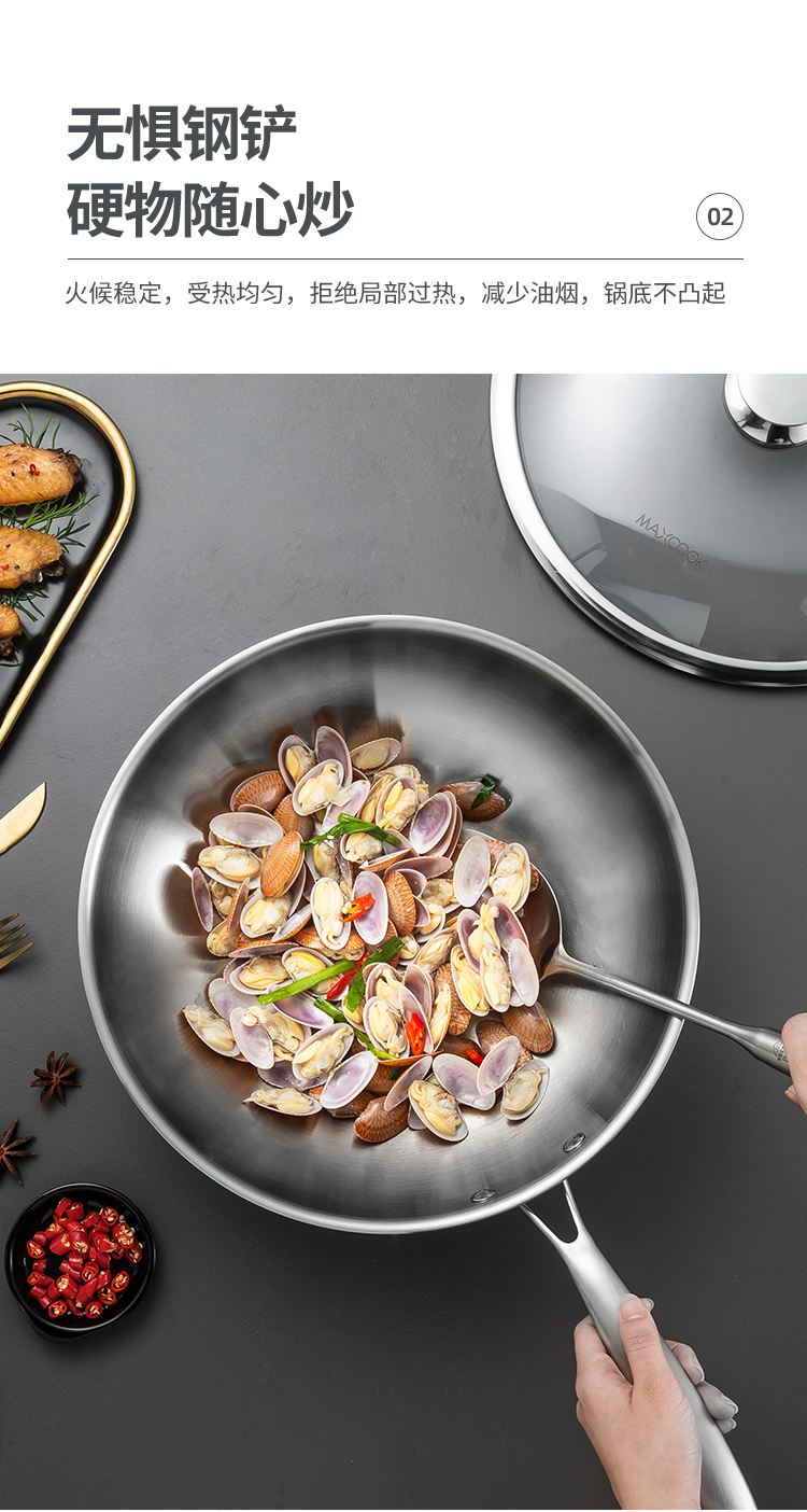 美厨(maxcook)304不锈钢炒锅 带盖锅具32cm 电磁炉燃气炉煤气灶通用MCGU-YY32 黑色