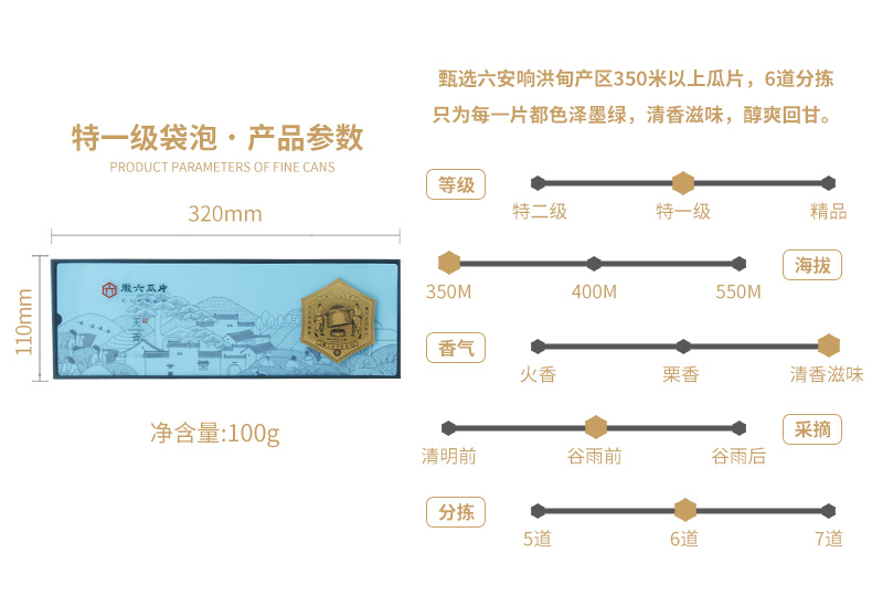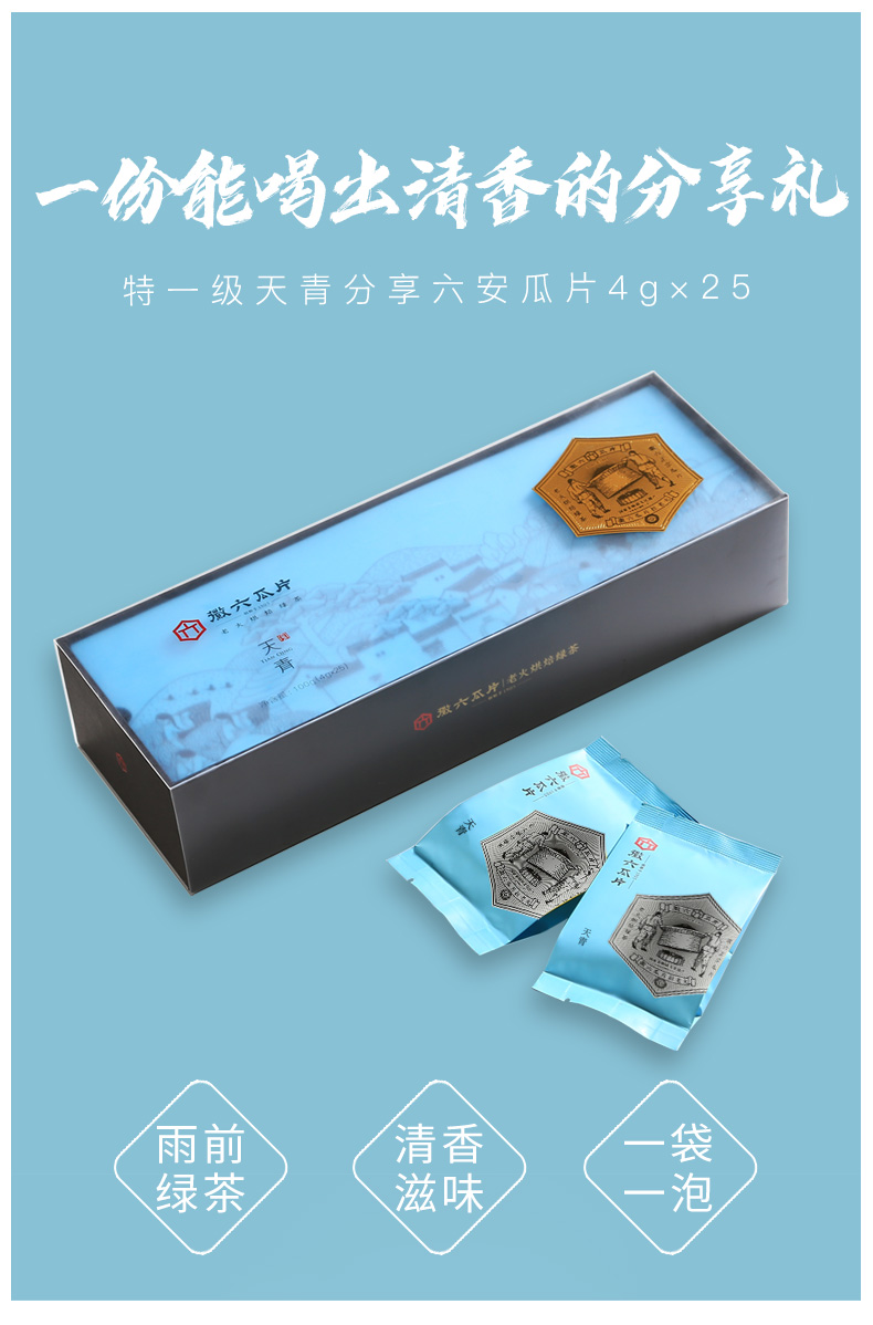 徽六 六安瓜片 100g 特一级天青分享装 天蓝色(单位:盒)