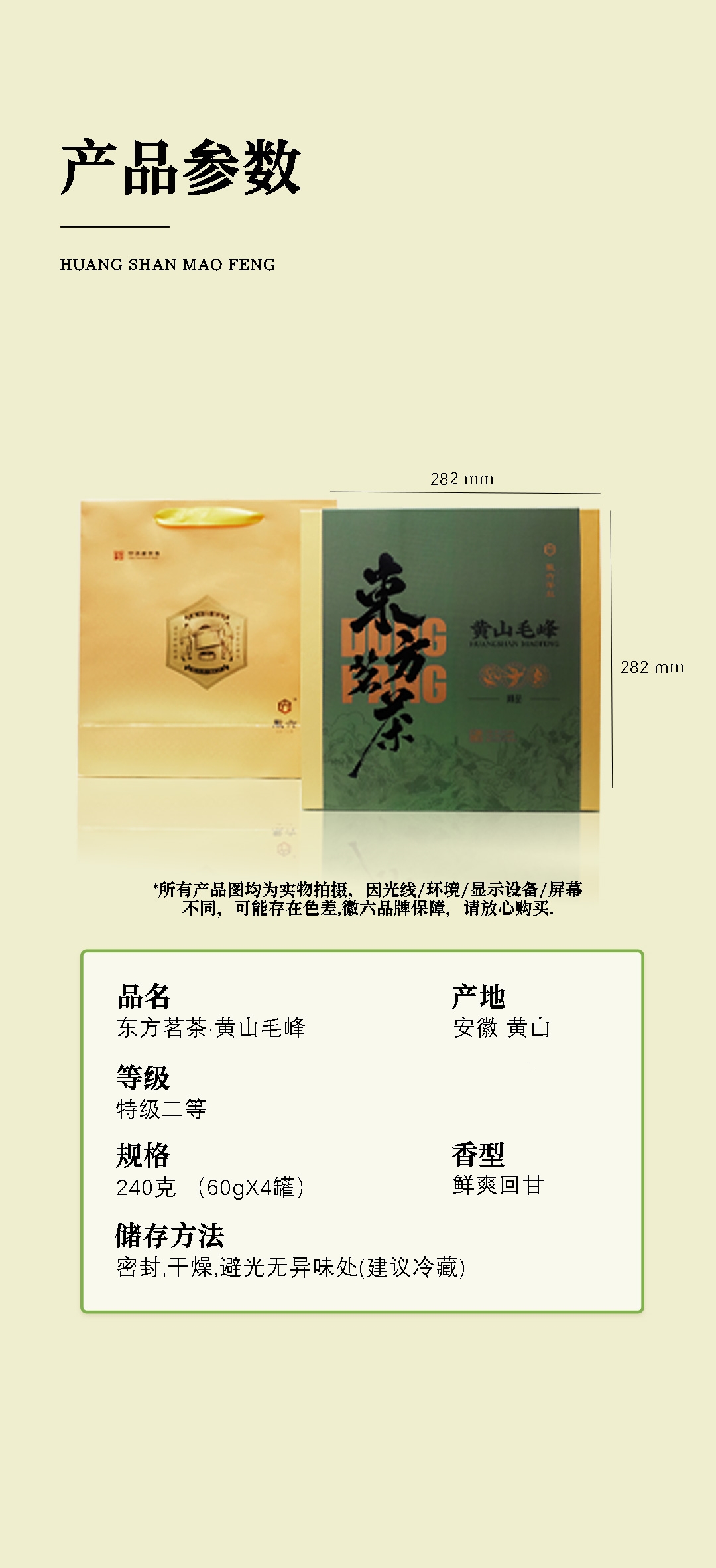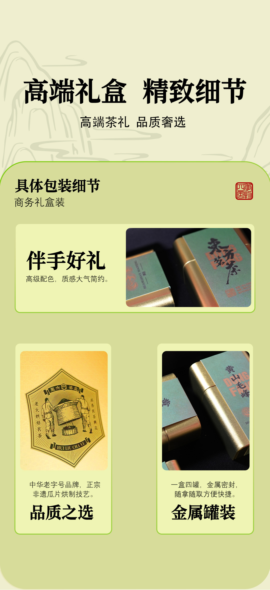 徽六 黄山毛峰 240g 特二级东方茗茶礼盒 绿色(单位:盒)