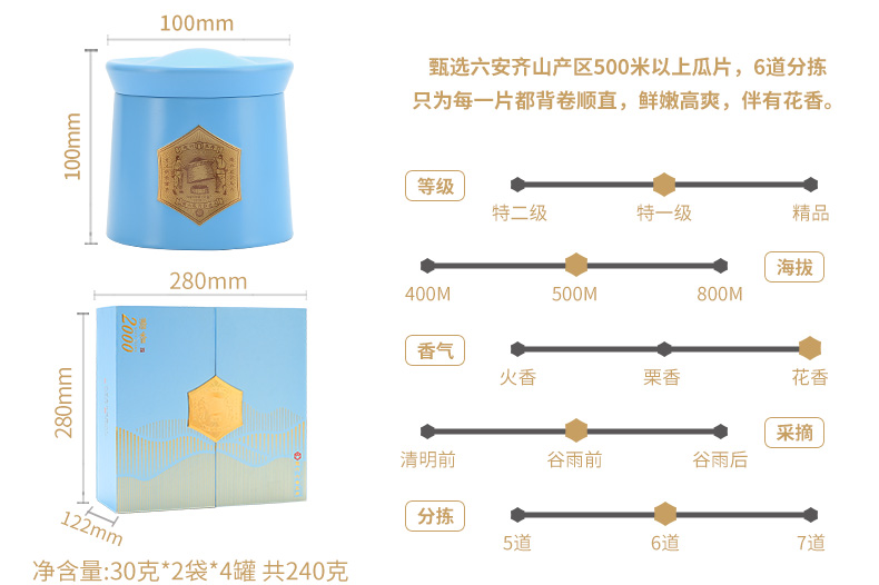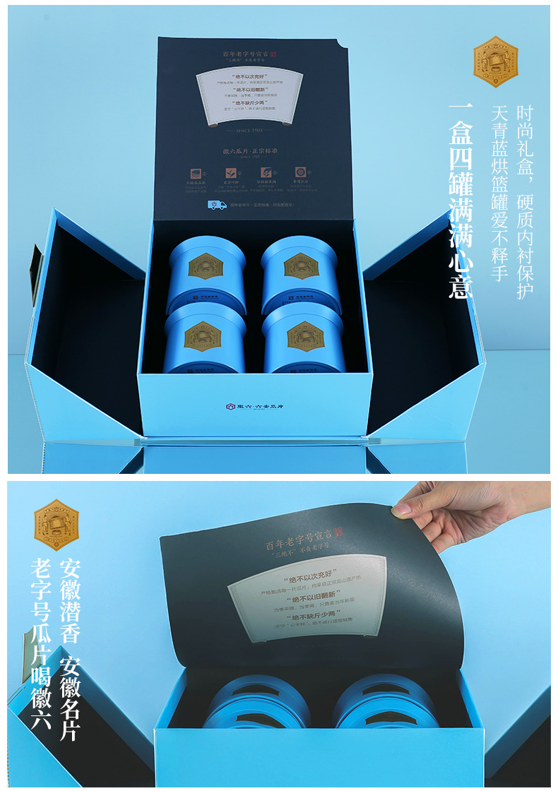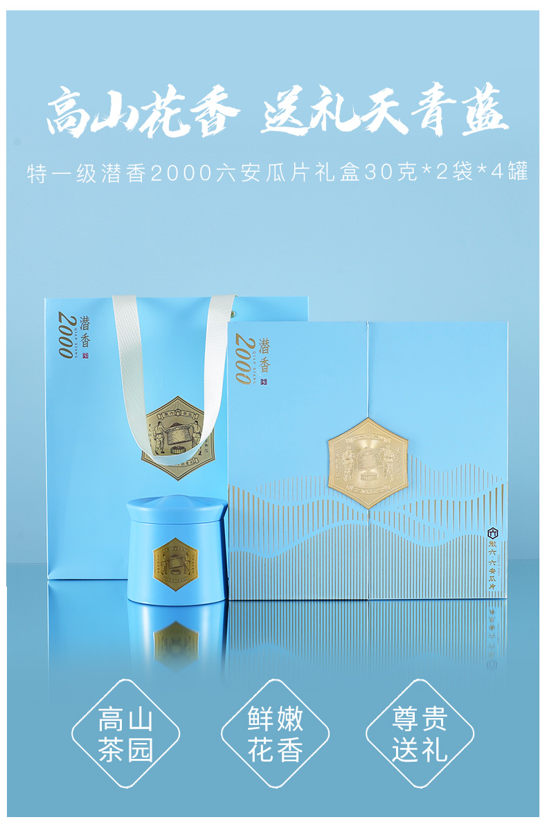 徽六 六安瓜片 240g 绿茶潜香2000礼盒 天蓝色(单位:盒)