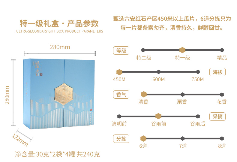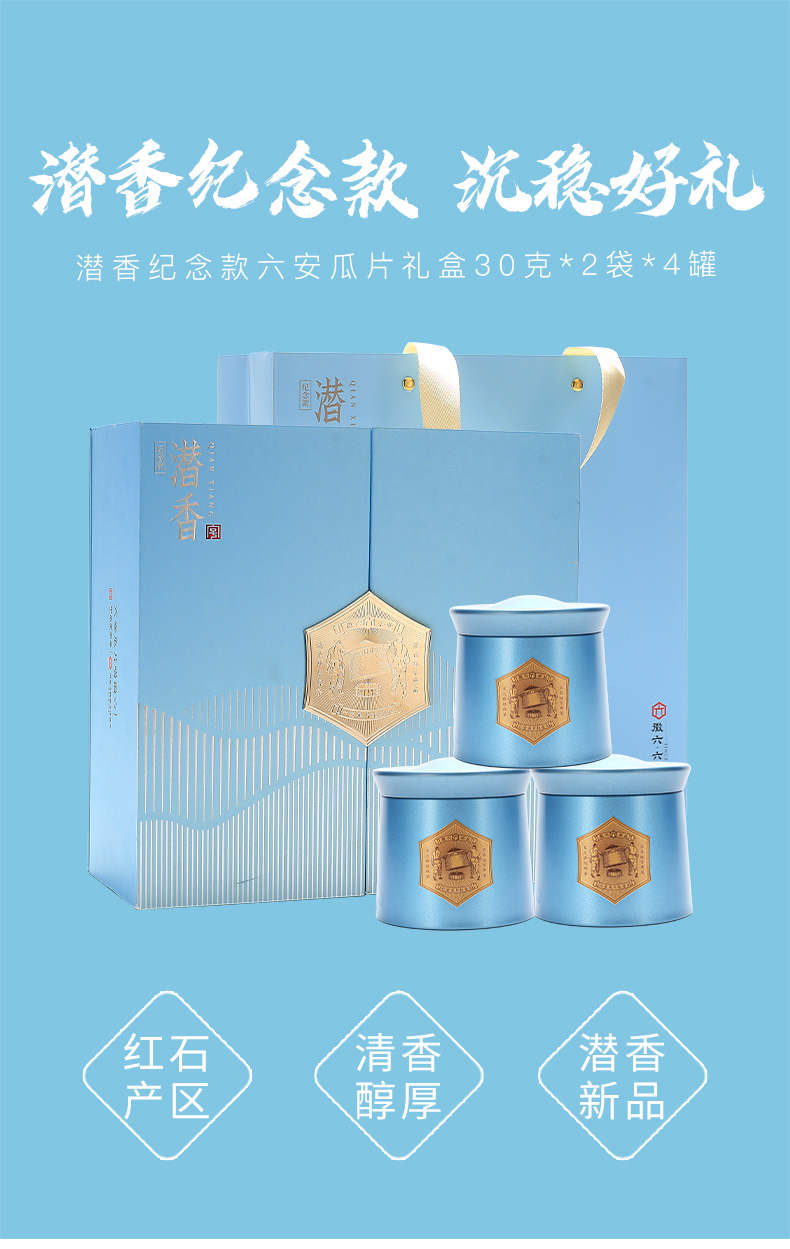 徽六 六安瓜片 240g 绿茶潜香纪念款礼盒 天蓝色(单位:盒)