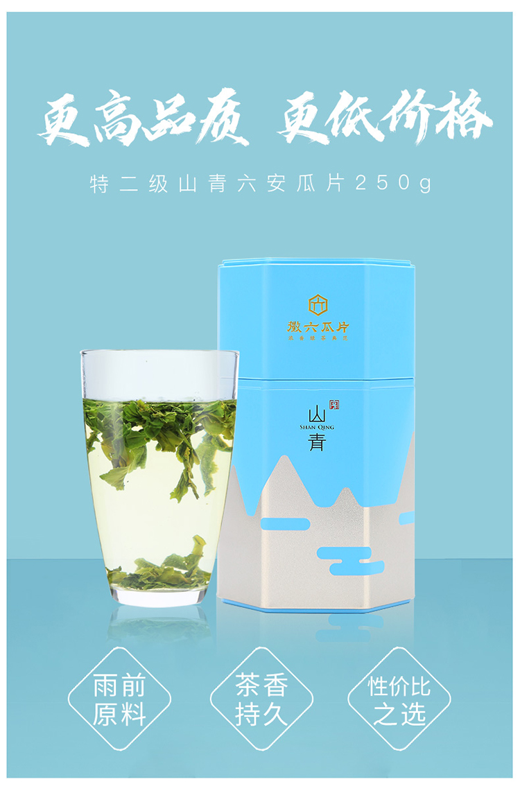 徽六 六安瓜片 250g 绿茶特二级山青 天蓝色(单位:罐)