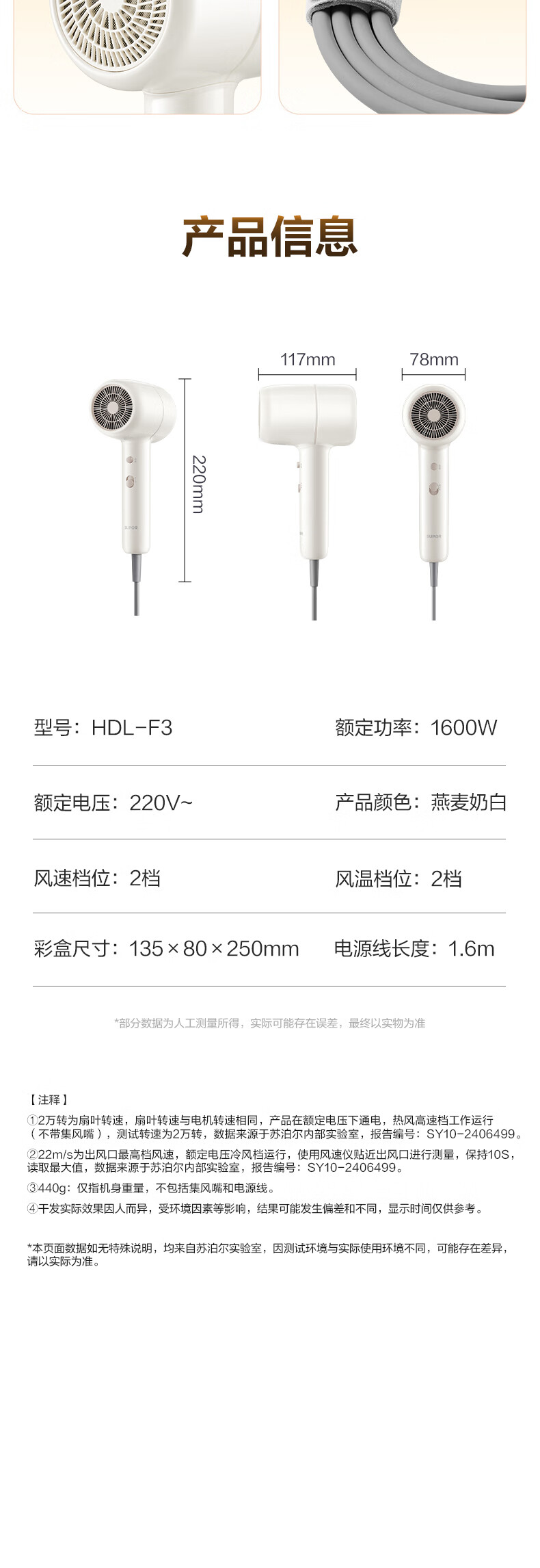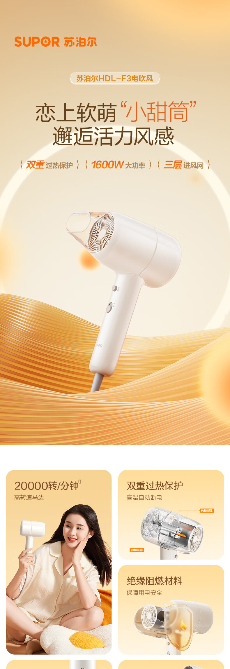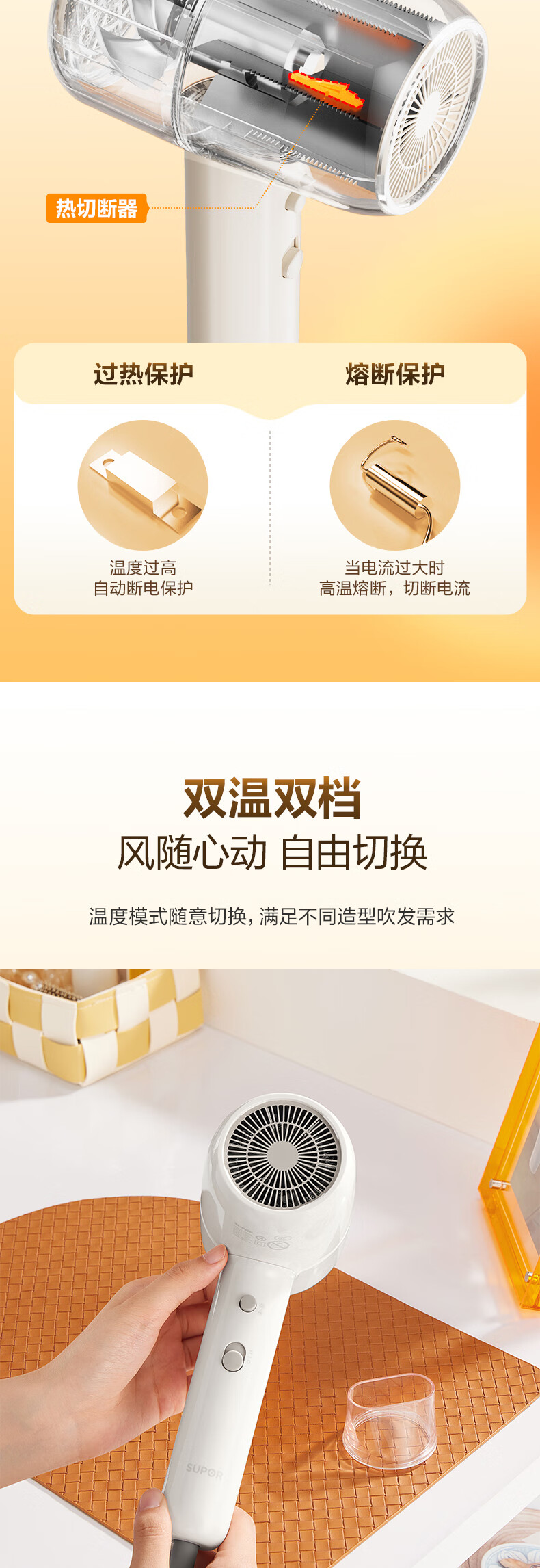 苏泊尔(SUPOR) HDL-F3 1600W 2档电吹风 白色(单位:个)