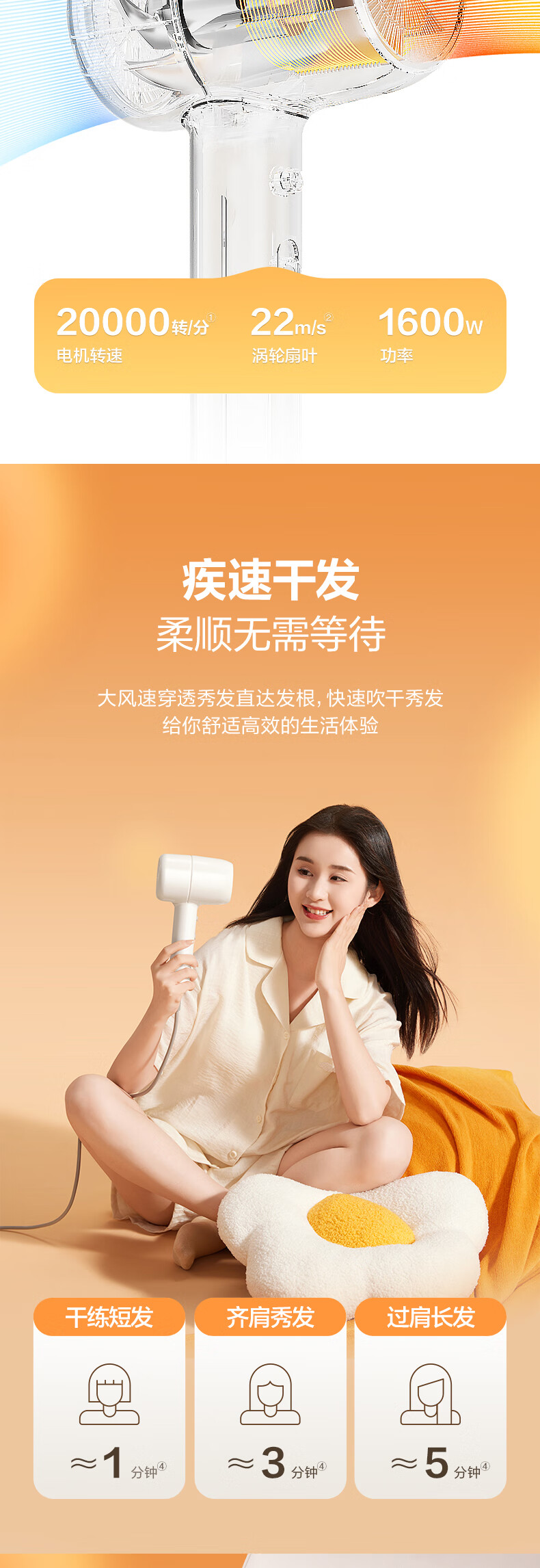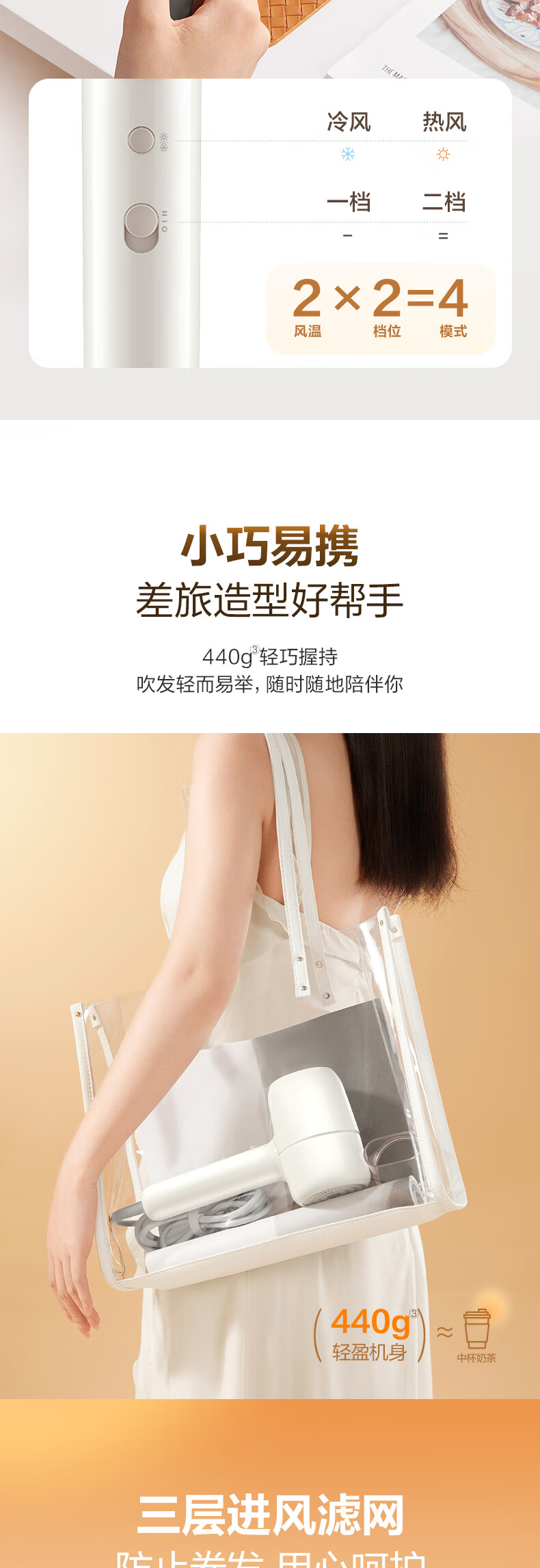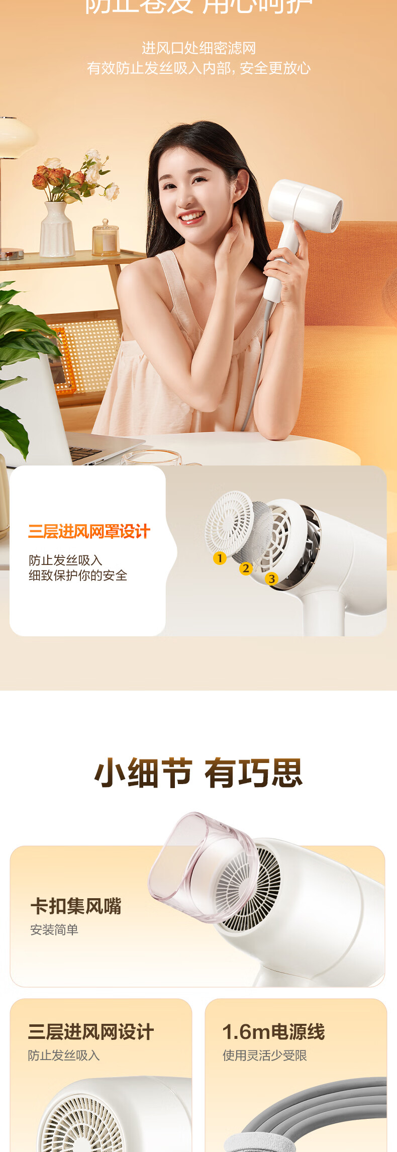 苏泊尔(SUPOR) HDL-F3 1600W 2档电吹风 白色(单位:个)