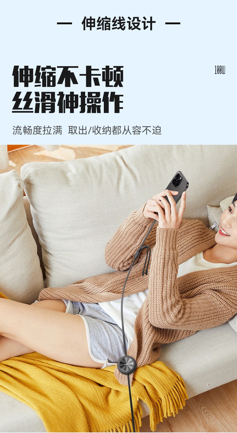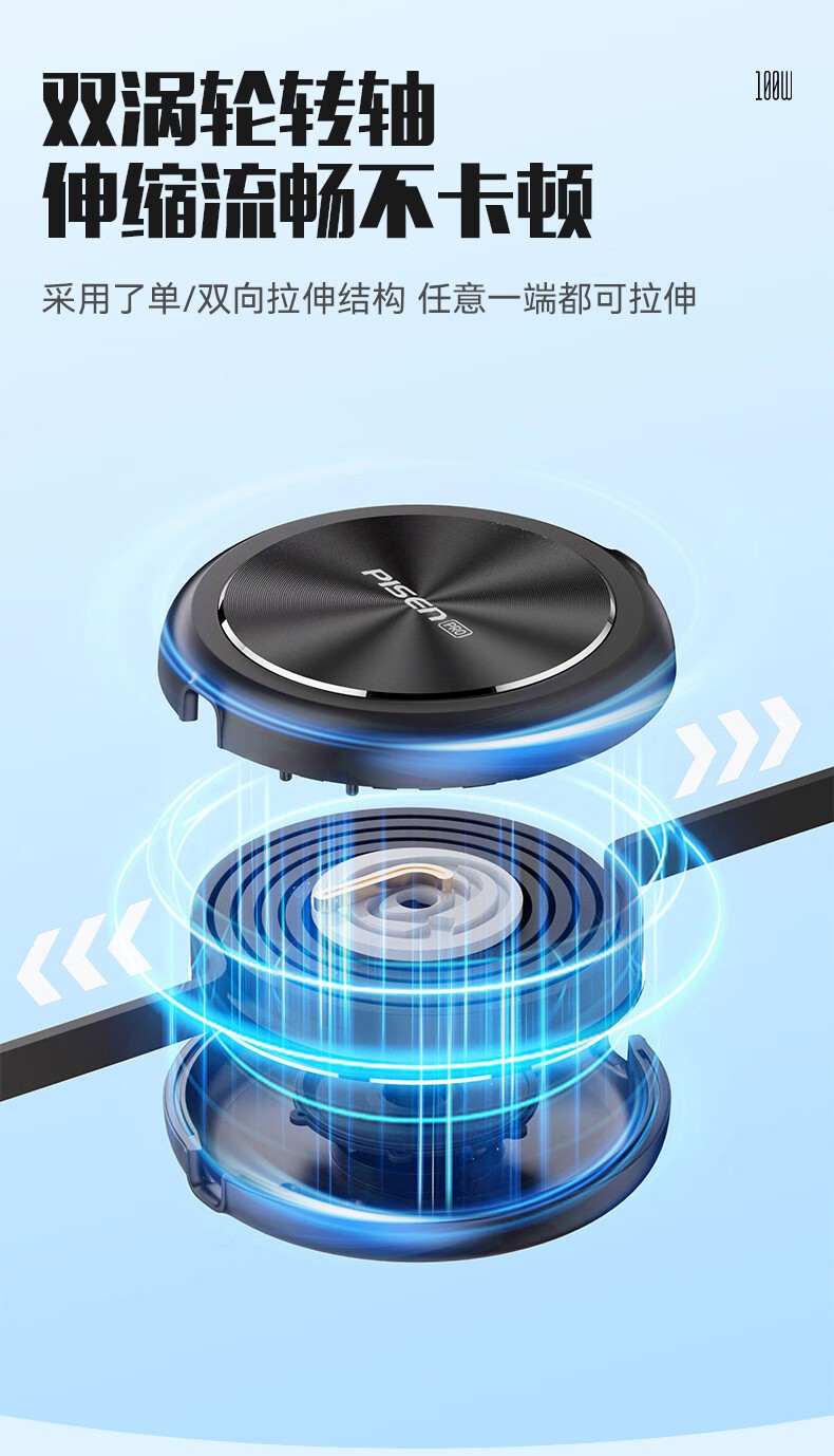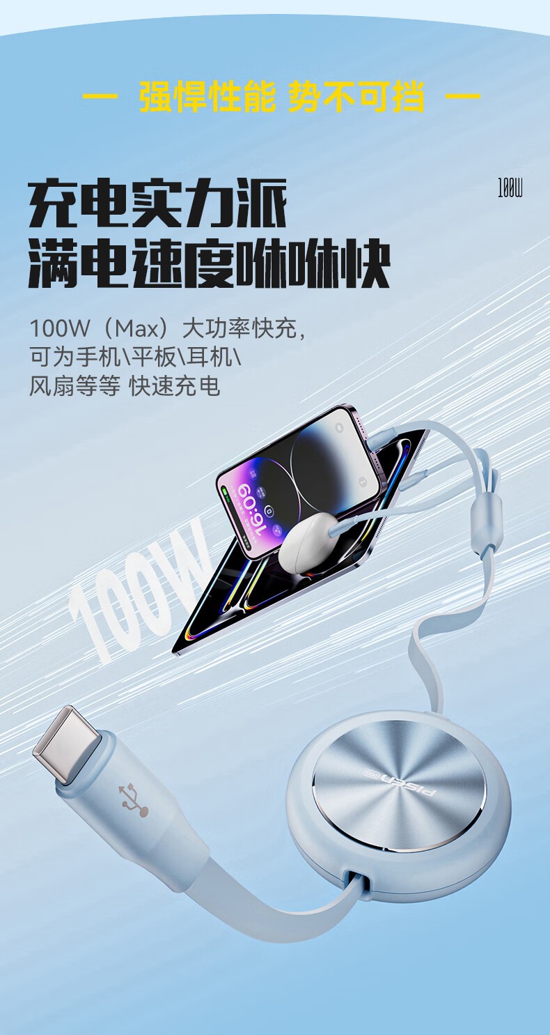 品胜(PISEN) PD100W 1.1米 一拖三拉伸充电线 白色(单位:条)