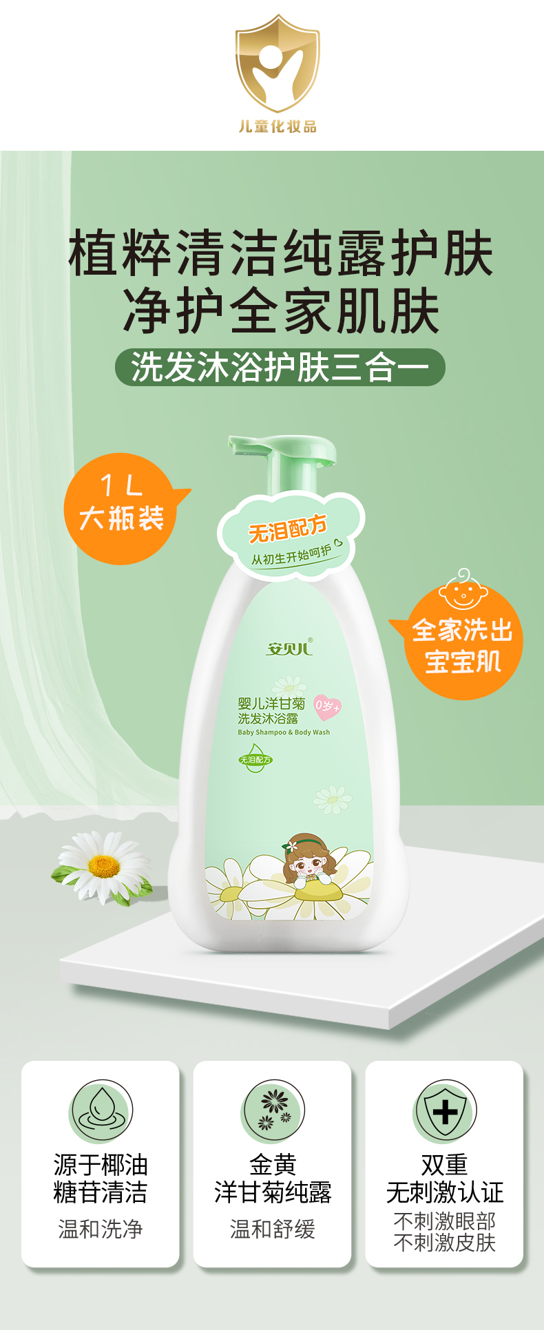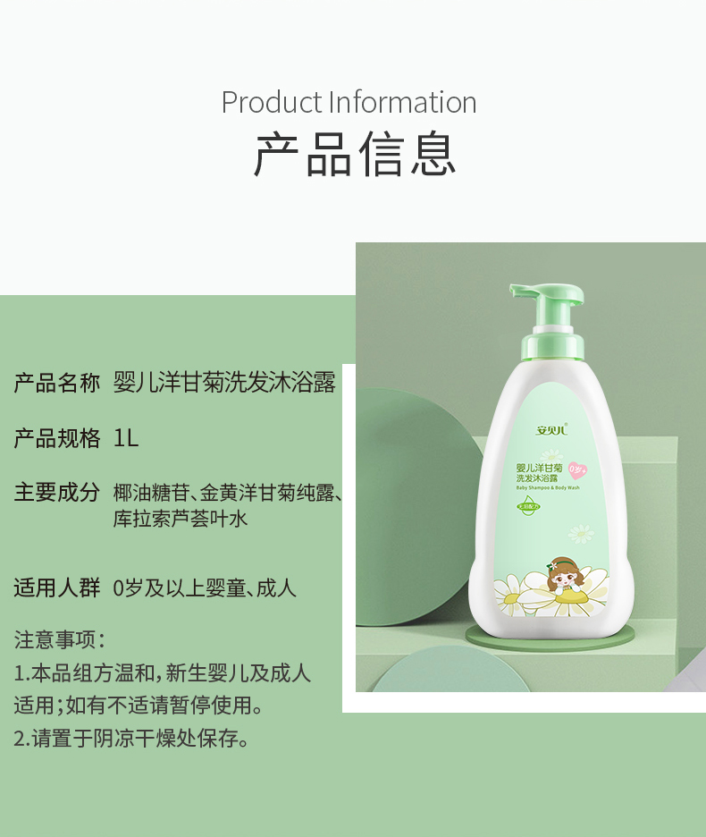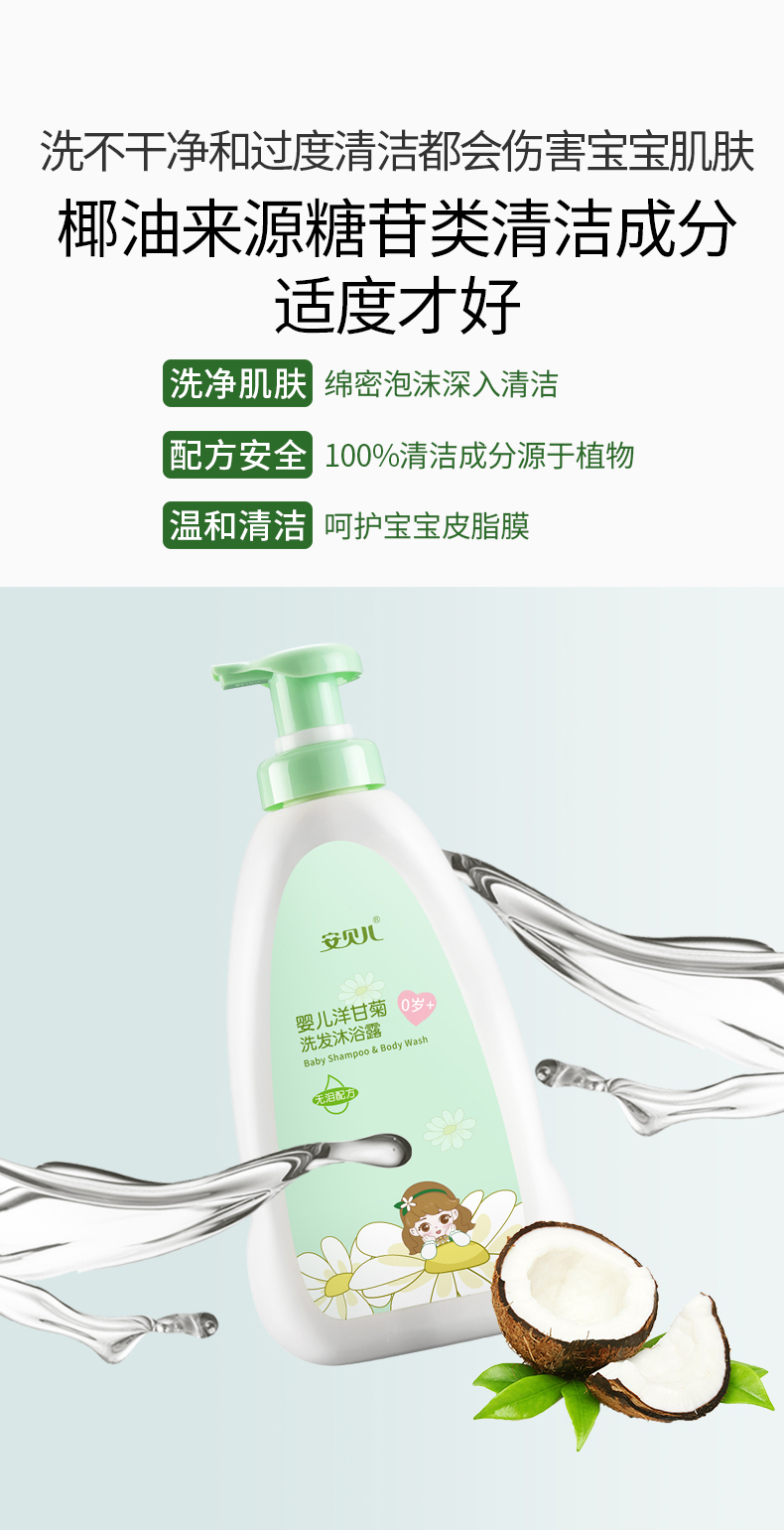 安贝儿 洗发沐浴露二合一 1000ml 洋甘菊纯露 绿色(单位:瓶)