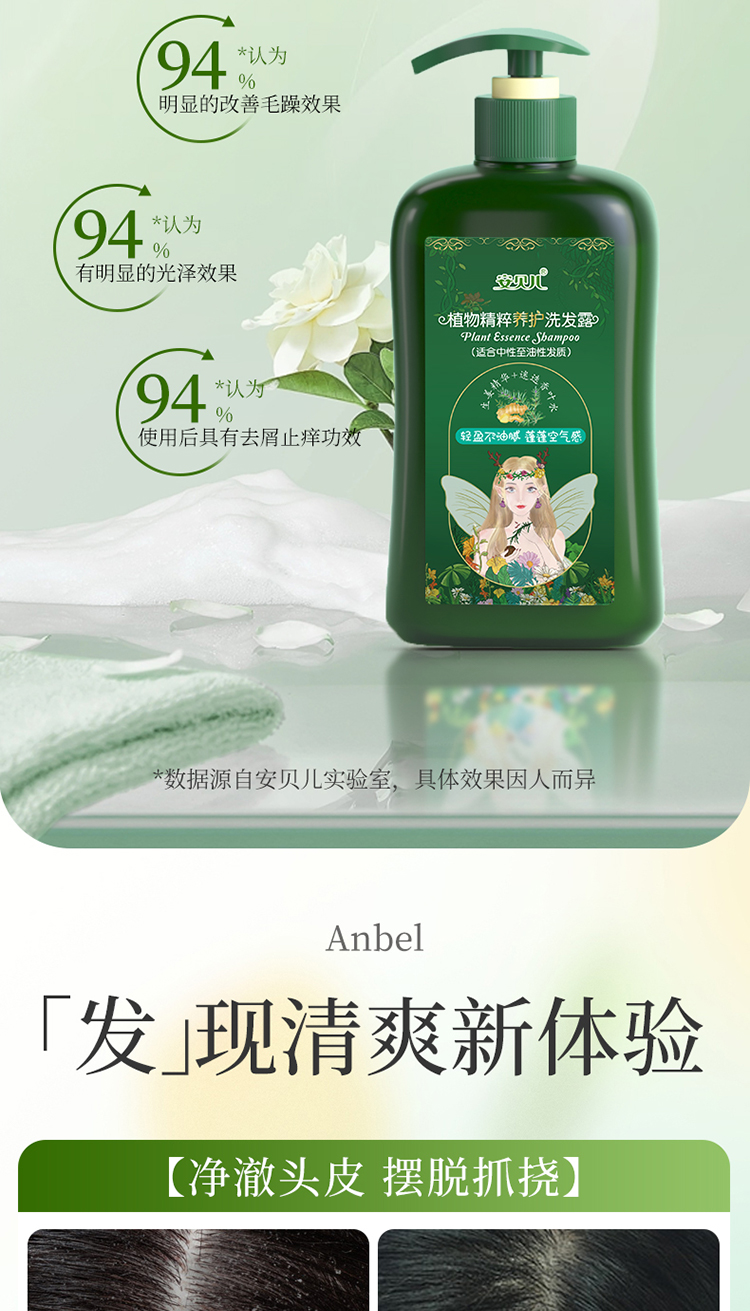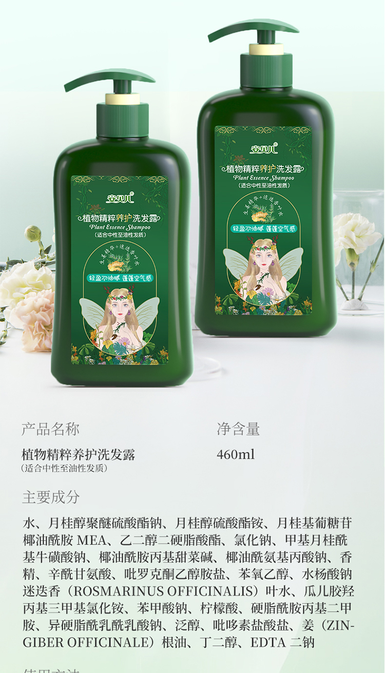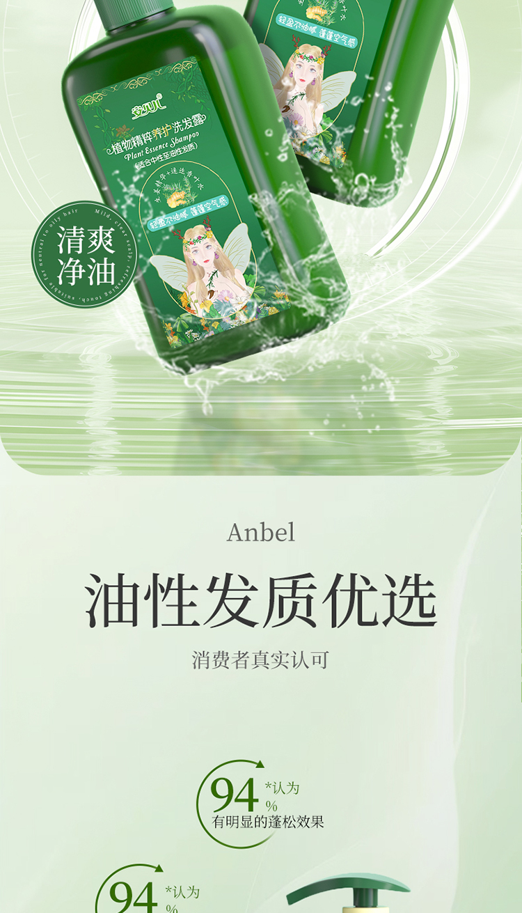 安贝儿 洗发露 460ml 油性发质 绿色(单位:瓶)