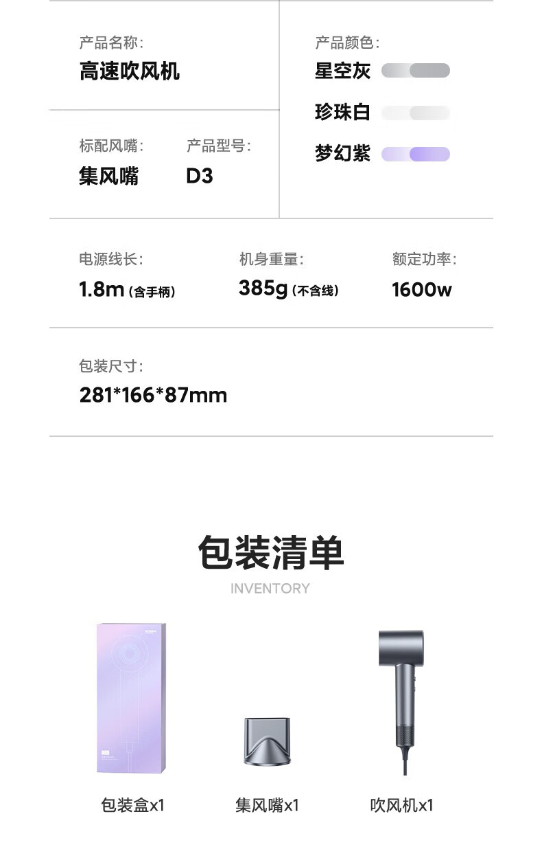 康佳(KONKA) D3 1600W 电吹风 混色(单位:个)