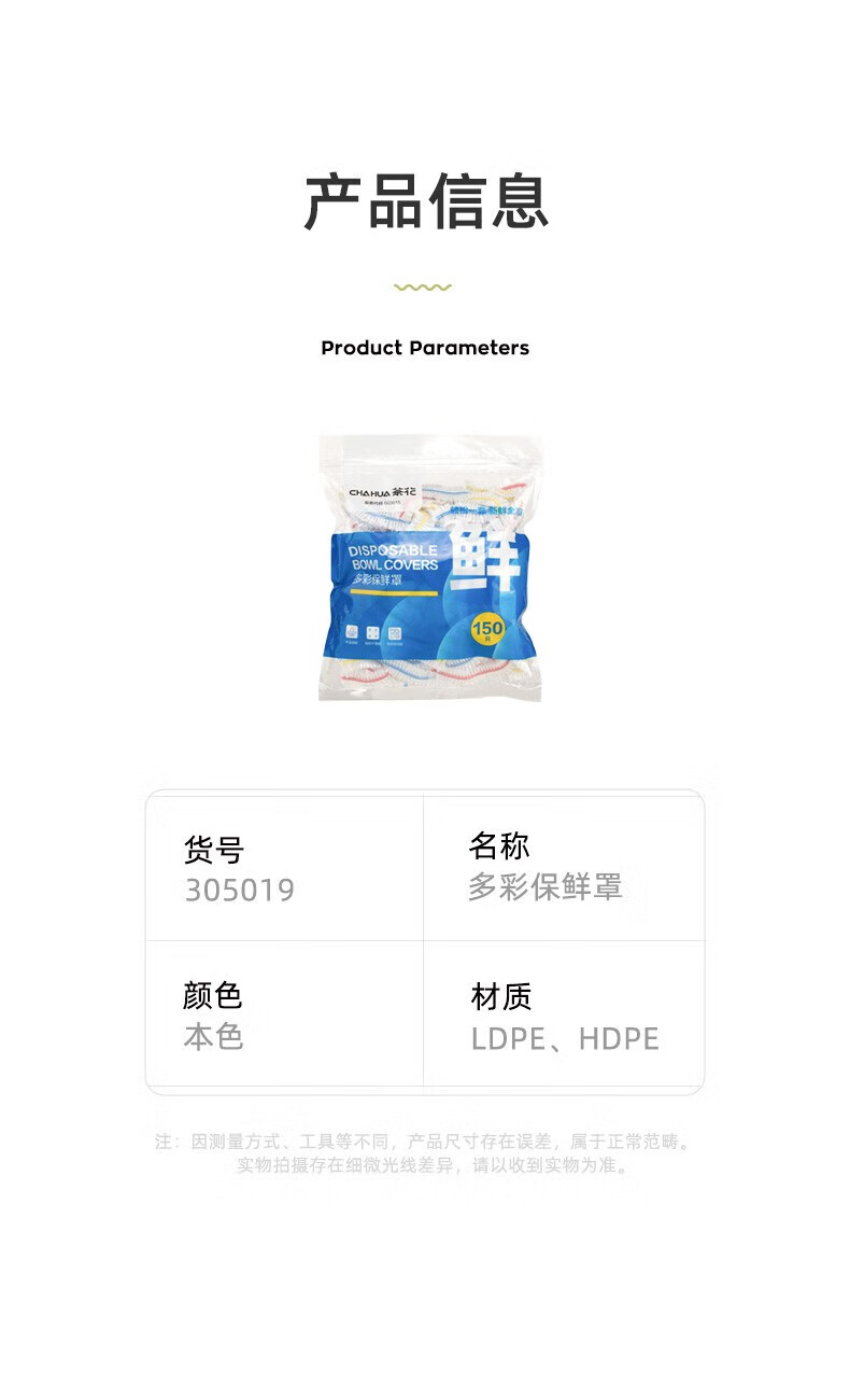茶花(CHAHUA) 保鲜罩 150只 透明色(单位:袋)