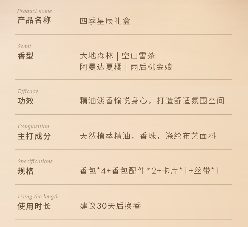 独特艾琳(Dear lrean) 四季星辰 13g*4 香氛礼盒(配礼袋) 混色(单位:盒)