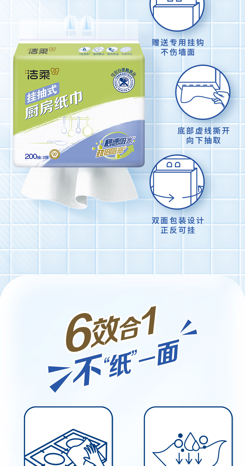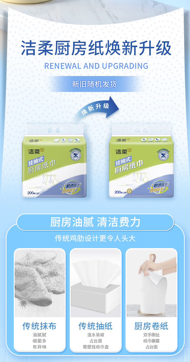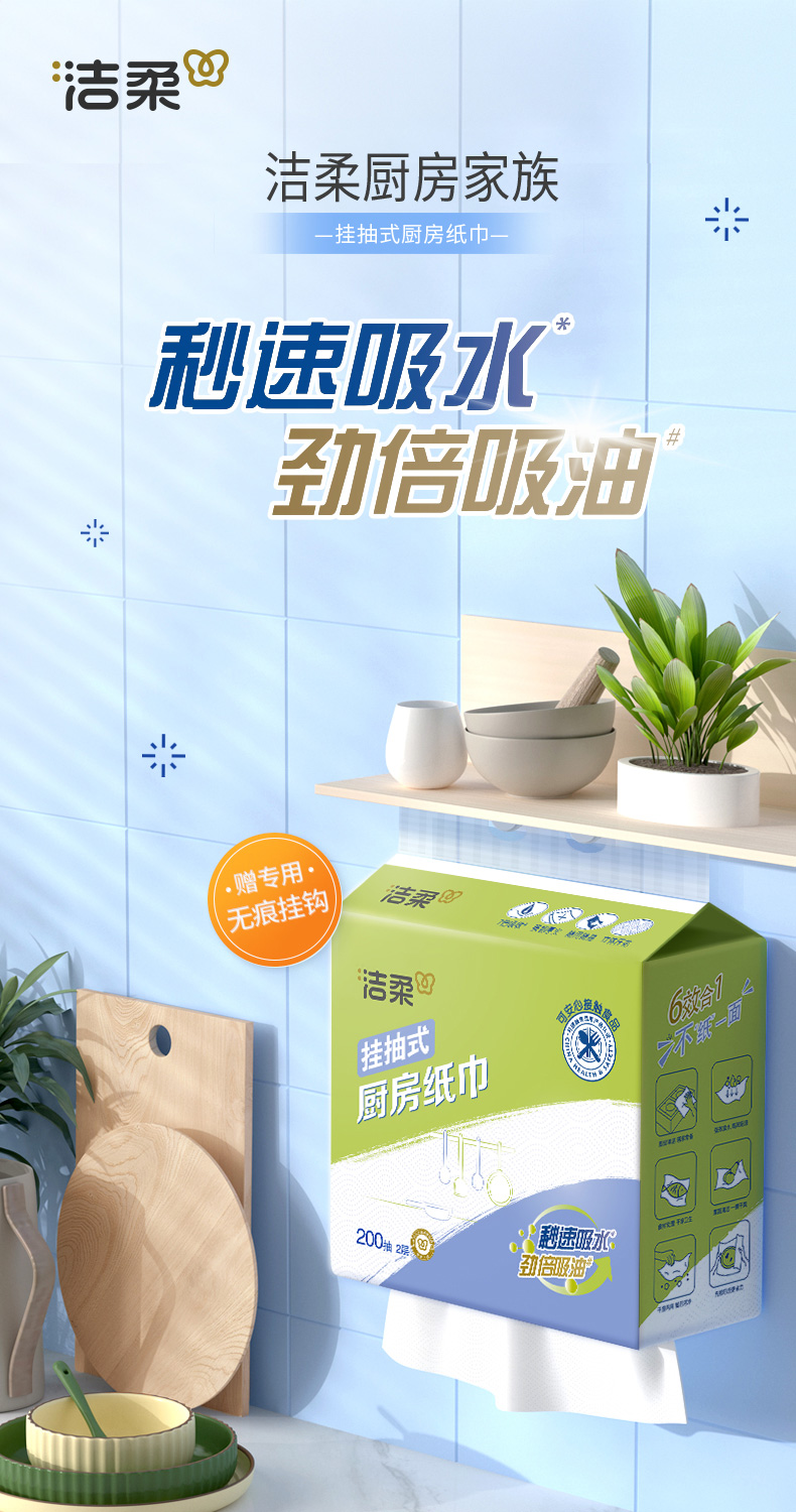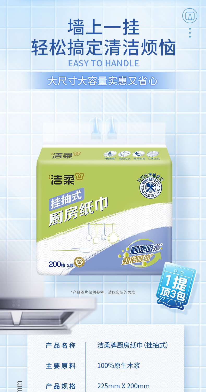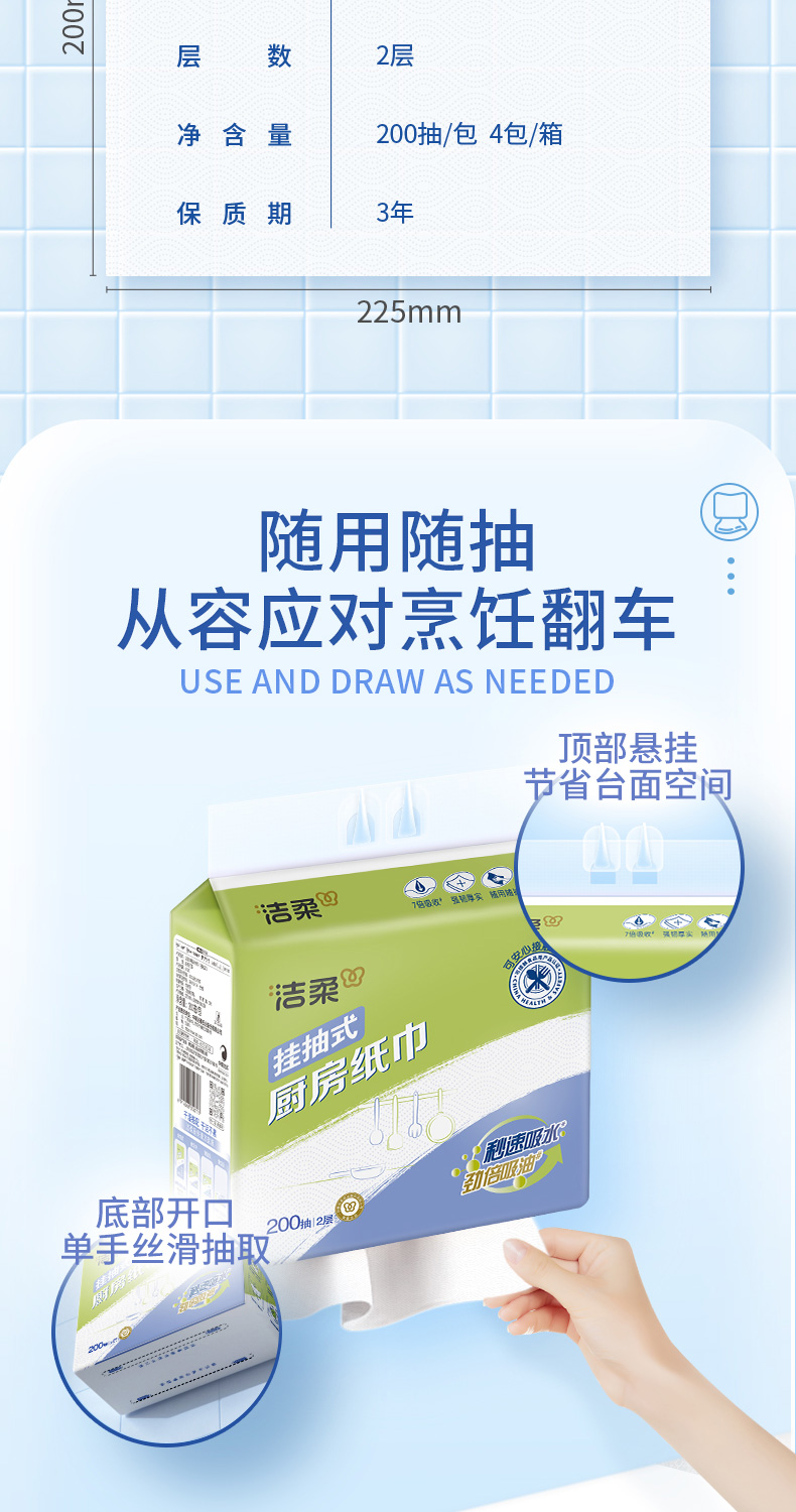 洁柔(C&S) 悬挂式便利抽厨房纸巾 JK210-04 200抽2层(4包箱装) 白色(单位:箱)