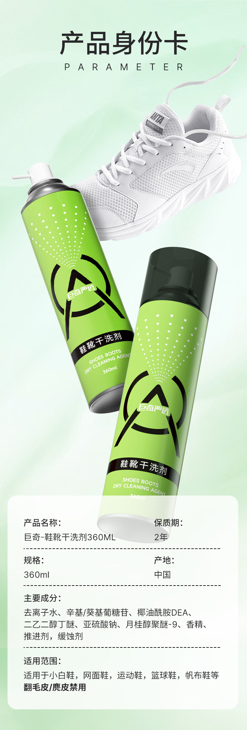 巨奇(JUQI) 小白鞋清洁剂绿罐 360ml 去黄增白 绿色(单位:瓶)