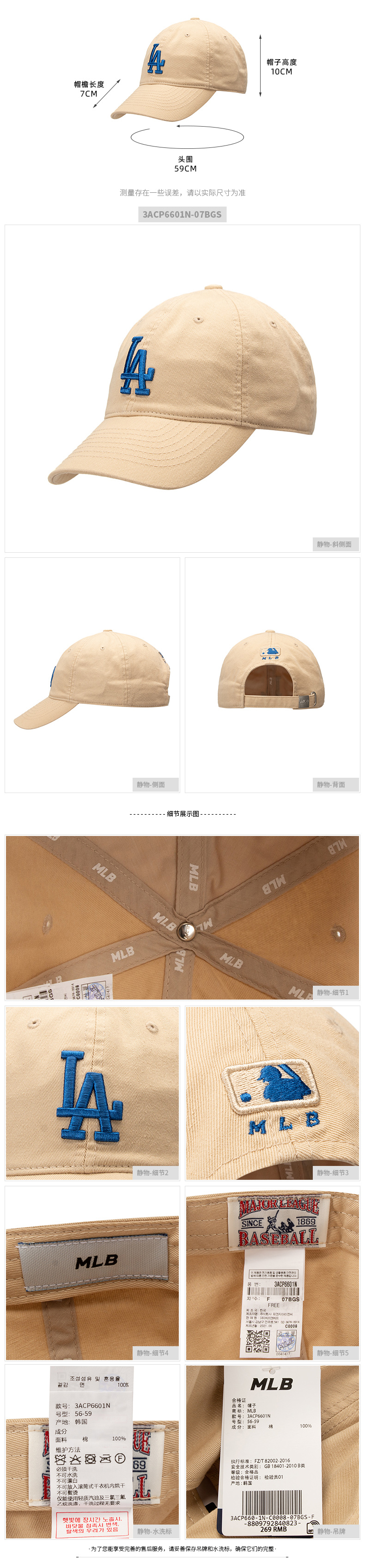 MLB 3ACP6601N-07BGS F 中性休闲帽 米色(单位:顶)