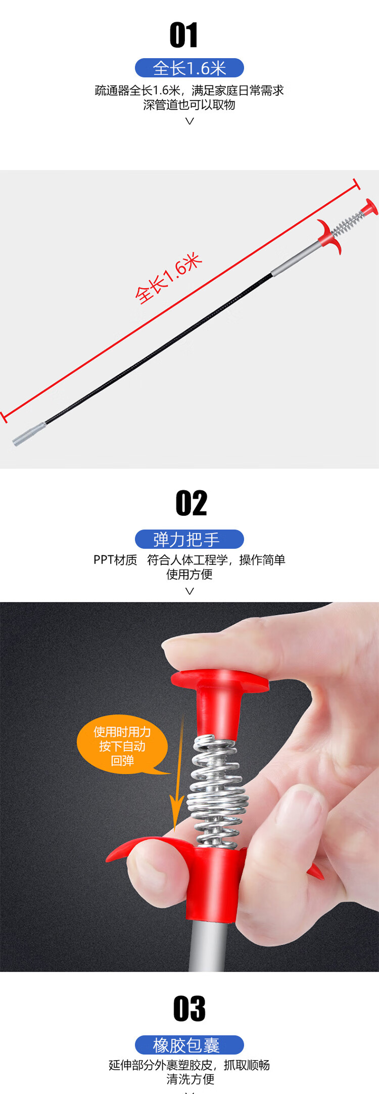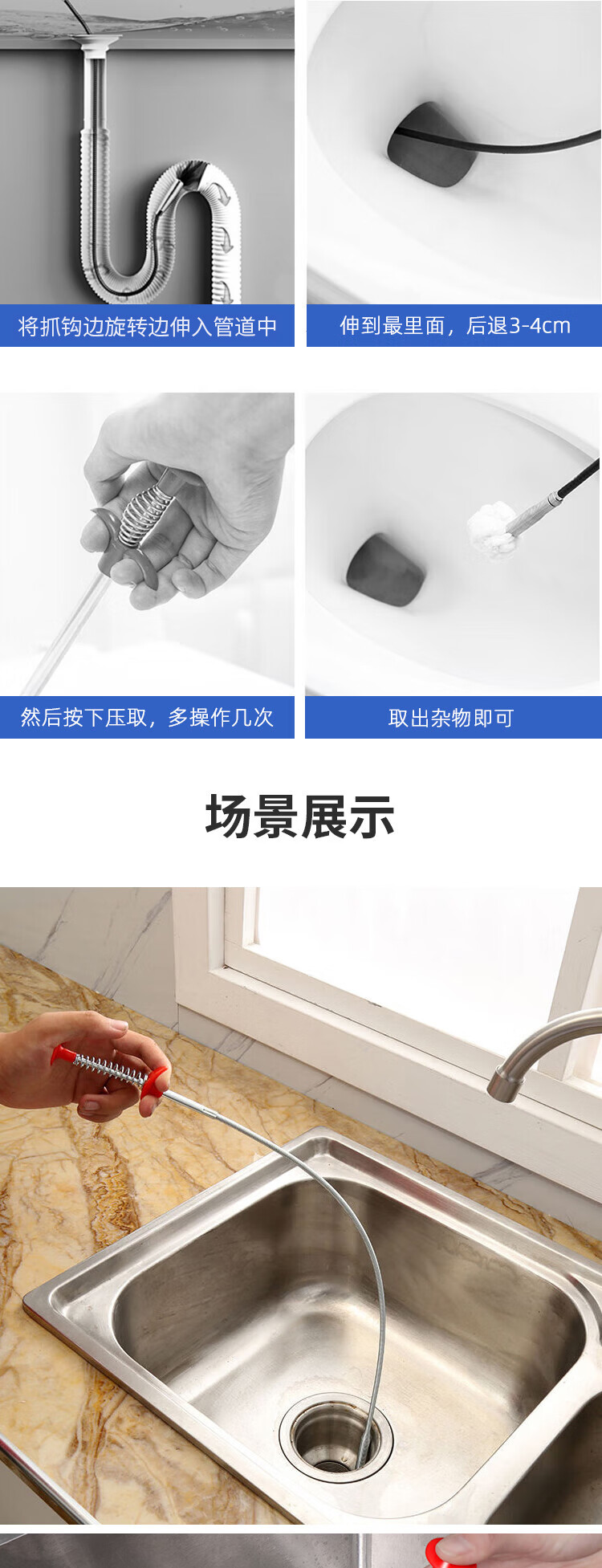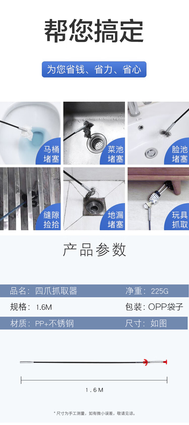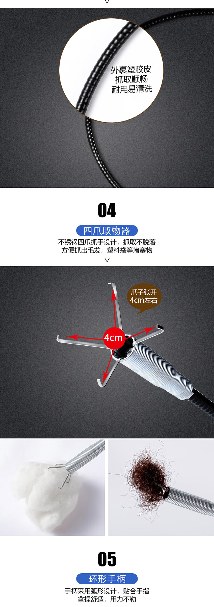 巨奇(JUQI) 四爪管道疏通器 1.6米 疏通 钢色(单位:个)
