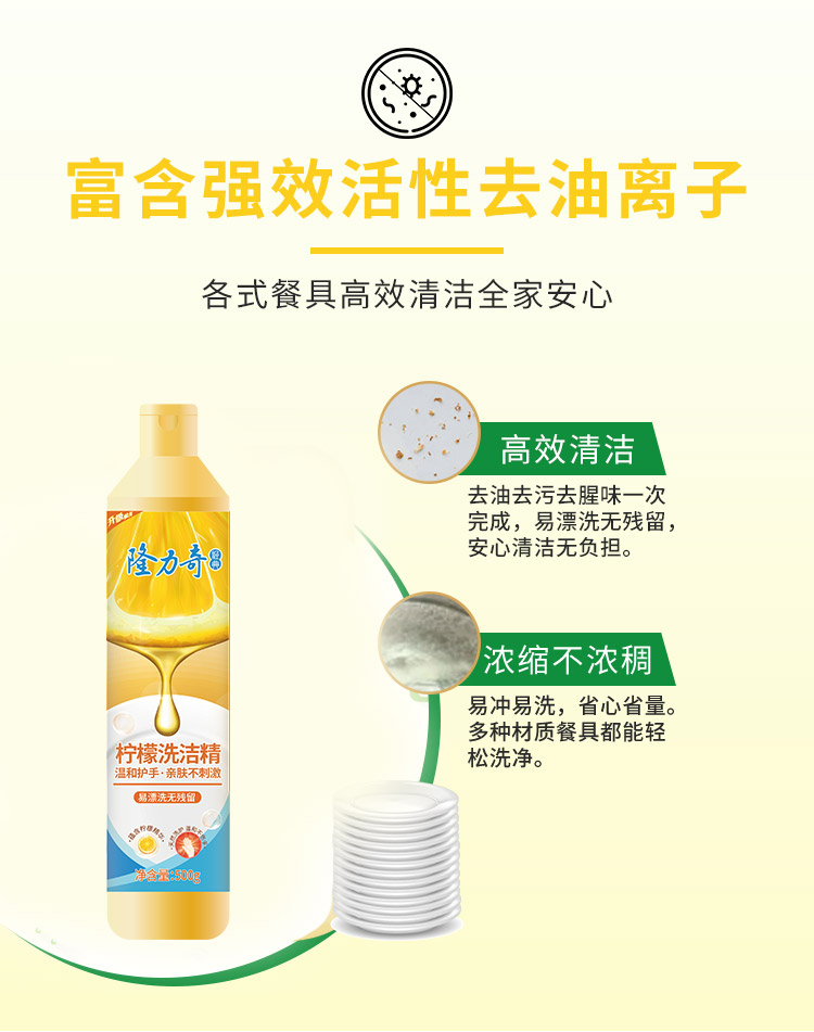 隆力奇 LLQ-202502005 500g/瓶*5 柠檬洗洁精 黄色(单位:套)