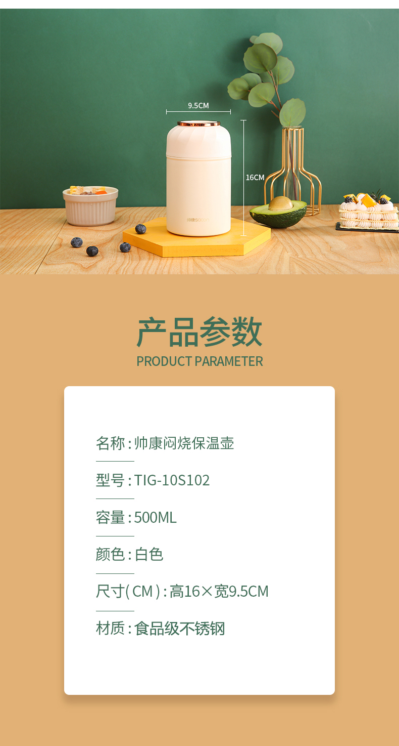 帅康(Sacon) TIG-10S102 500ml 焖烧保温壶 杏色(单位:台)