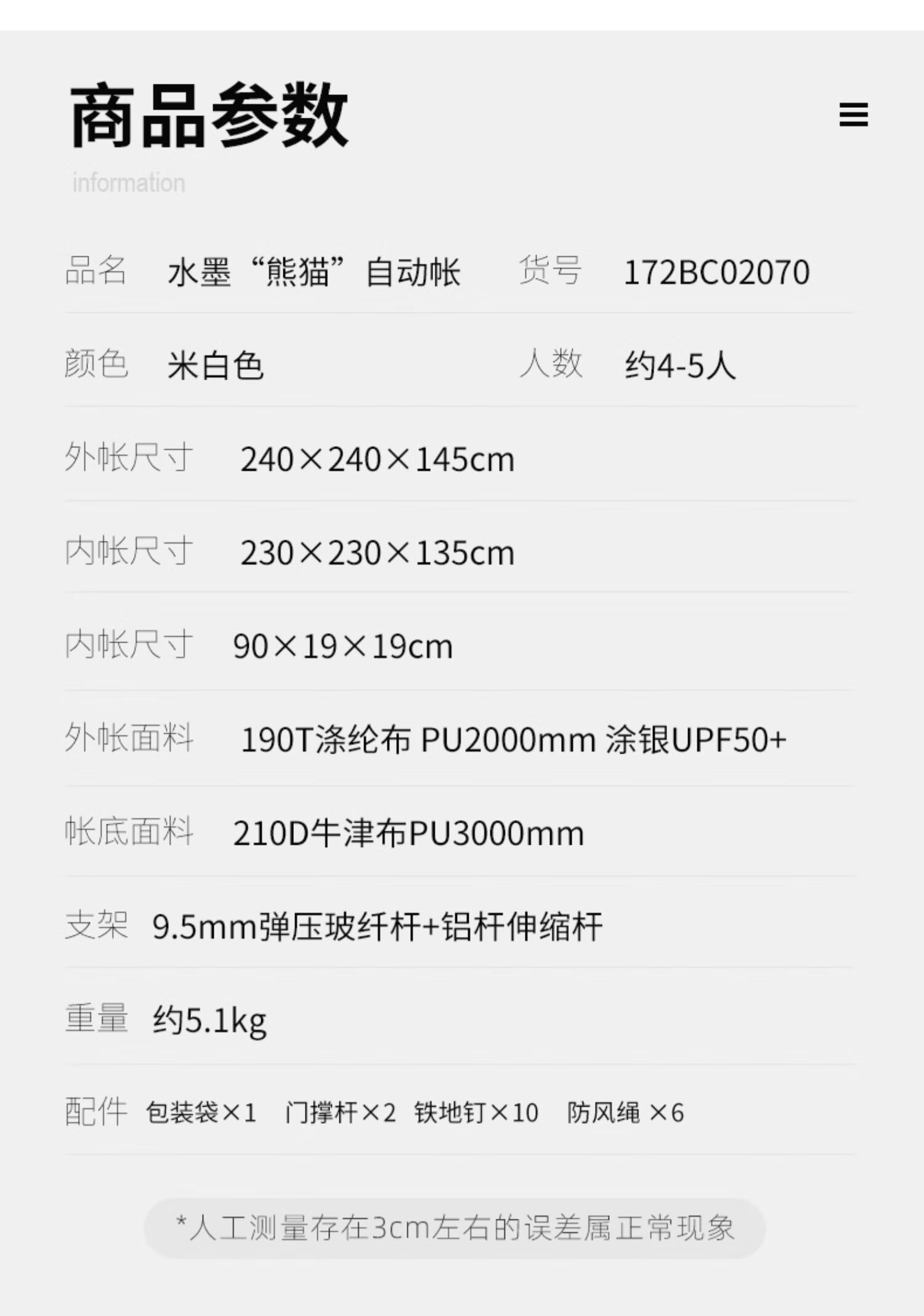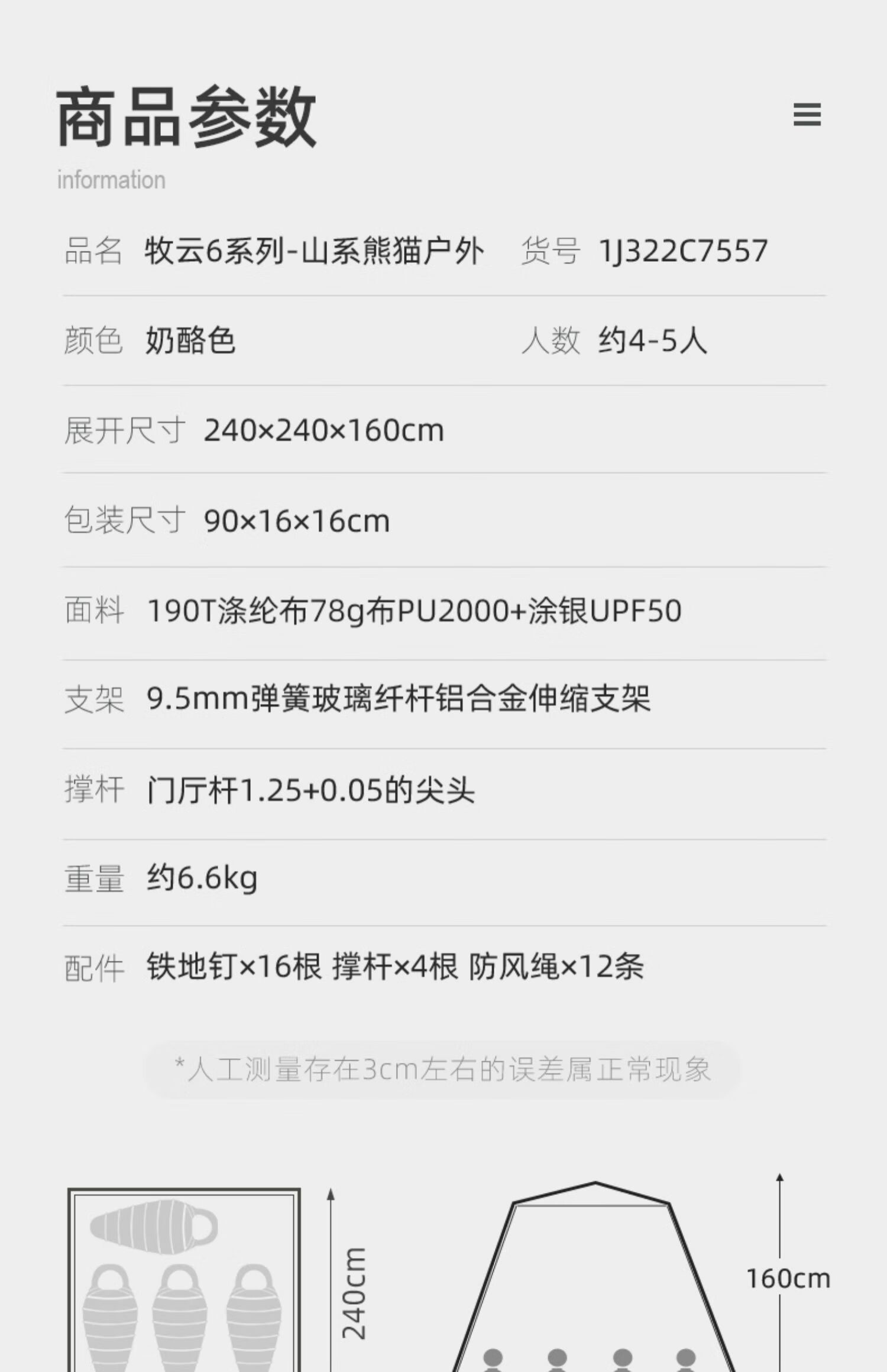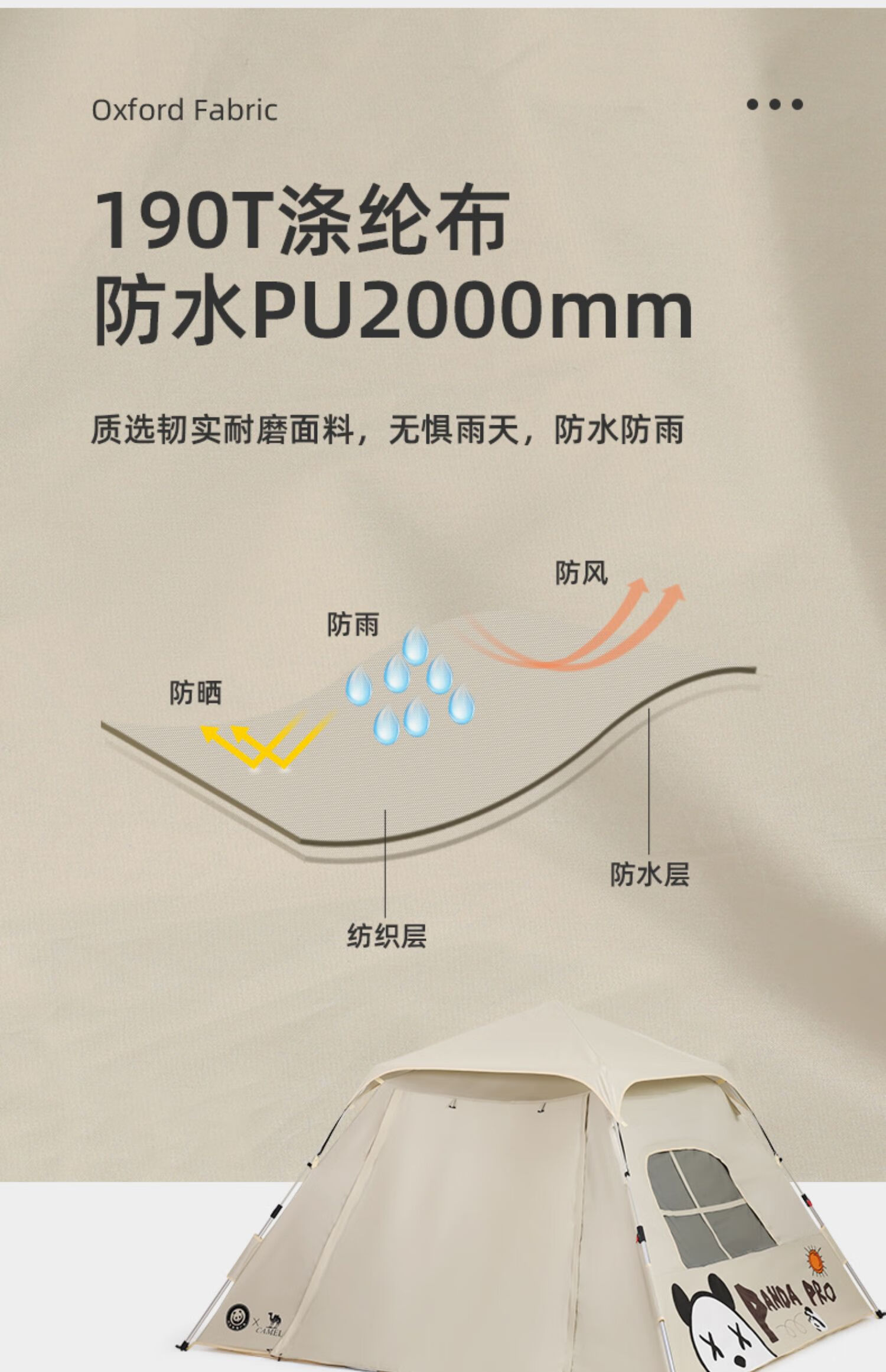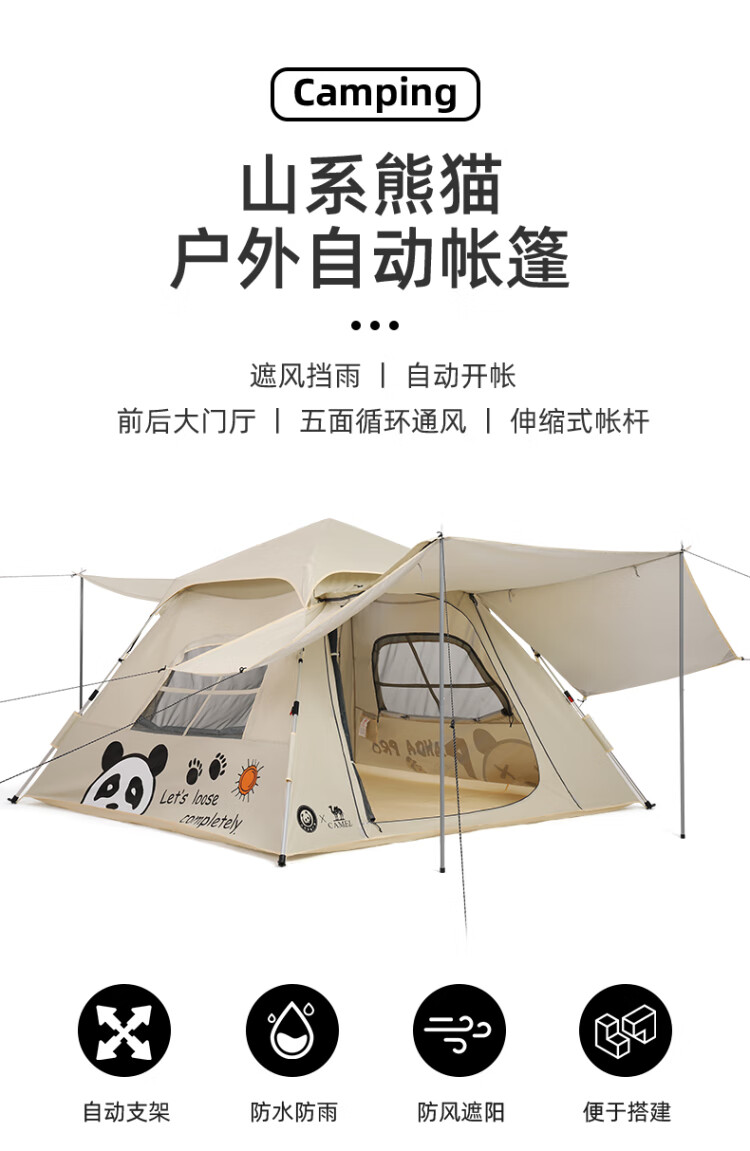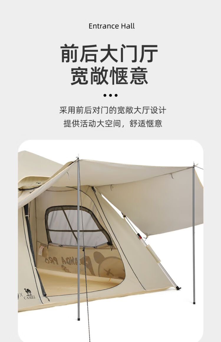 骆驼(CAMEL) 【熊猫】帐篷户外便携折叠双门全自动野餐野营装备加厚防雨 1J322C7557 个 奶酪色