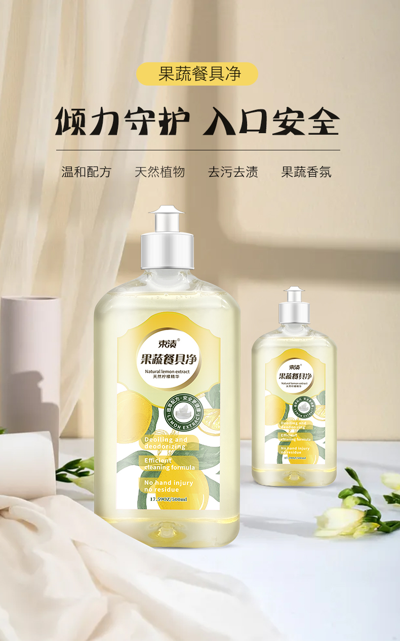 束渍 柠檬清香 500ml 果蔬餐具净 无色(单位:瓶)