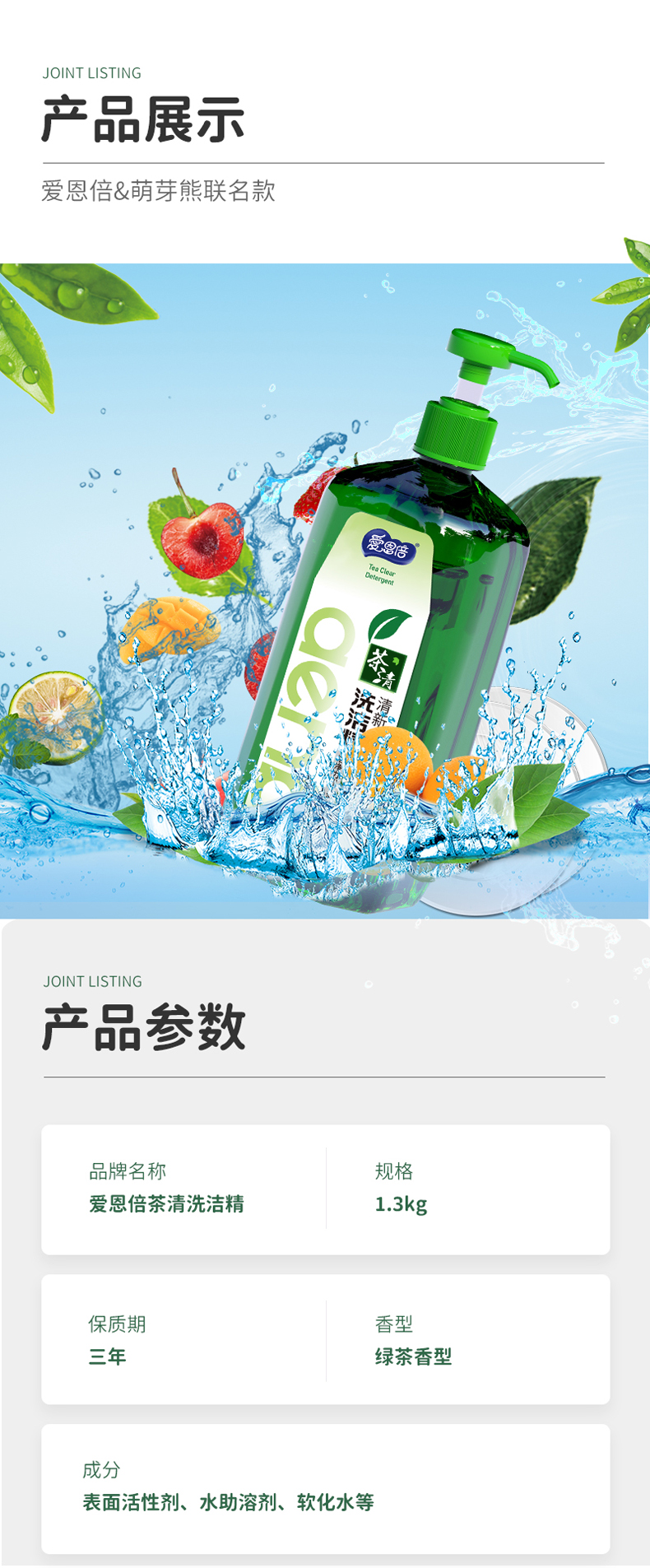 爱恩倍 3DS-XJJ001 1.3kg/瓶*3瓶 茶清洗洁精 灰绿色(单位:组)