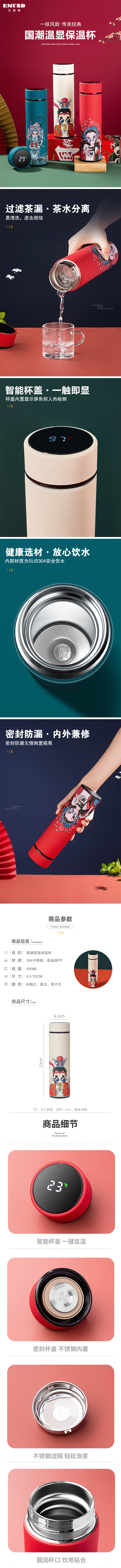 艾姆德 国潮温显保温杯 DH-GC50 中国红/素白/君子兰