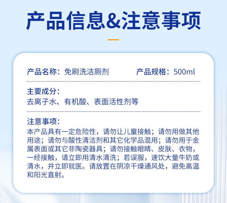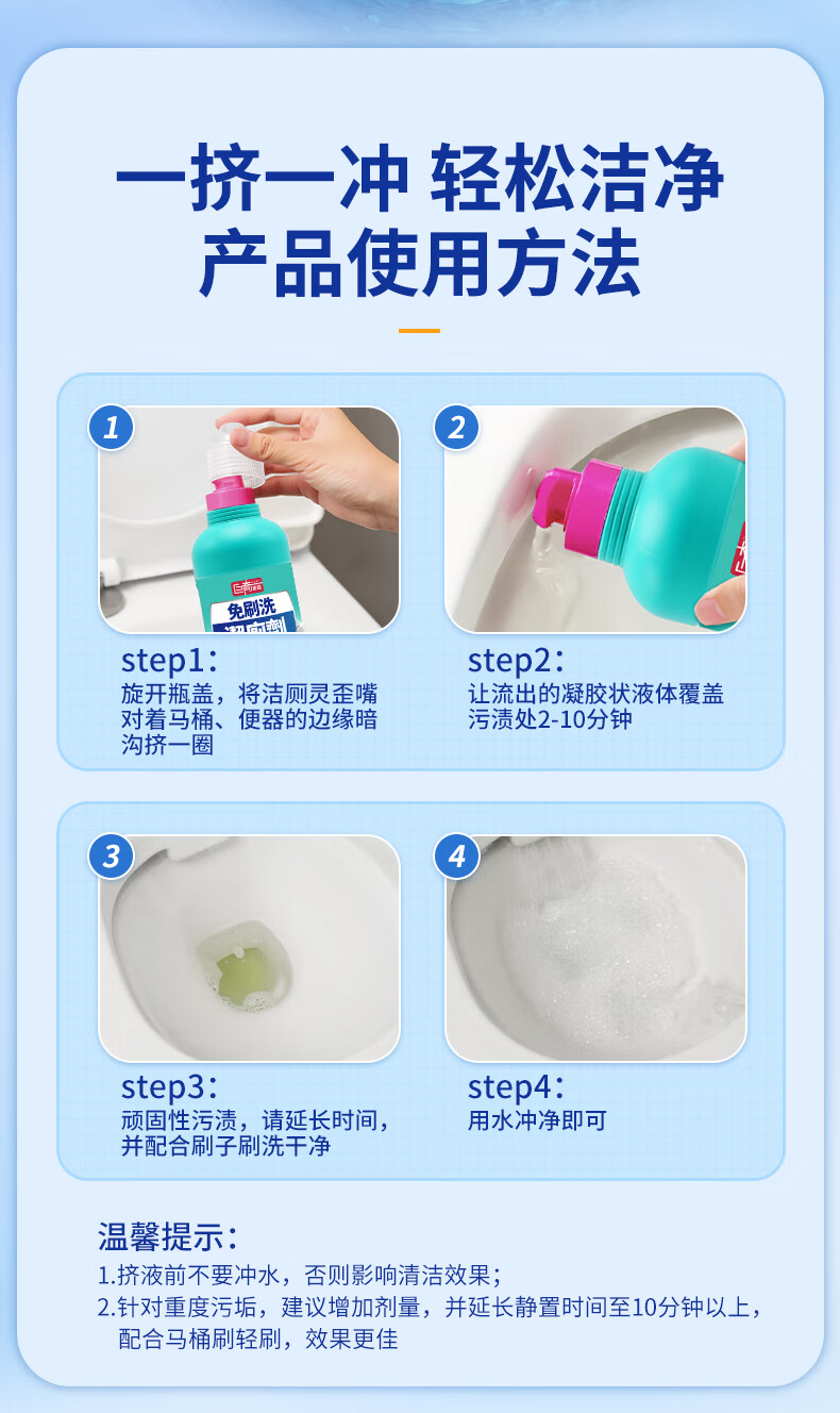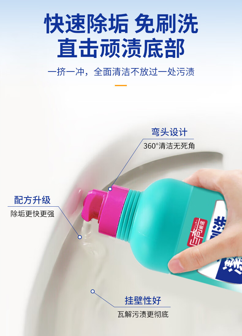 巨奇(JUQI) 免刷洗洁厕剂 500ml*3瓶 抑菌除垢 蓝色(单位:套)