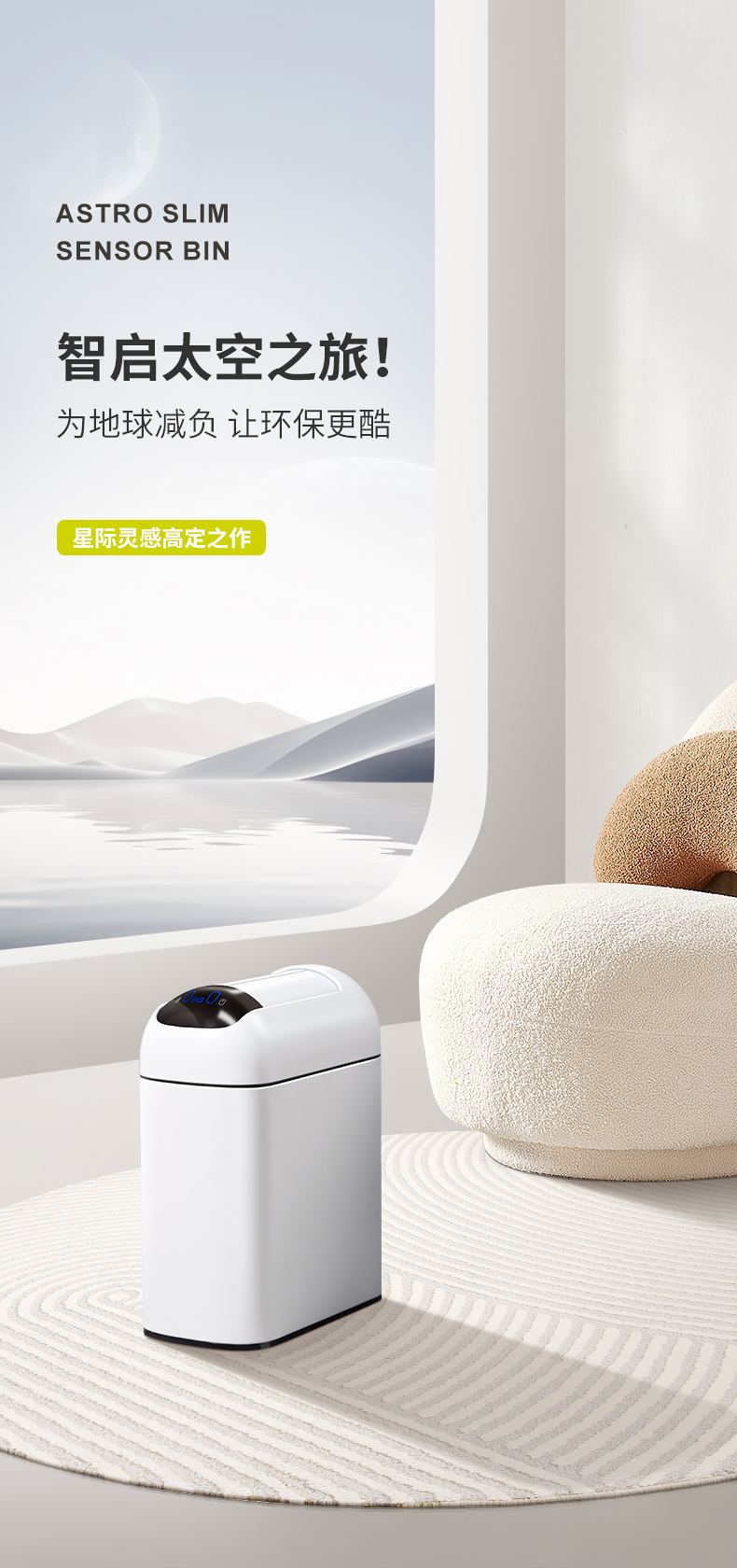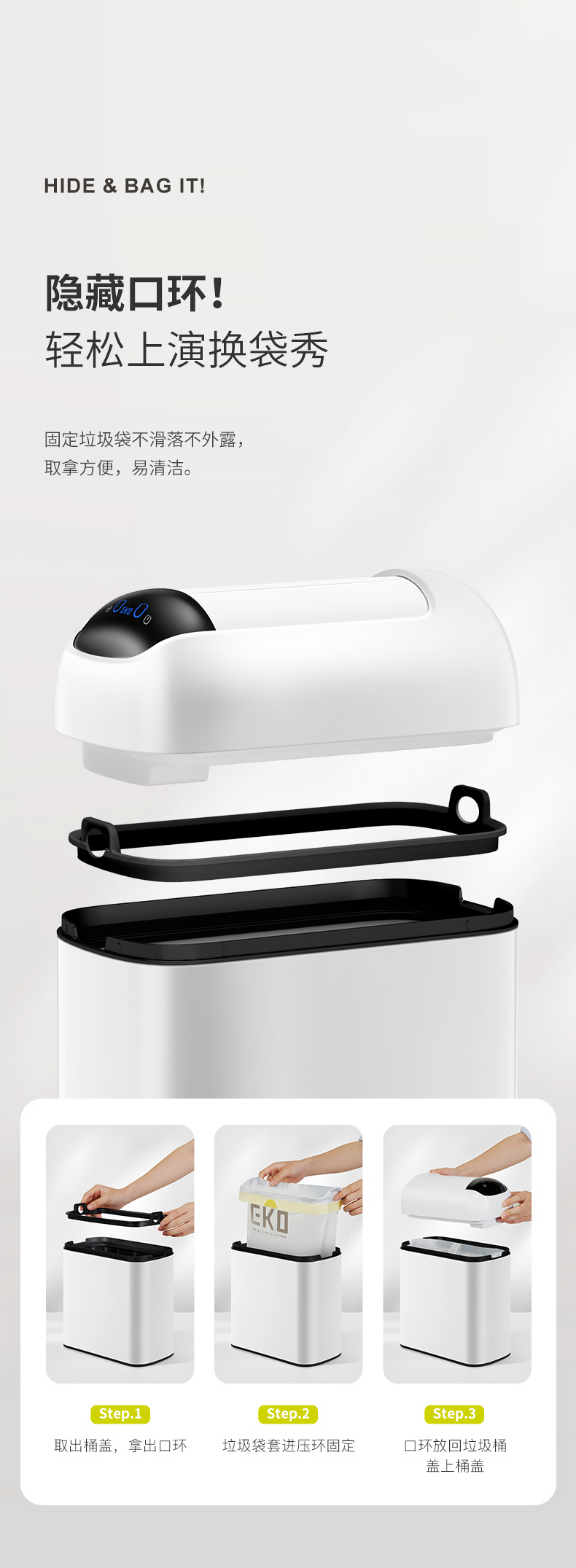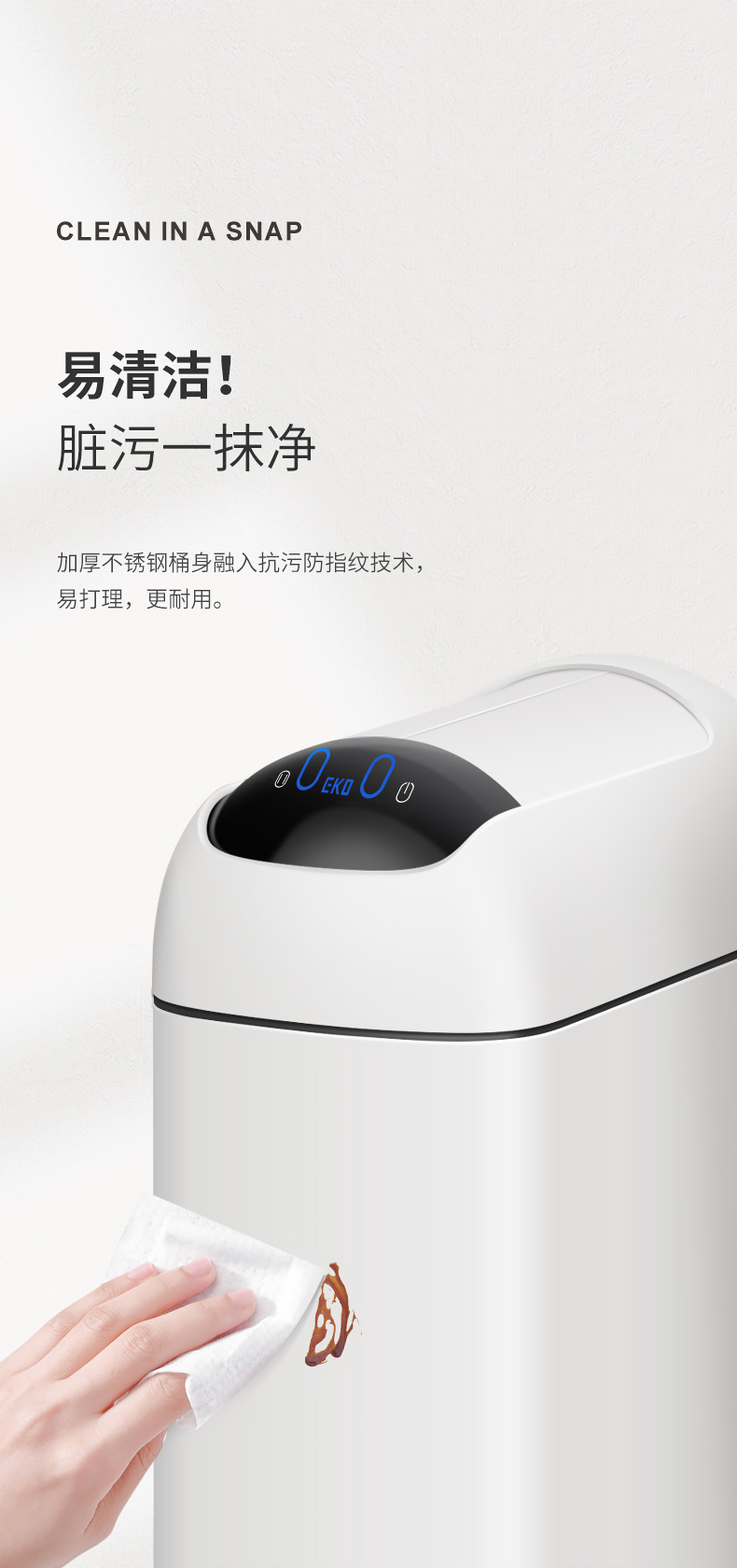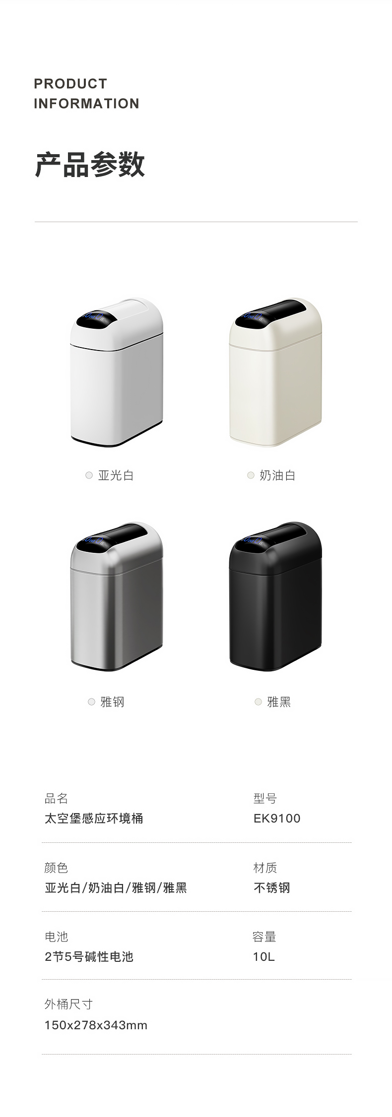 EKO 卫生间智能垃圾桶 EK9100MMT-10L 10L 雅钢(单位:个)