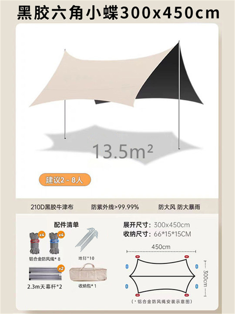 飞图乐(FTLY) TM0301 3×4.5m 蝶形黑胶六角天幕中号 流沙金(单位:个)