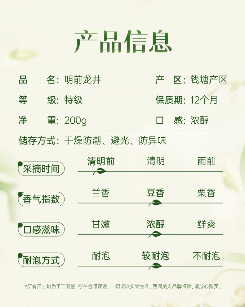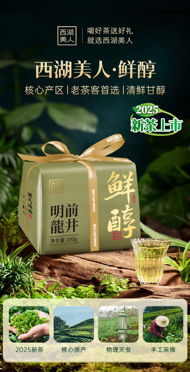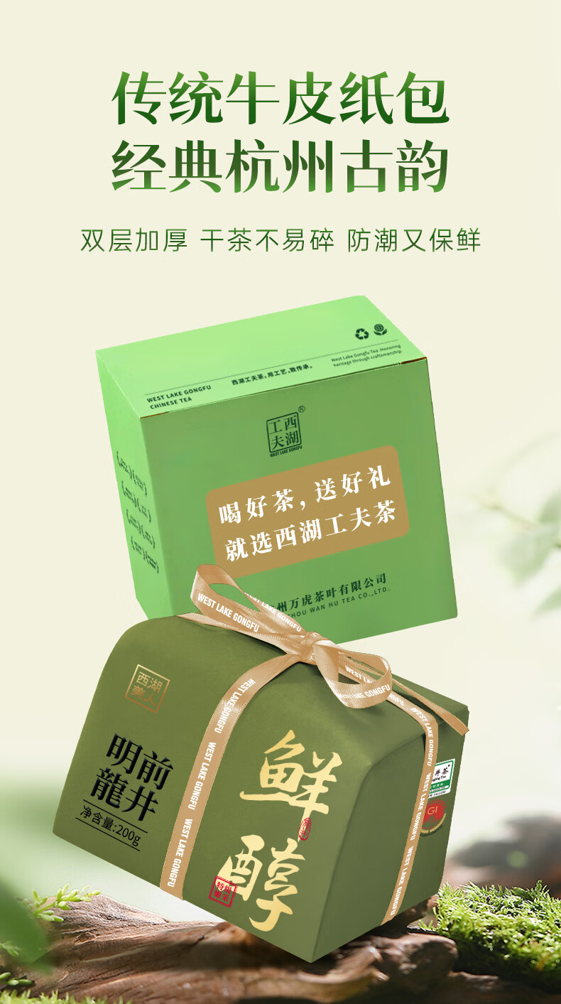 西湖工夫 特级2A 200g/盒*1 鲜醇明前龙井 军绿色(单位:盒)