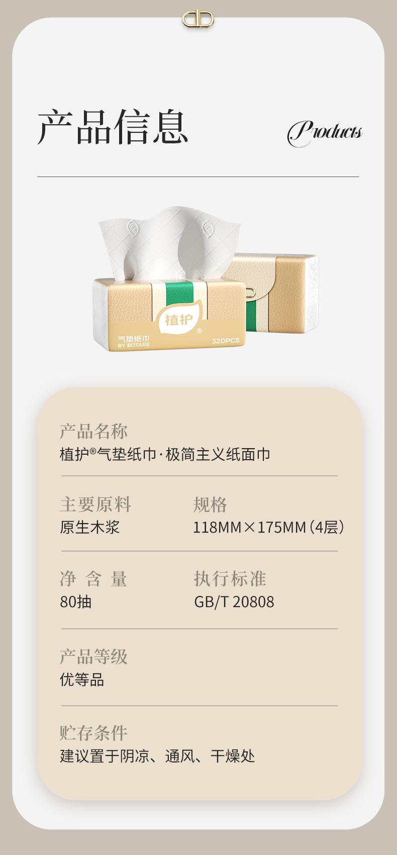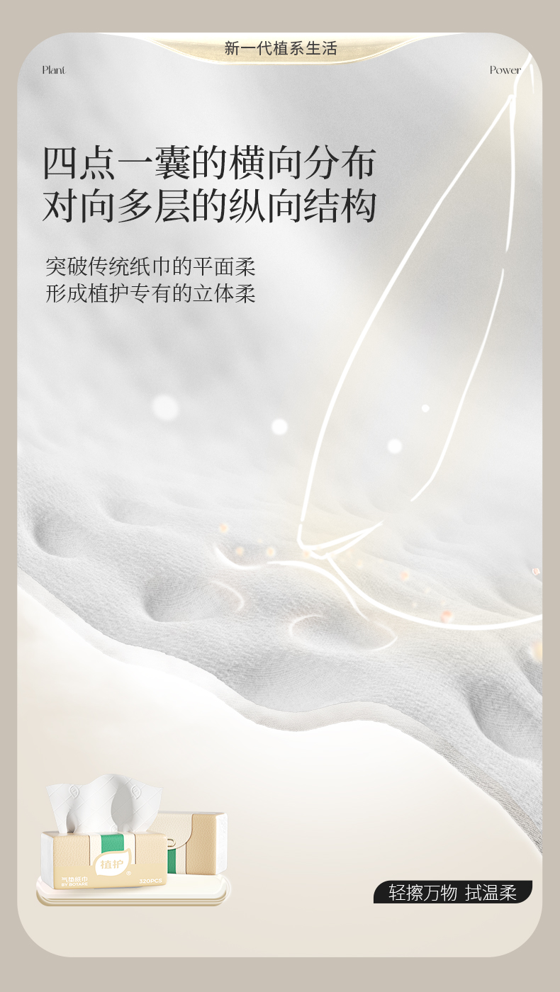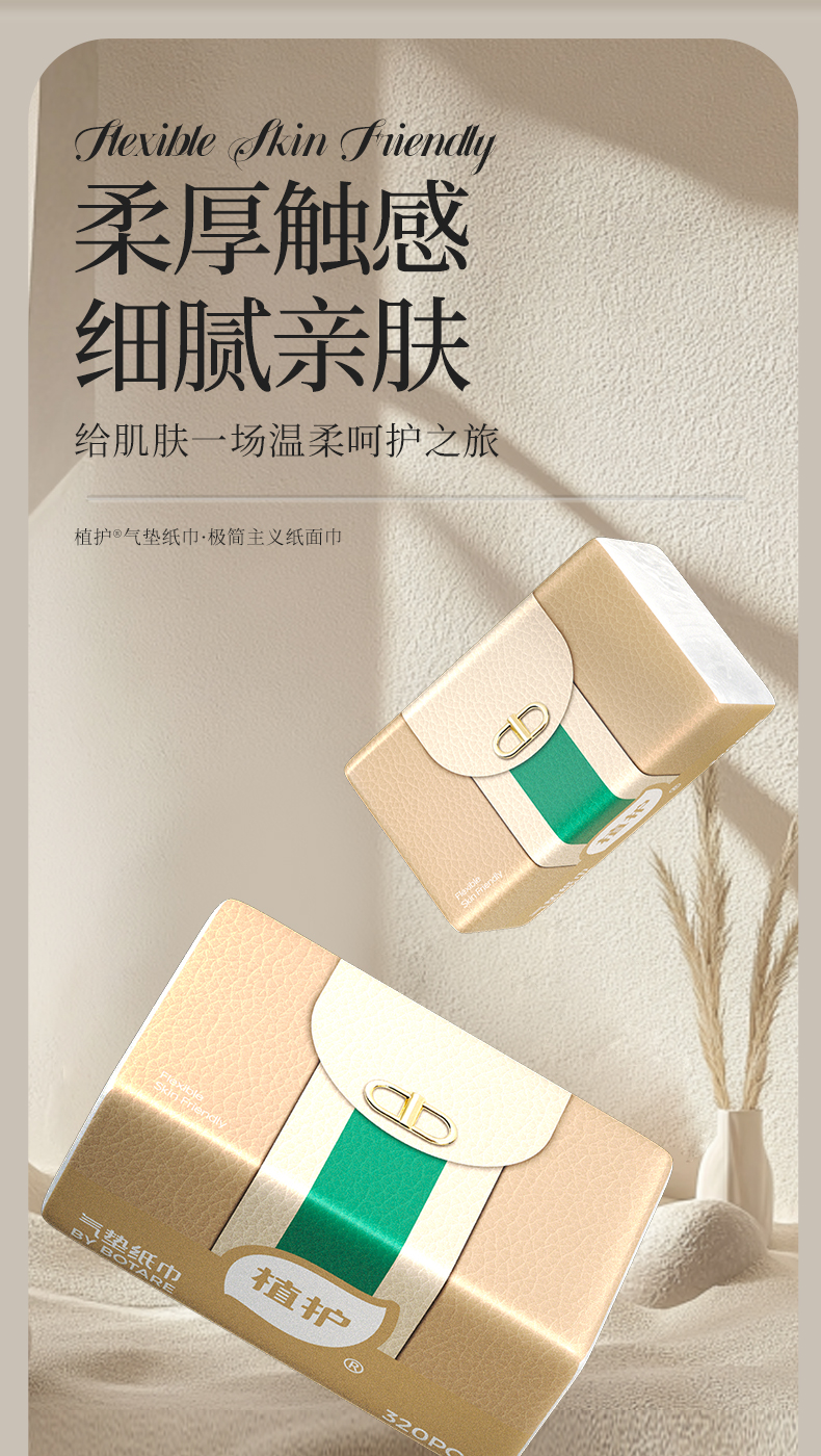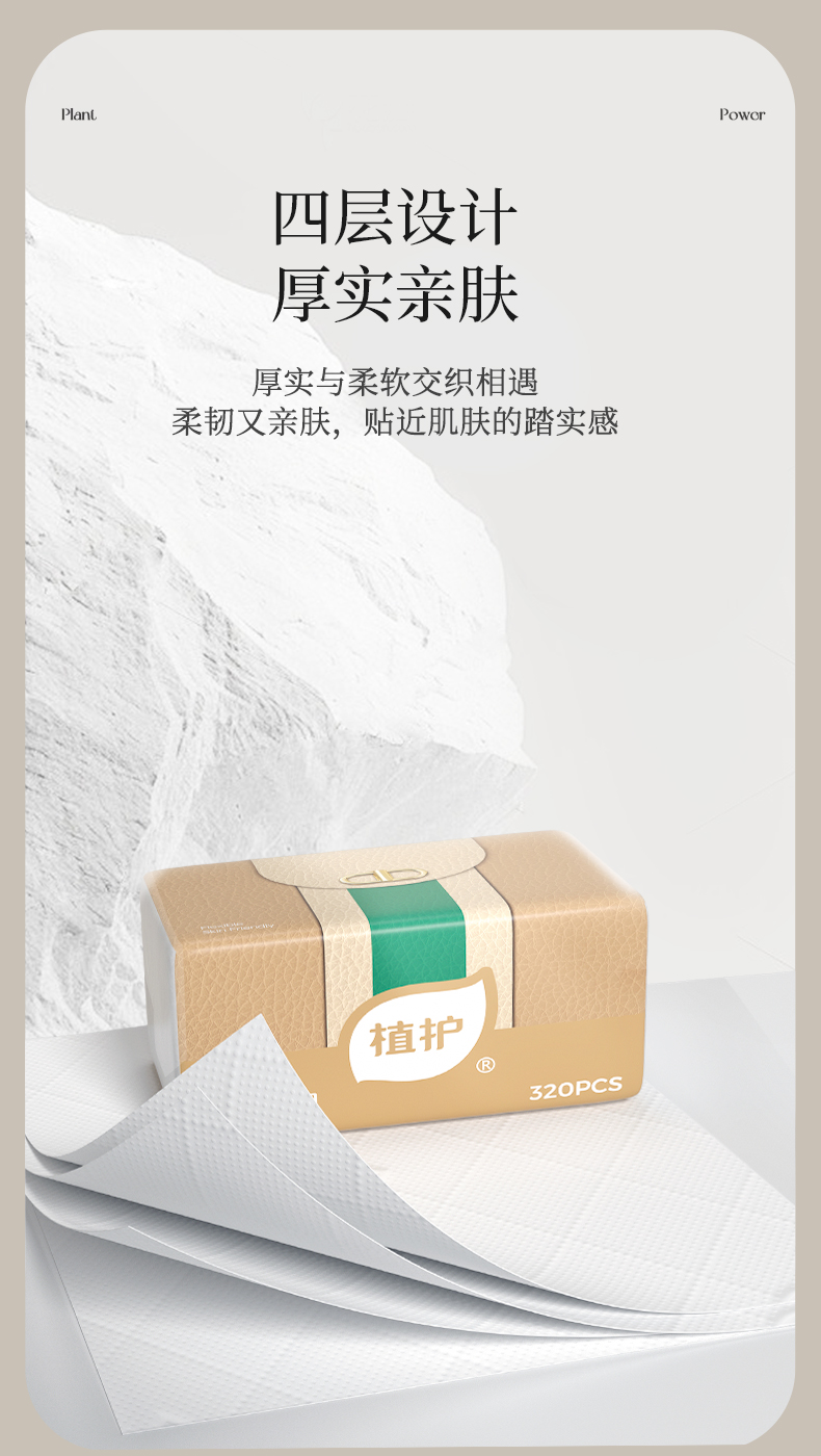 植护 极简主义 118*175/4层 80抽 3包/提 气垫纸面巾 象牙色(单位:提)