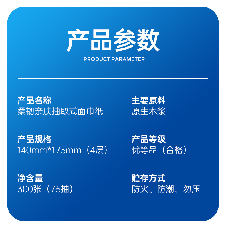 凝点(Cppc) 柔韧大包原木面巾纸 ND-0014-24 300张(四层75抽)抽纸24包 蓝色(单位:箱)