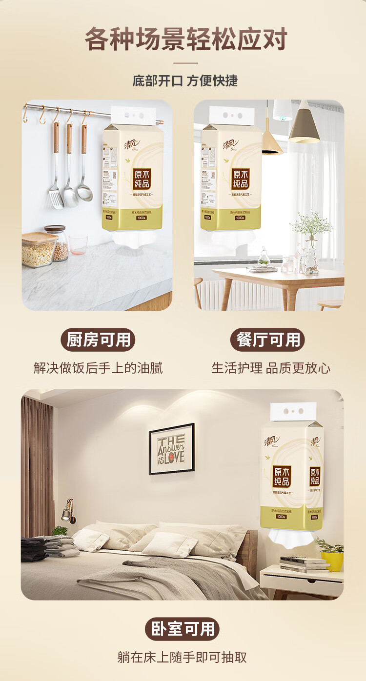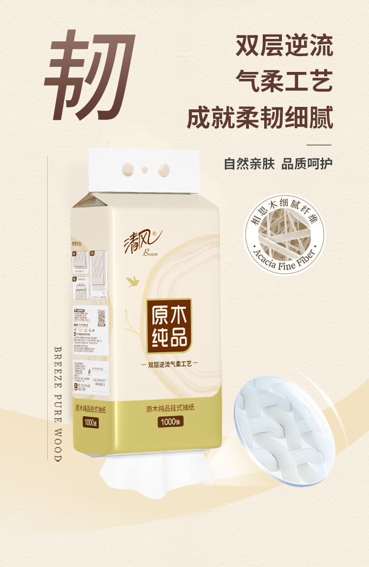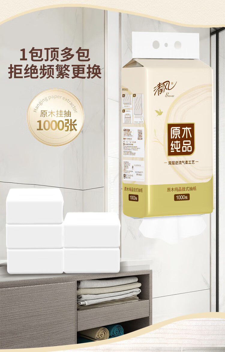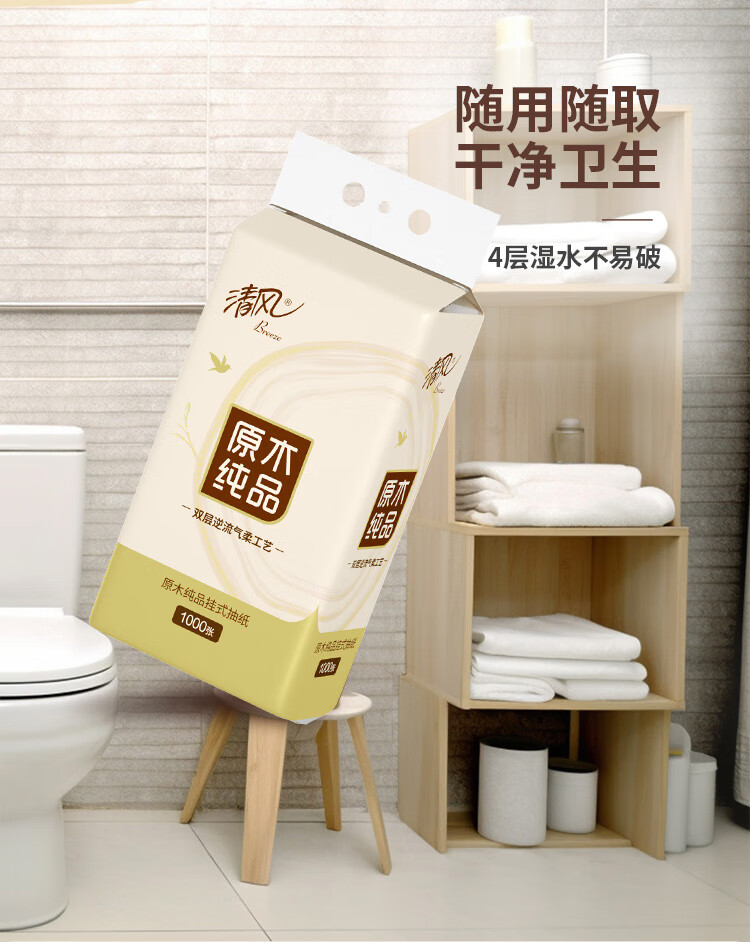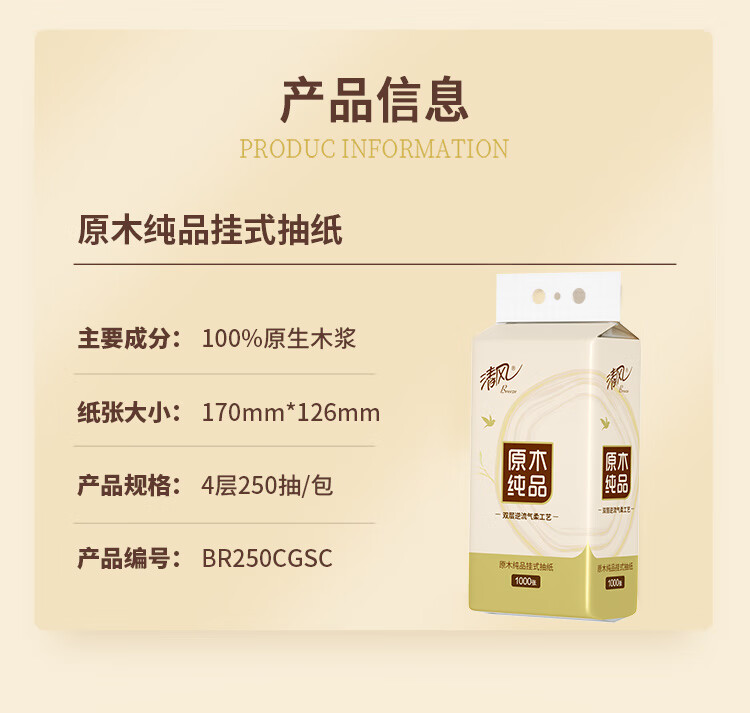 清风 原木悬挂式抽纸 BR250CGSC单提 4层250抽1提装 白色(单位:提)