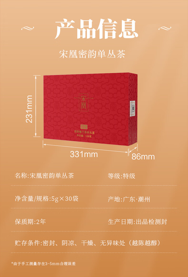 宋凰 凤凰单枞茶叶便捷袋泡 蜜兰香宫玺礼盒 150g(5g*30袋) 红色(单位:盒)