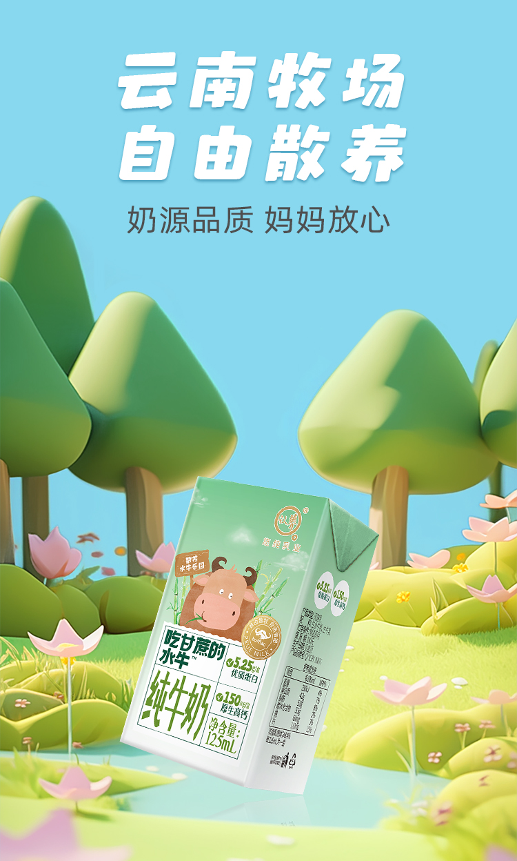认养 吃甘蔗的水牛奶 125ml*18盒*1箱 优质蛋白高钙早餐奶 混色(单位:箱)