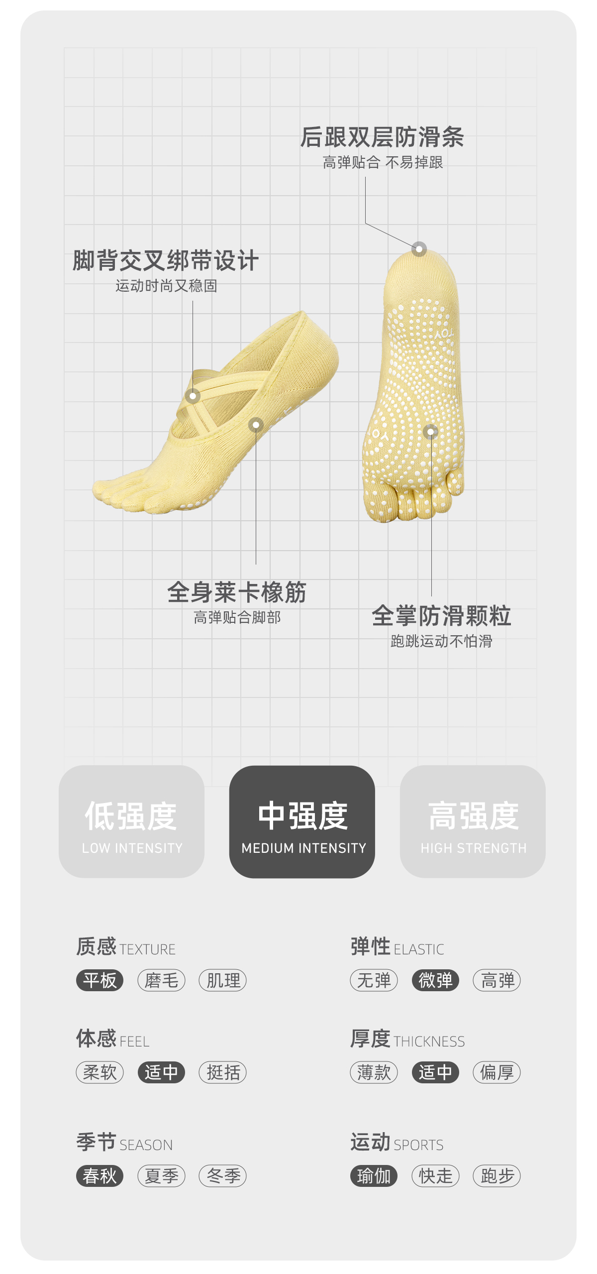 YOTTOY 五指防滑瑜伽袜 全掌防滑 模拟掌纹 wzyj2311x1B200M0000a010 M码 粉色(单位:双)
