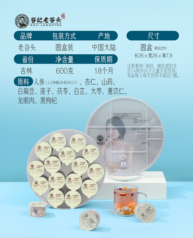 谷记老谷头 人参白芷七白茶 小罐养生 600g 白色(单位:盒)