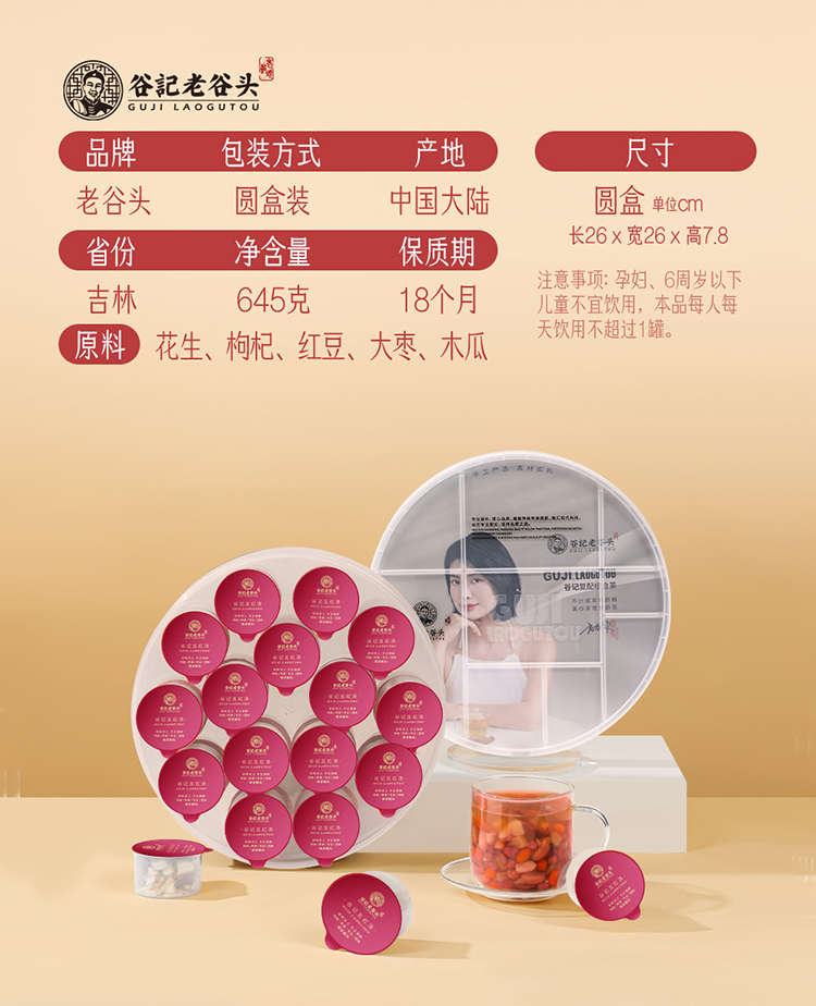 谷记老谷头 五红汤 红豆花生枸杞茶 645g 红色(单位:盒)
